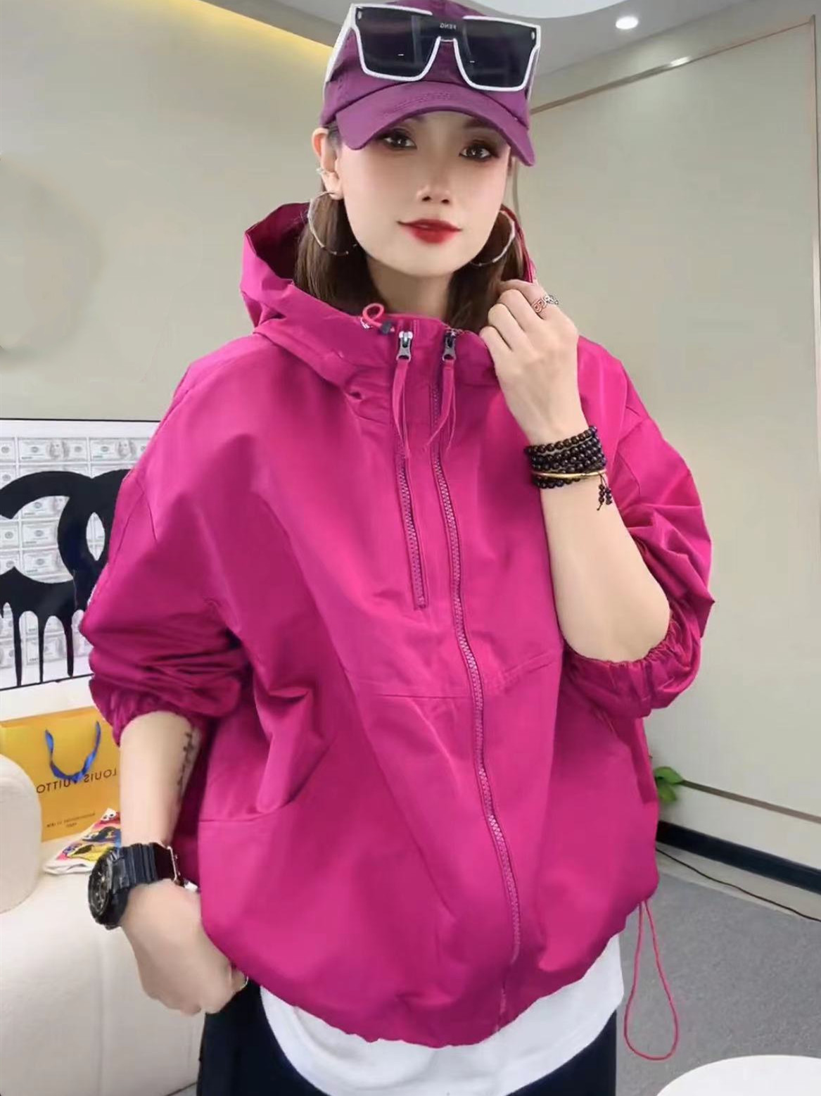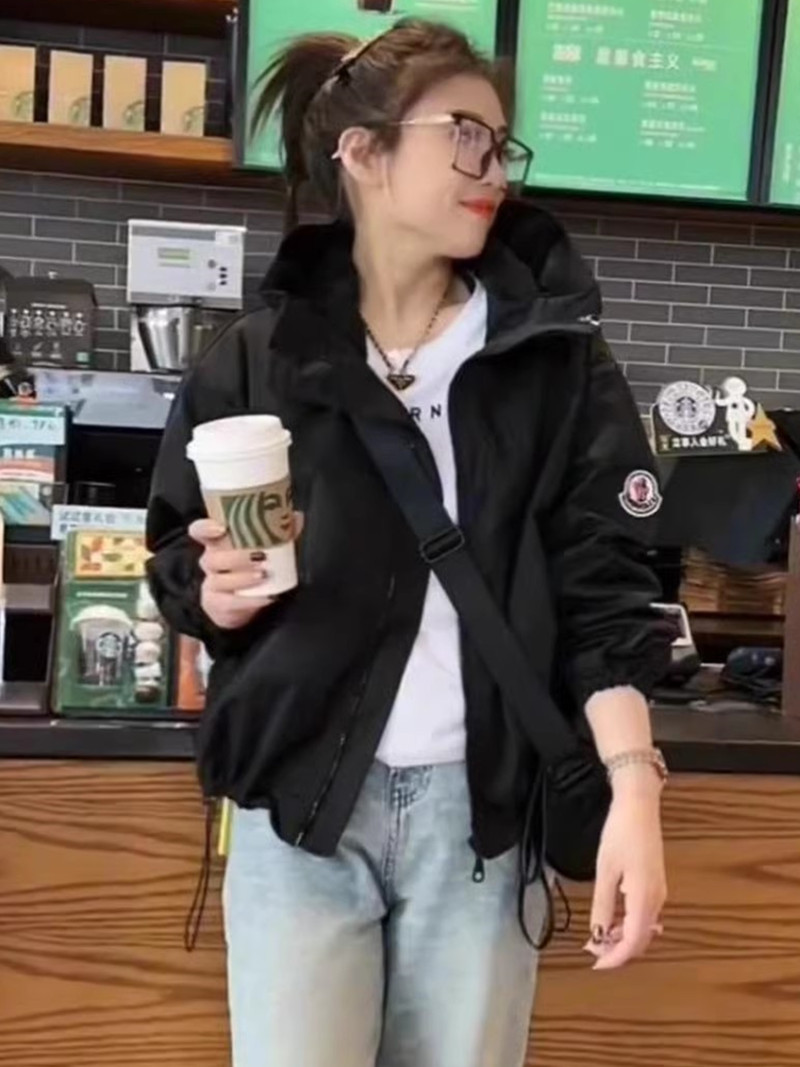 여성용 재킷 2024 봄 가을 후드 숏 스타일 루즈핏 야구 재킷 후드 재킷스토어 가기