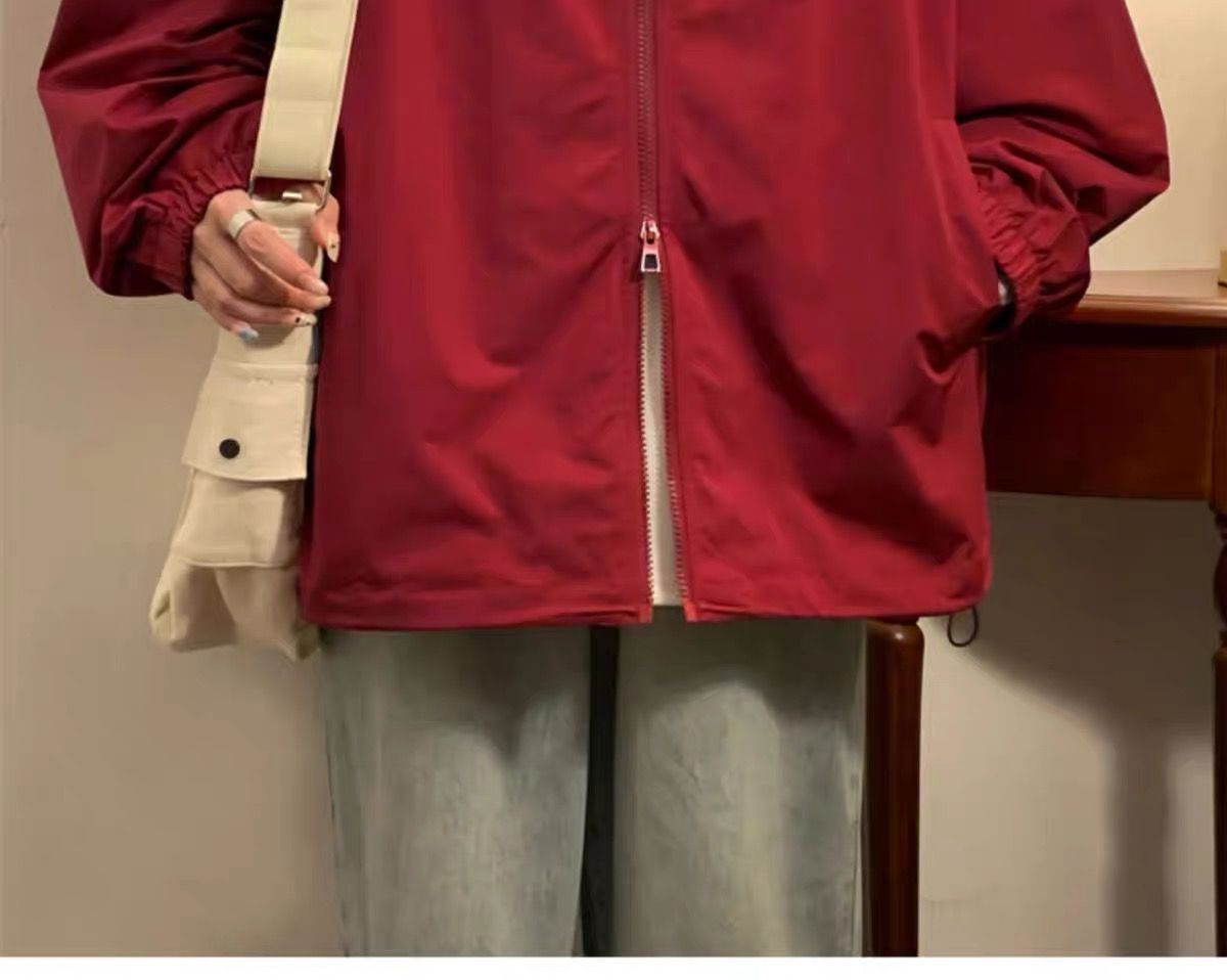 레드 충전 재킷 여성 2024 새로운 미국 스타일 복고풍 봄과 가을 느슨한 패션 작은 야구 세트 재킷스토어 가기