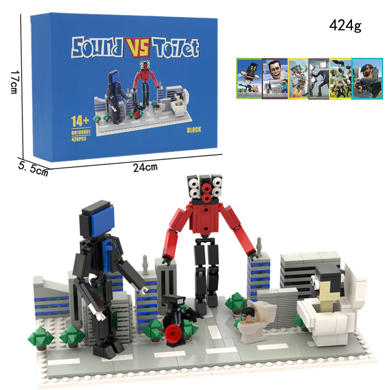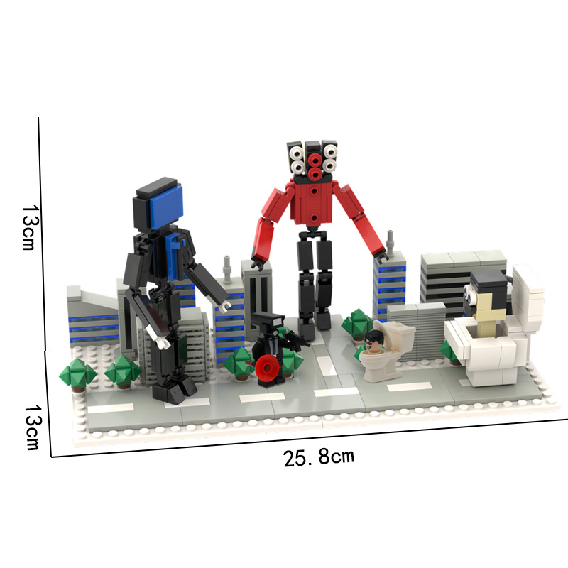 국경 간 화장실 남자와 TV 남자 마이크로 장면 조립 건물 블록 손으로 만든 모델 타이탄 맨 인형 데스크탑 장식품
