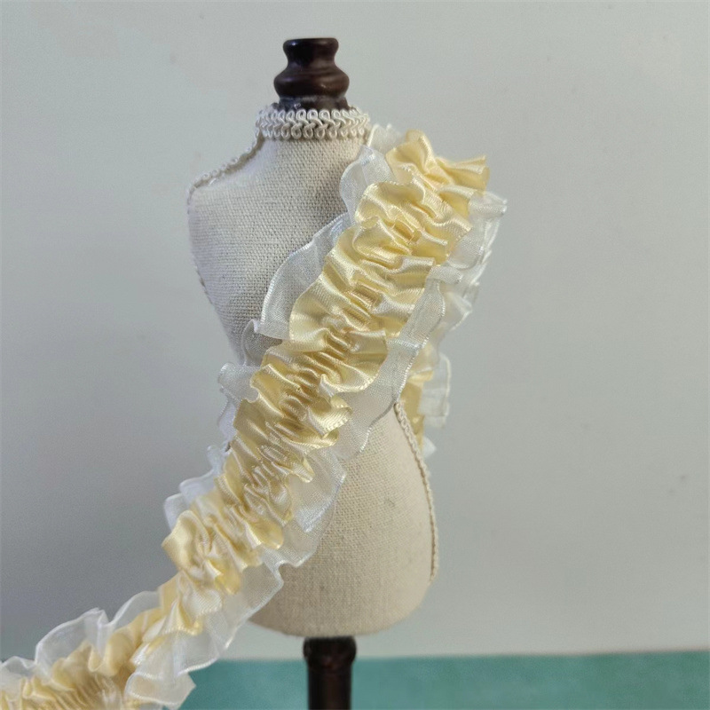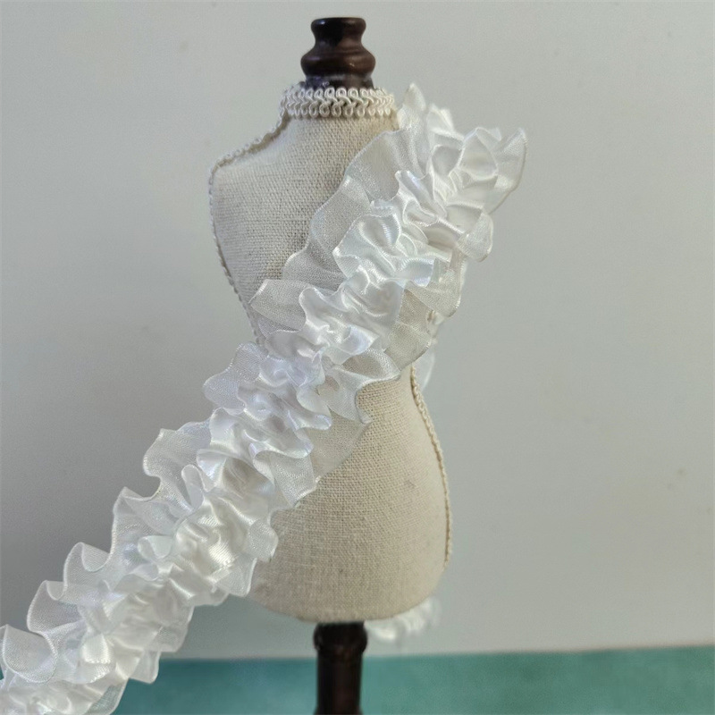 레이스 로리타 인형 칼라 커프스 DIY 장식으로 4cm 넓은 작은 향기로운 스타일 더블 레이어 탄성 스노우 거즈