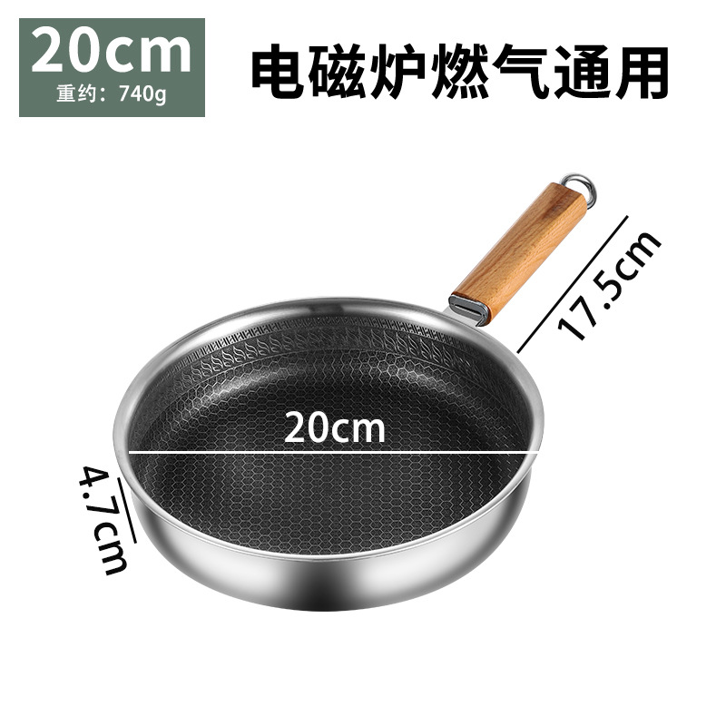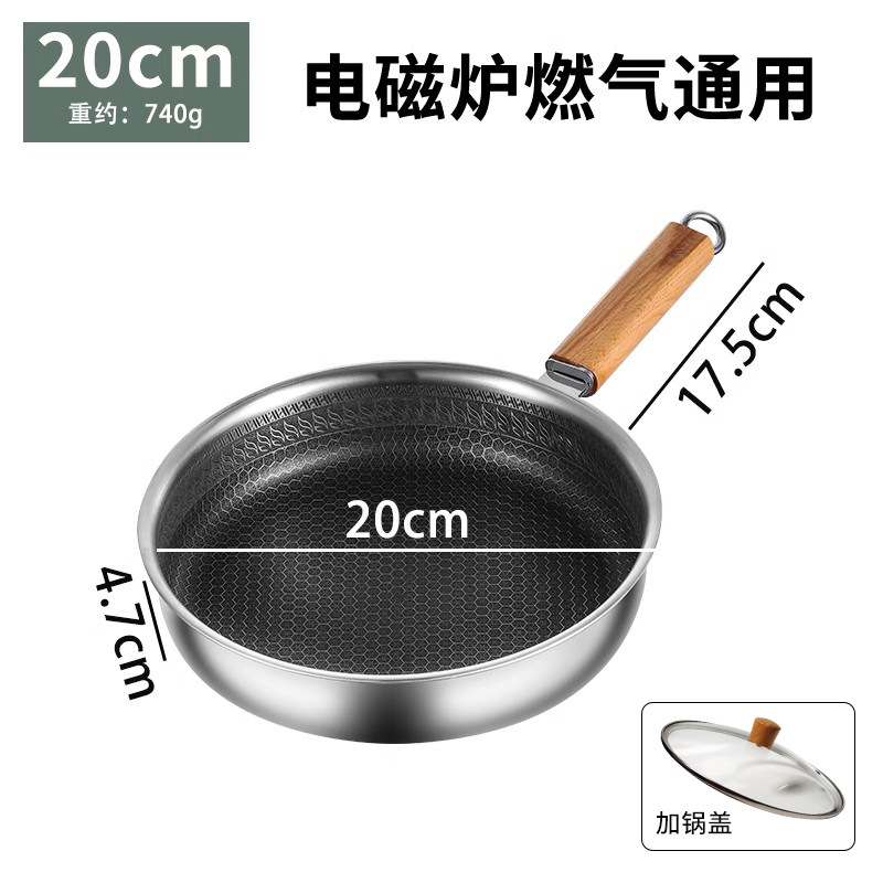• 316 3층 강철 붙지 않는 프라이팬 20CM + 유리 뚜껑