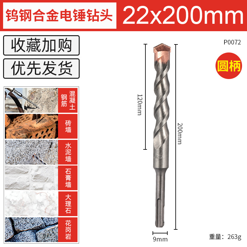 렌더 타악기 드릴 전기 해머 드릴 콘크리트 벽을 통한 사각형 핸들 원형 핸들 드릴링 합금 턴 헤드 라운드 헤드 헤드 스틸 바스토어 가기