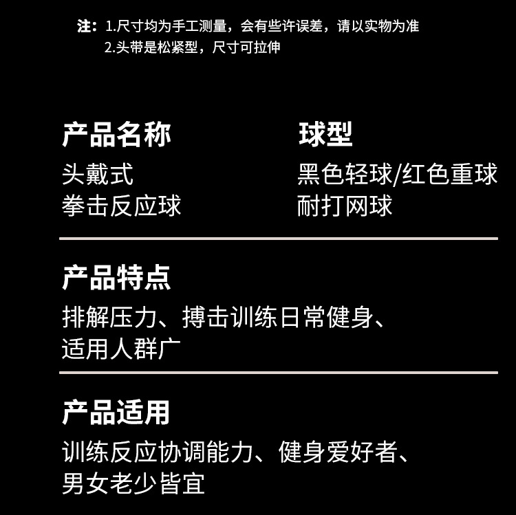 • 엘라스틱 헤드밴드 [업그레이드된 더블 볼] 블랙 라이트 볼 + 레드 헤비 볼