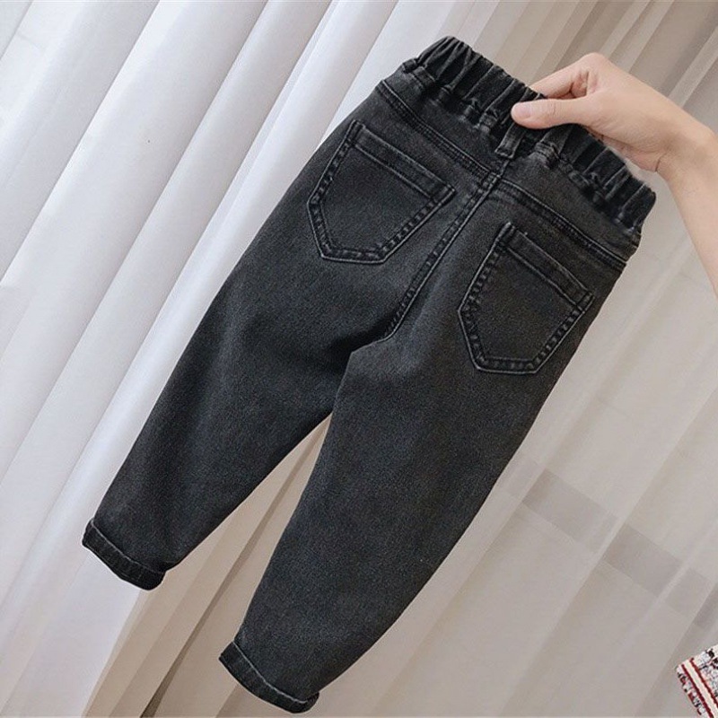 소녀 바지 탄성 청바지 봄과 가을 2024 중소형 어린이를위한 새로운 높은 허리 연필 스트레이트 다리 바지
