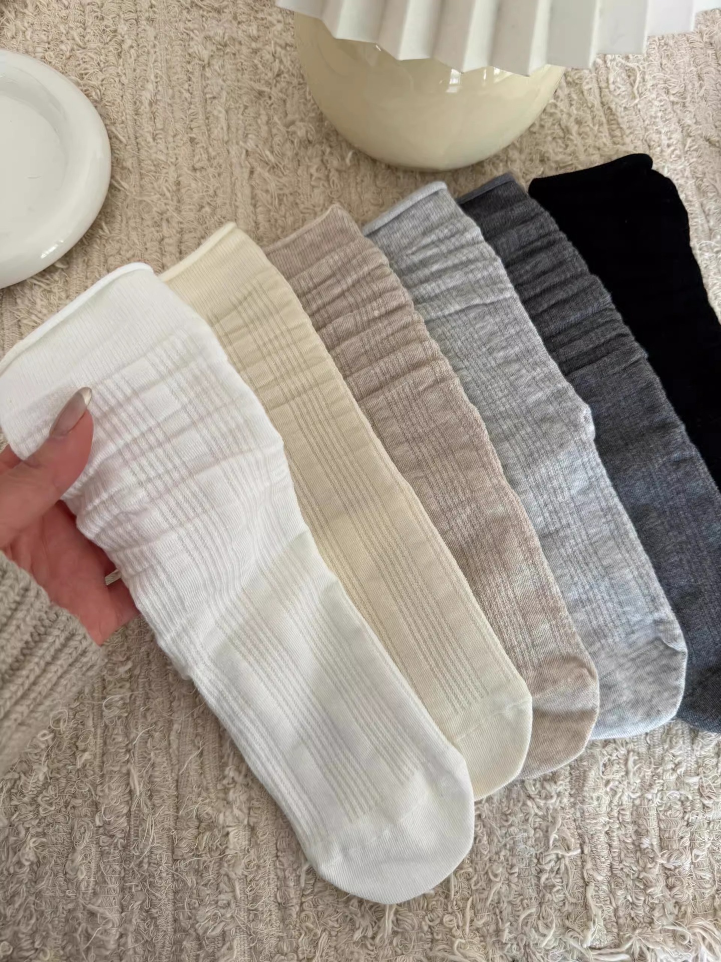 여름 메쉬 통기성 양말 어린이 배럴 발레 스타일 솔리드 컬러 코튼 뼈없는 중공 나무 얇은 단순 스택 양말