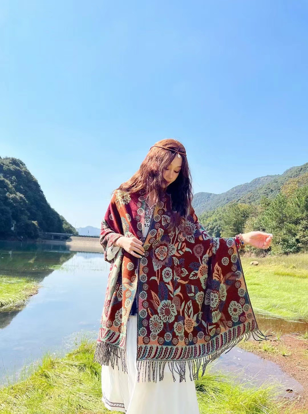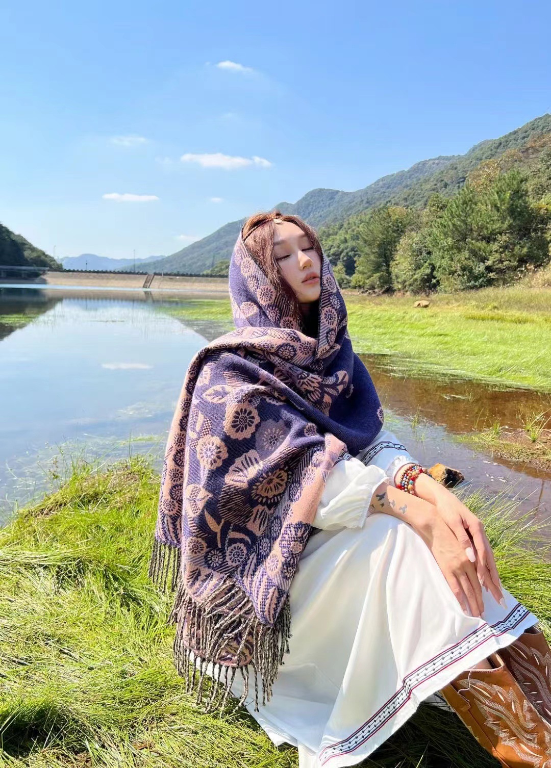 모조 캐시미어 양면 민족 스타일 목도리 여성용 롱 스카프 케이프 칭하이 티베트 윈난 여행 사진 케이프스토어 가기