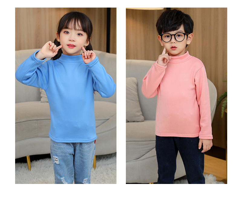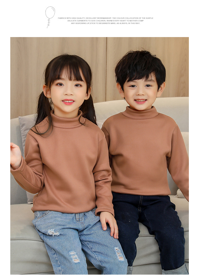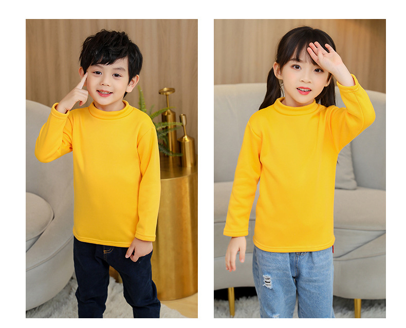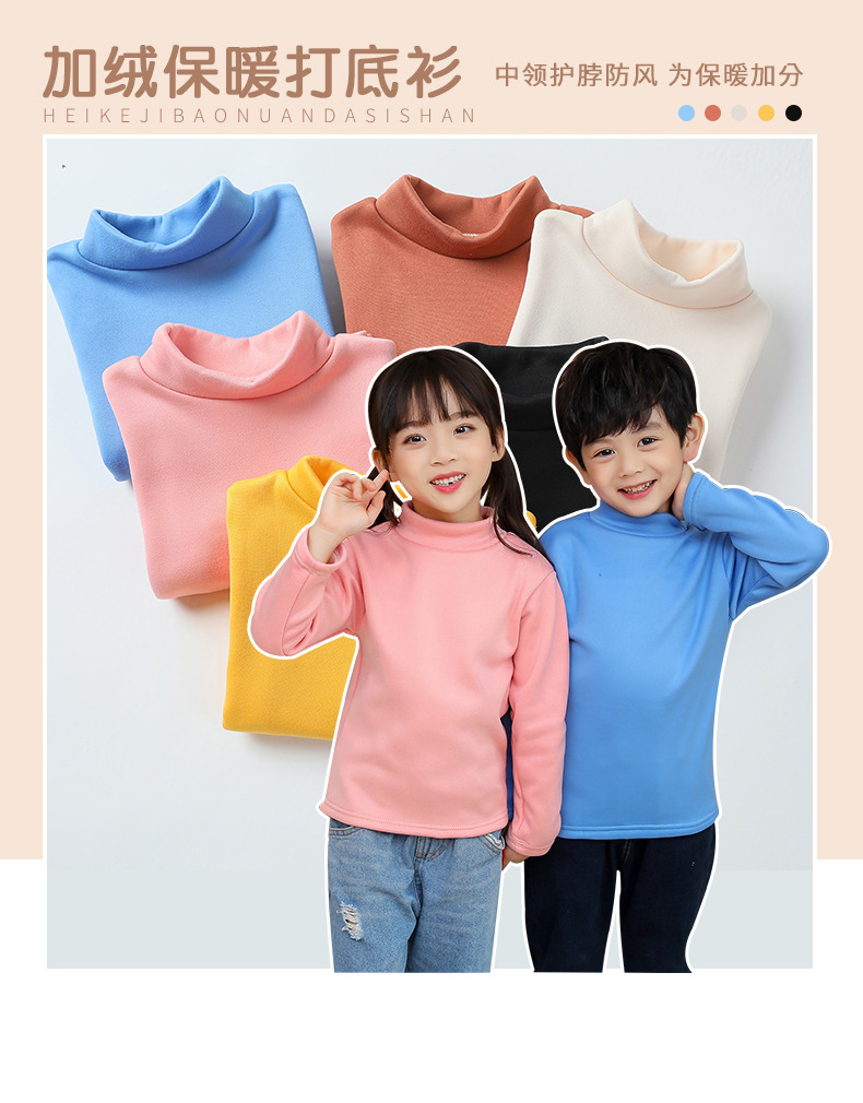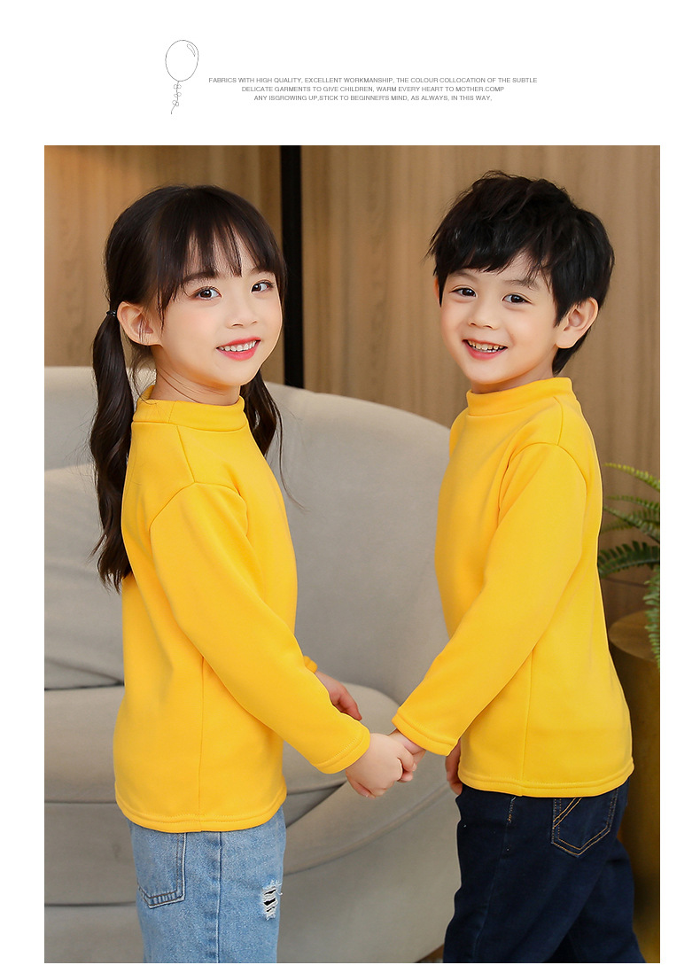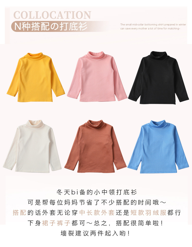 깊은 가을과 겨울 어린이 기지 셔츠 중간 칼라 소년과 소녀 기모 최고 어린이 단색 따뜻한 긴 소매 티셔츠