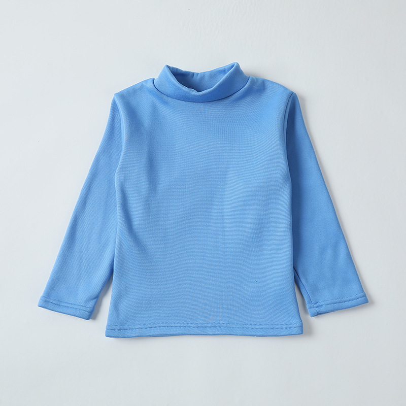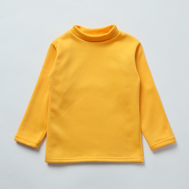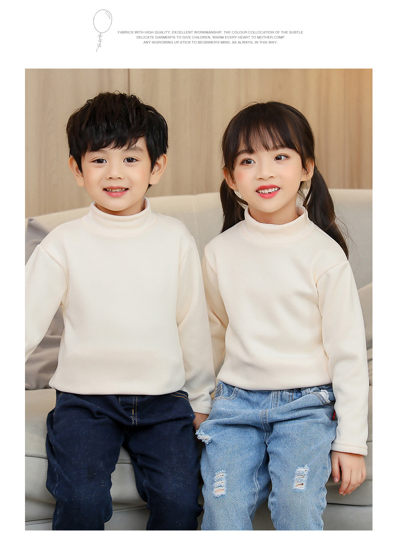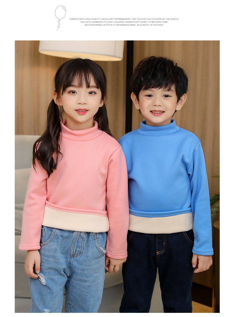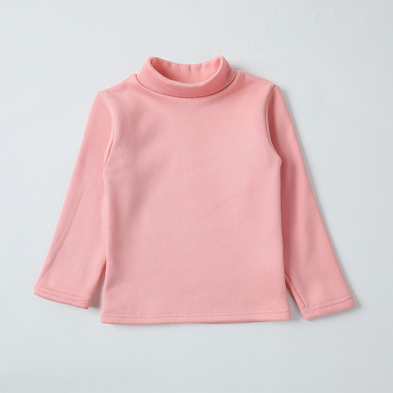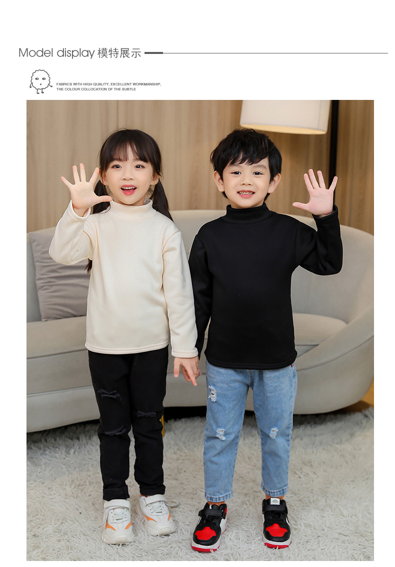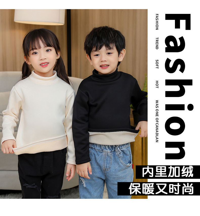 깊은 가을과 겨울 어린이 기지 셔츠 중간 칼라 소년과 소녀 기모 최고 어린이 단색 따뜻한 긴 소매 티셔츠
