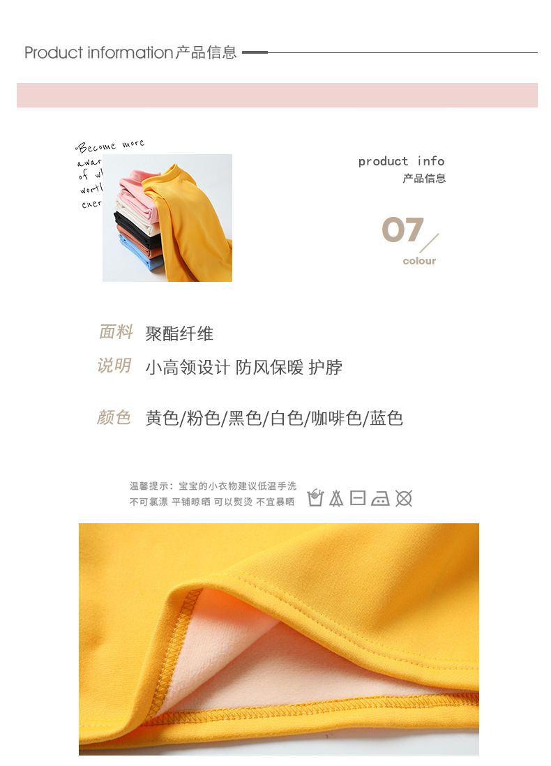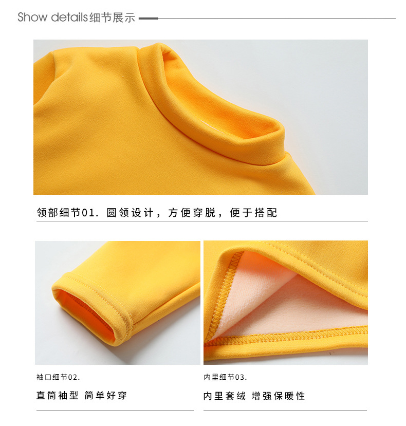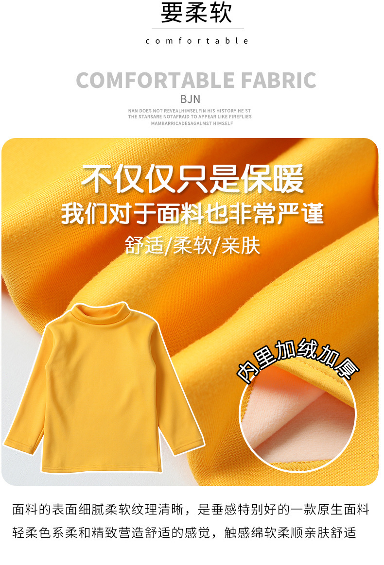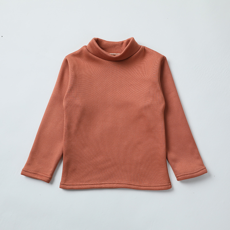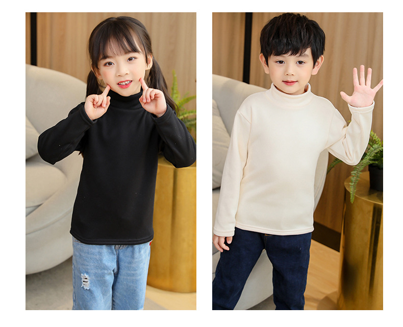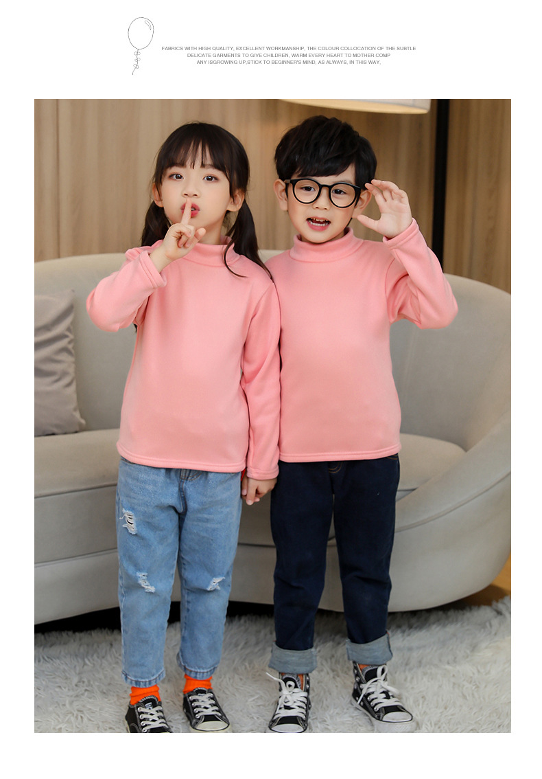 깊은 가을과 겨울 어린이 기지 셔츠 중간 칼라 소년과 소녀 기모 최고 어린이 단색 따뜻한 긴 소매 티셔츠