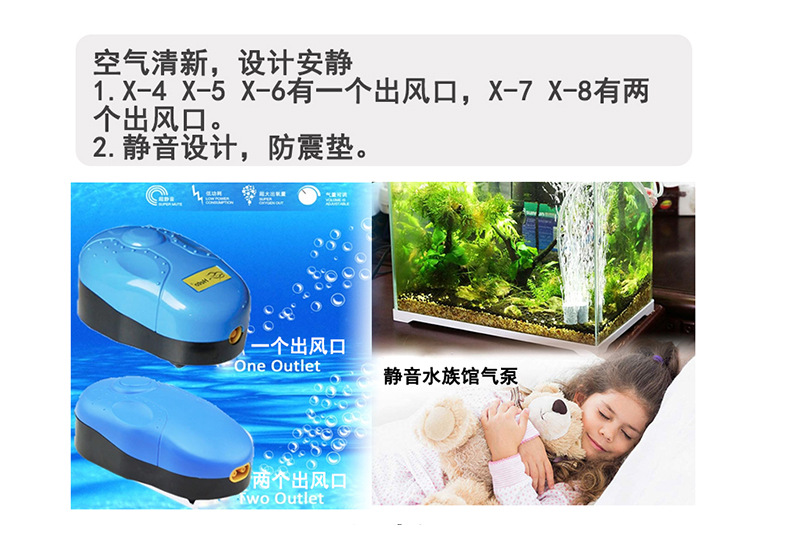 • 2.3W-2.5L/min 수족관 공기 펌프