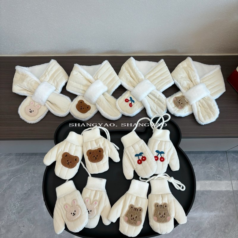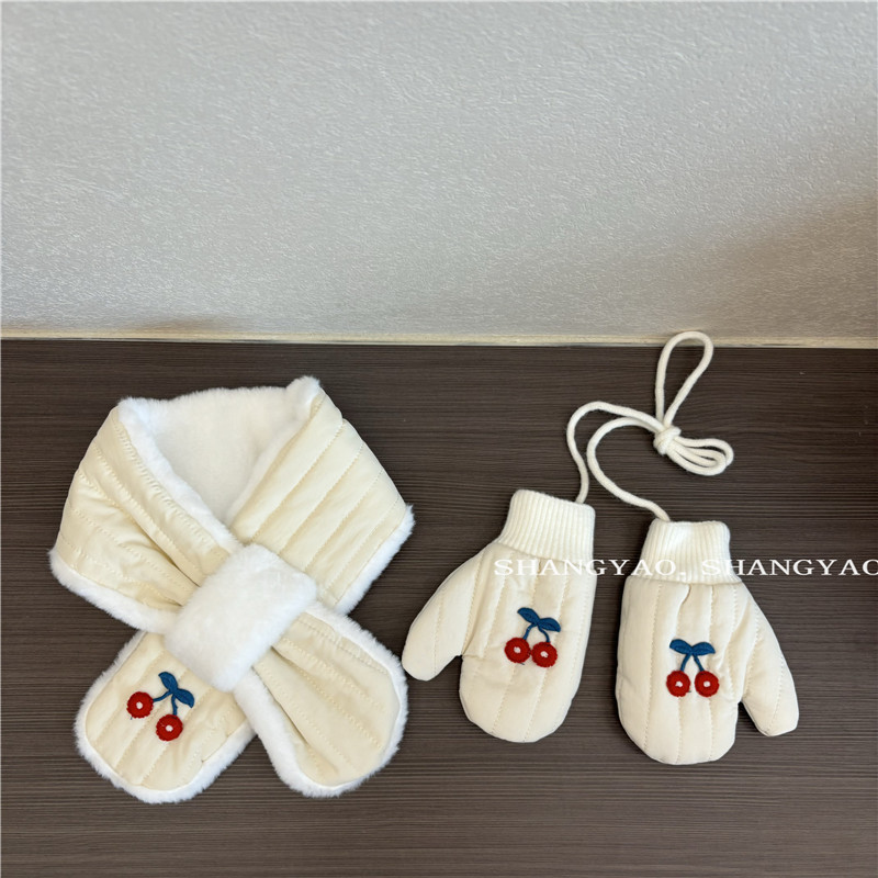 어린이 기모 목 장갑 겨울 슈퍼 귀여운 만화 체리 귀여운 기모 따뜻한 크로스 스카프 소년 소녀스토어 가기