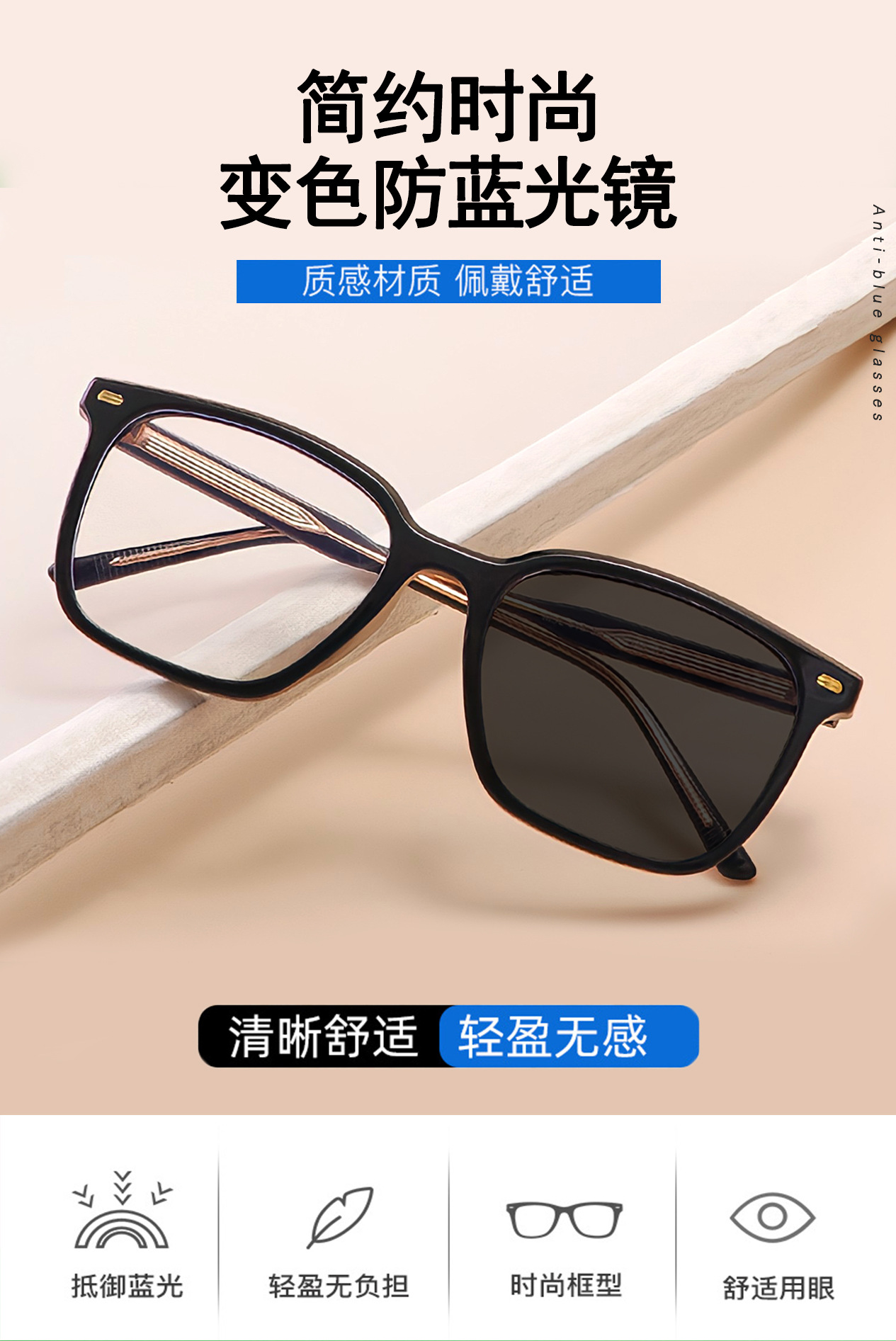 남성과 여성을위한 최신 유행 상자 색상 변경 평면 안경 고급 안티 블루 라이트 고글 컴퓨터 휴대 전화 피로 방지 안경