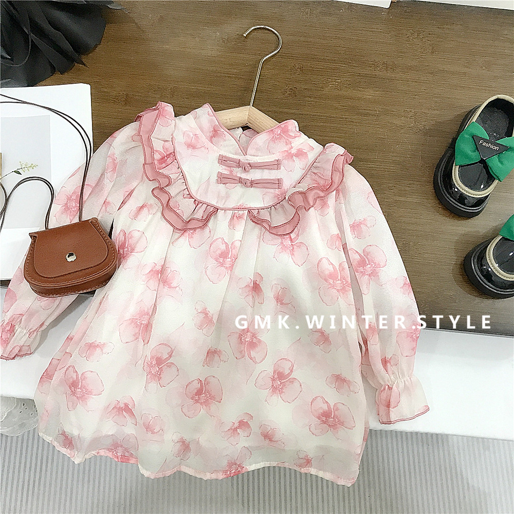소녀 봄과 가을 빈티지 쉬폰 원피스 어린이 새로운 중국 청삼 새로운 패션 소녀 가을 대외 무역스토어 가기