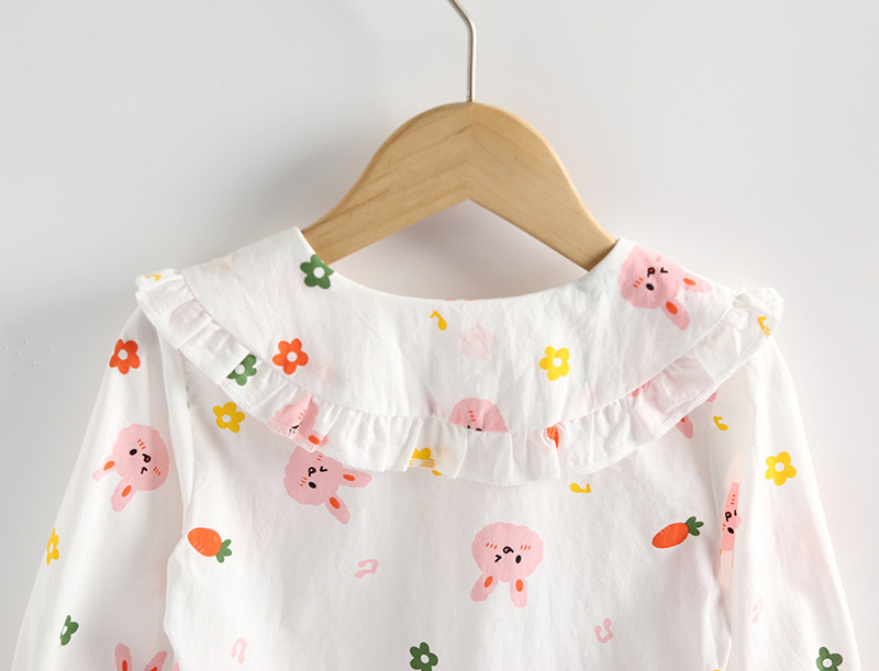2024 새로운 여자 셔츠 가을 세련된 작은 소녀 흰색 셔츠 긴 소매 아기 체리 셔츠 어린이 인형 셔츠스토어 가기