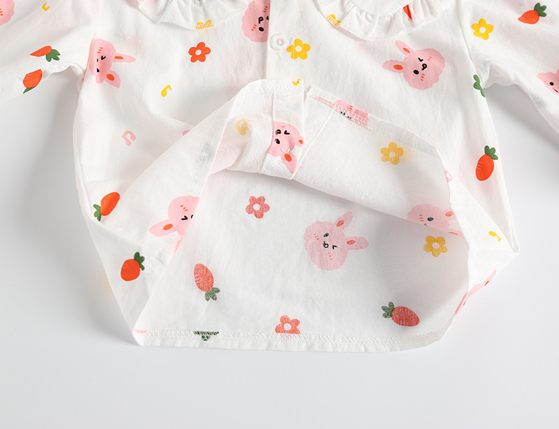 2024 새로운 여자 셔츠 가을 세련된 작은 소녀 흰색 셔츠 긴 소매 아기 체리 셔츠 어린이 인형 셔츠