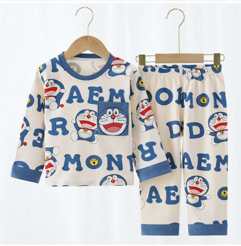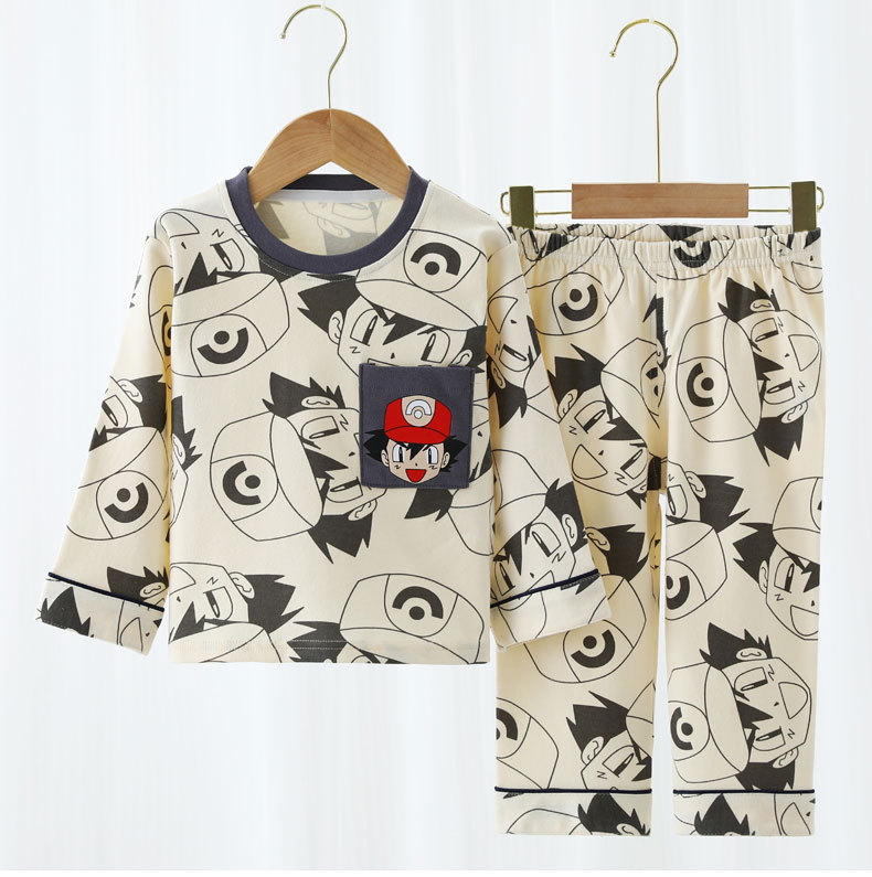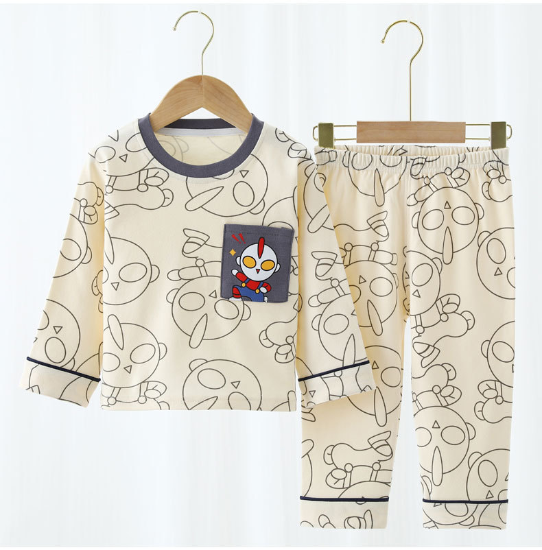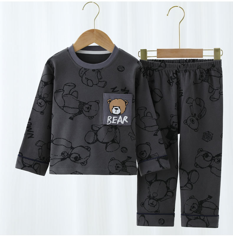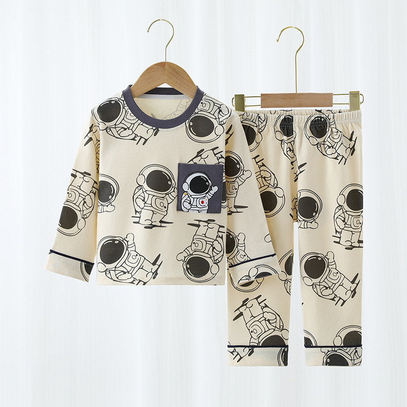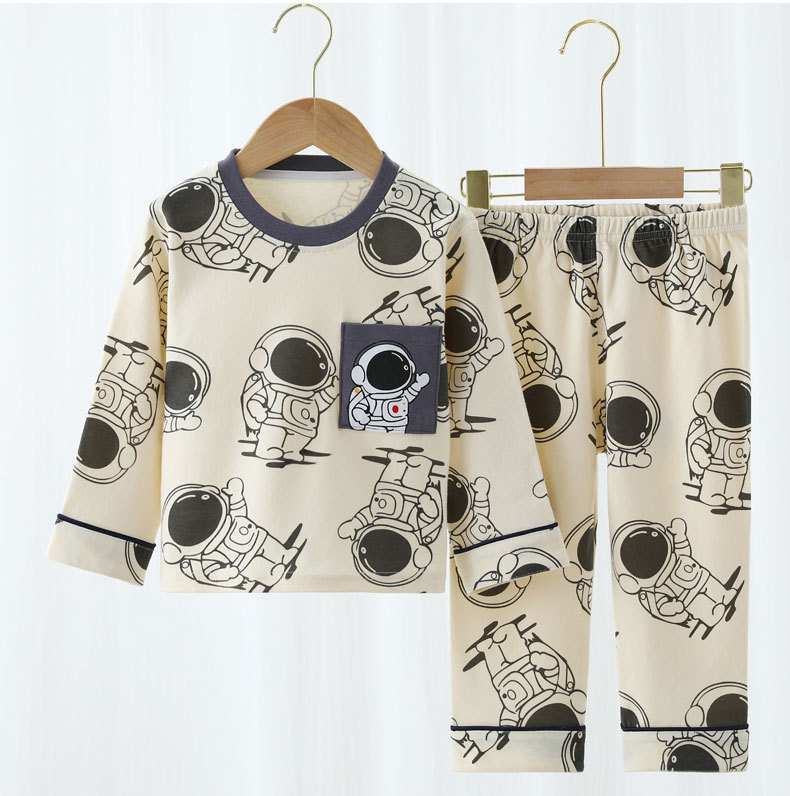 어린이 잠옷 남아용 순면 긴팔 중대형 어린이 남아용 라운드넥 프린트 홈웨어 순면 세트 중소형 어린이용스토어 가기