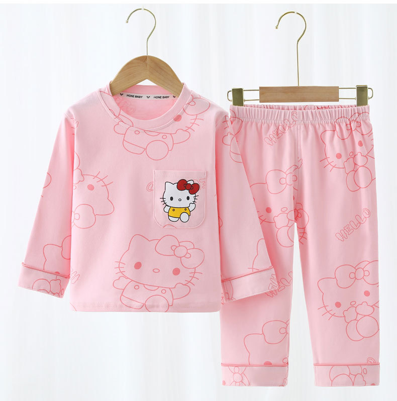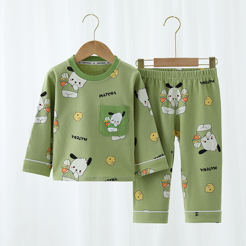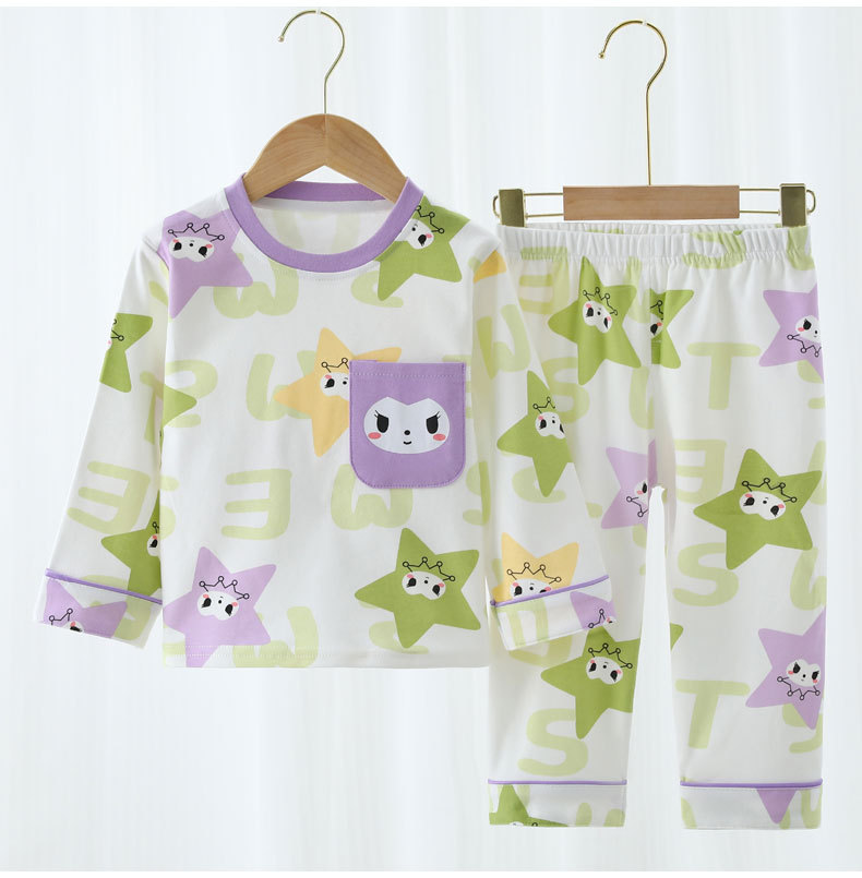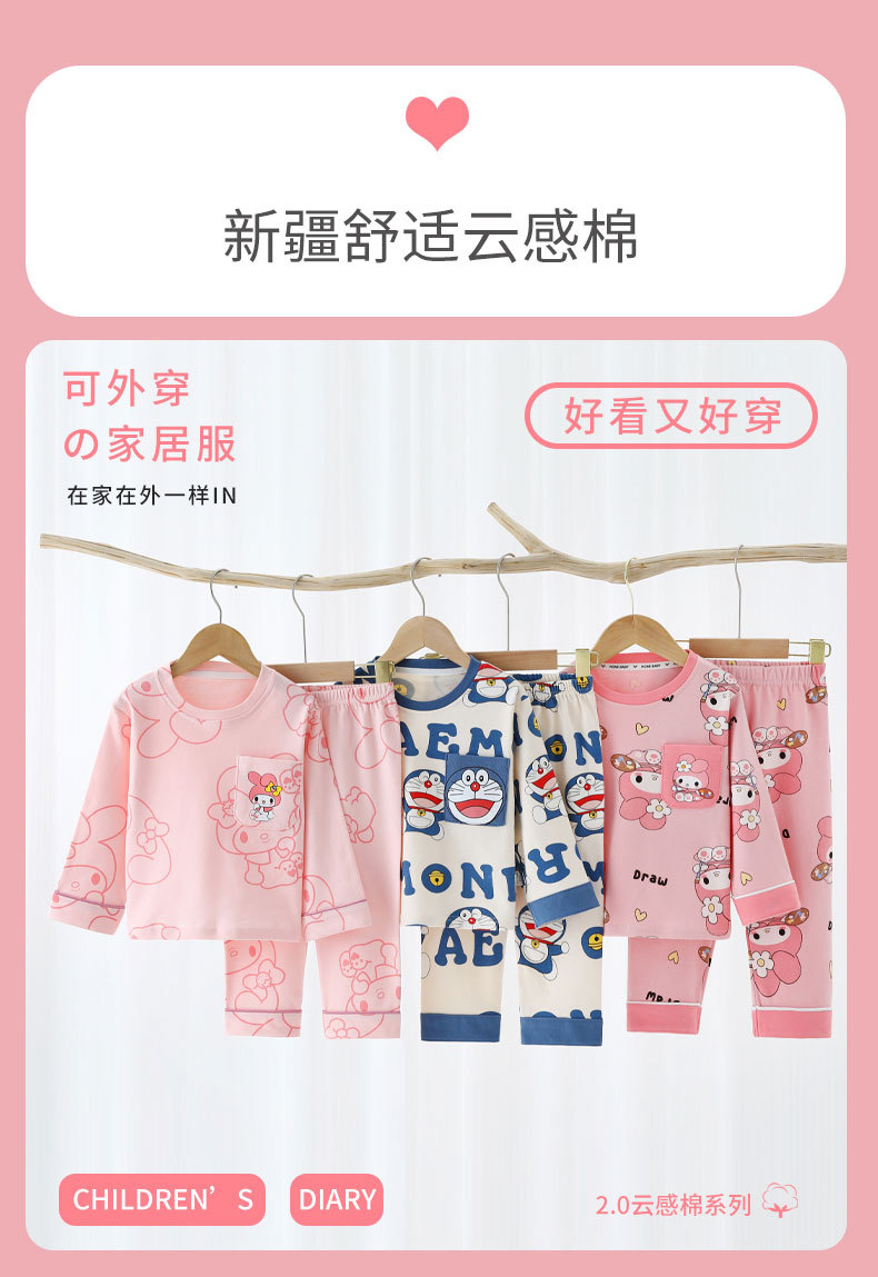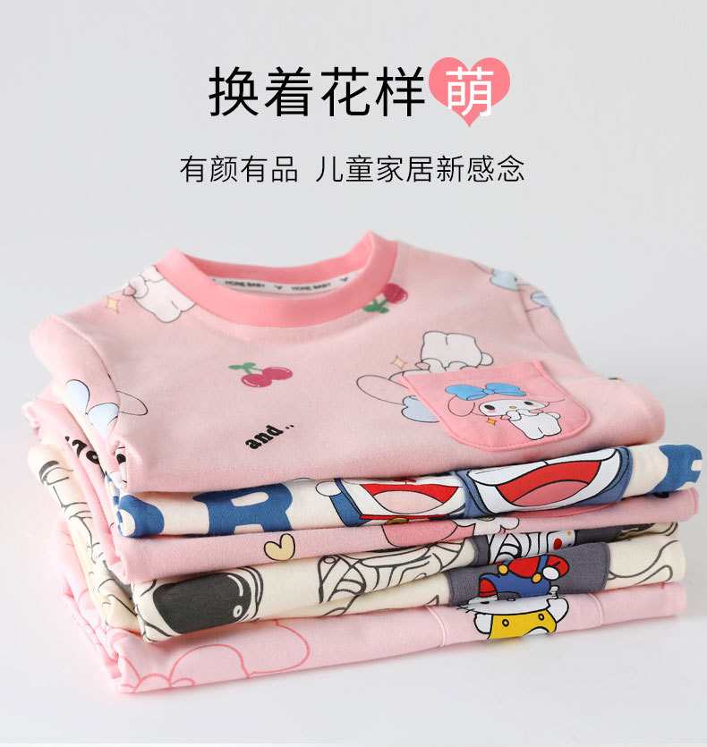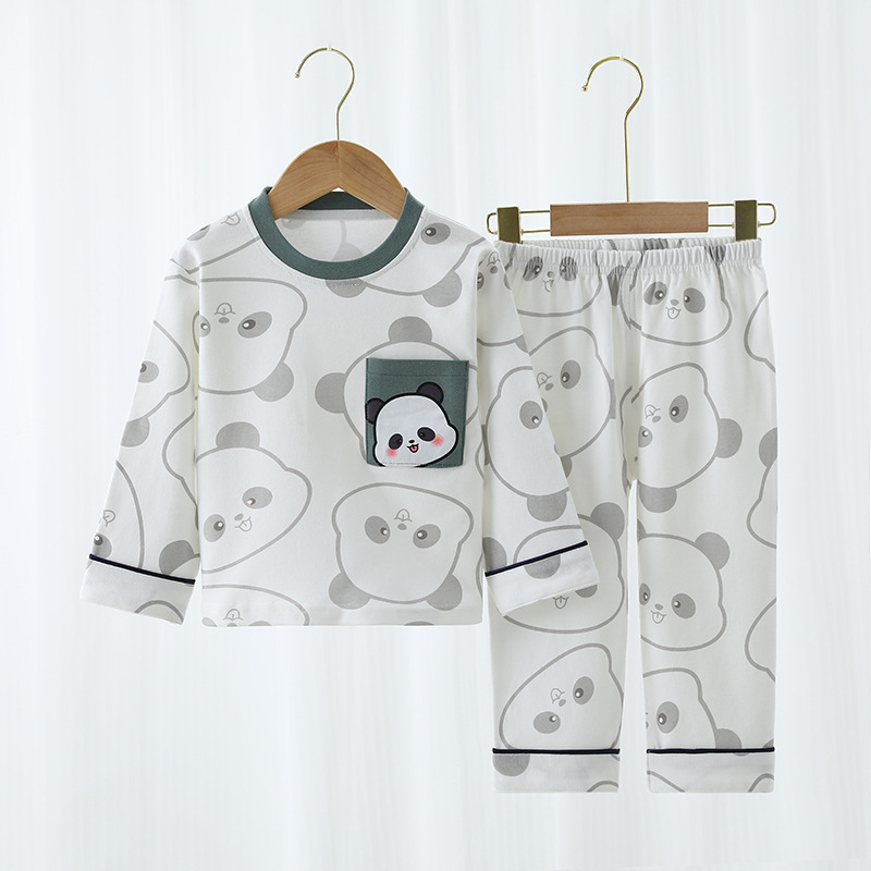 어린이 잠옷 남아용 순면 긴팔 중대형 어린이 남아용 라운드넥 프린트 홈웨어 순면 세트 중소형 어린이용스토어 가기