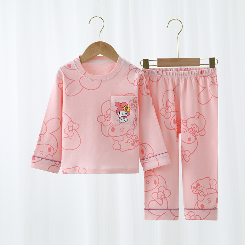 어린이 잠옷 남아용 순면 긴팔 중대형 어린이 남아용 라운드넥 프린트 홈웨어 순면 세트 중소형 어린이용