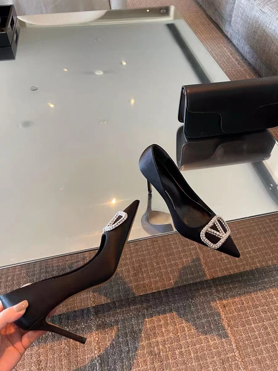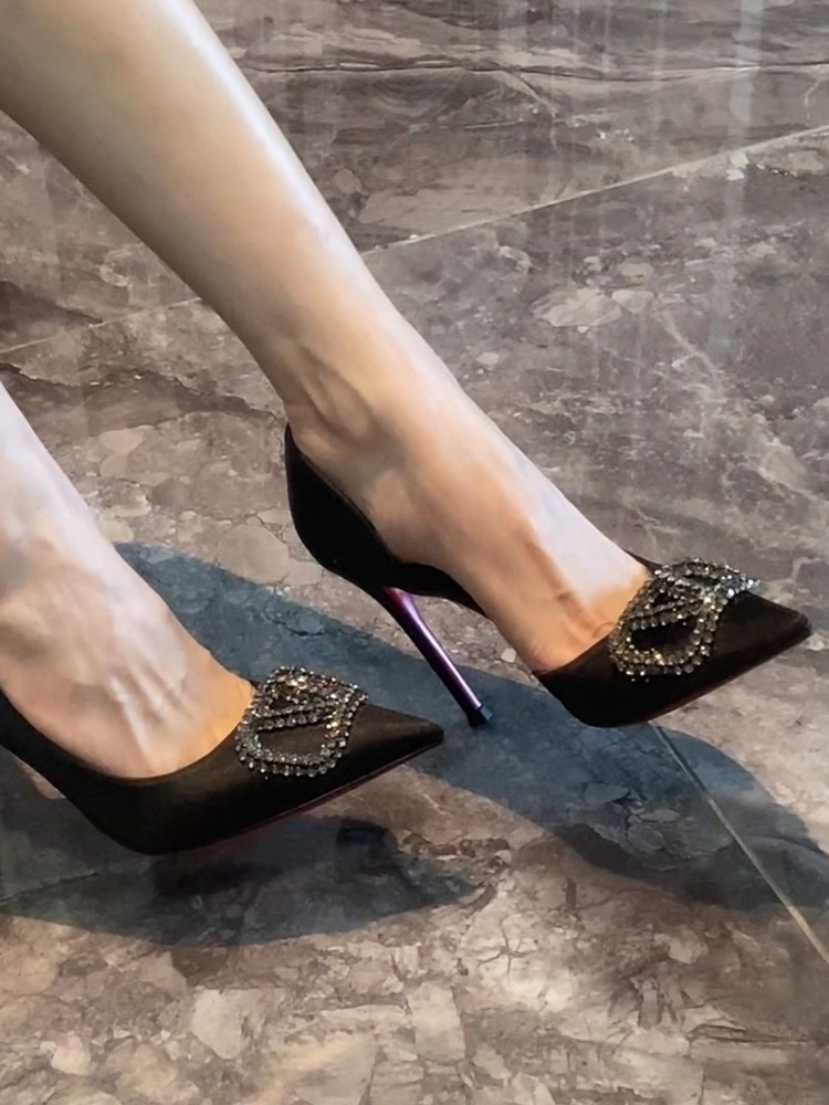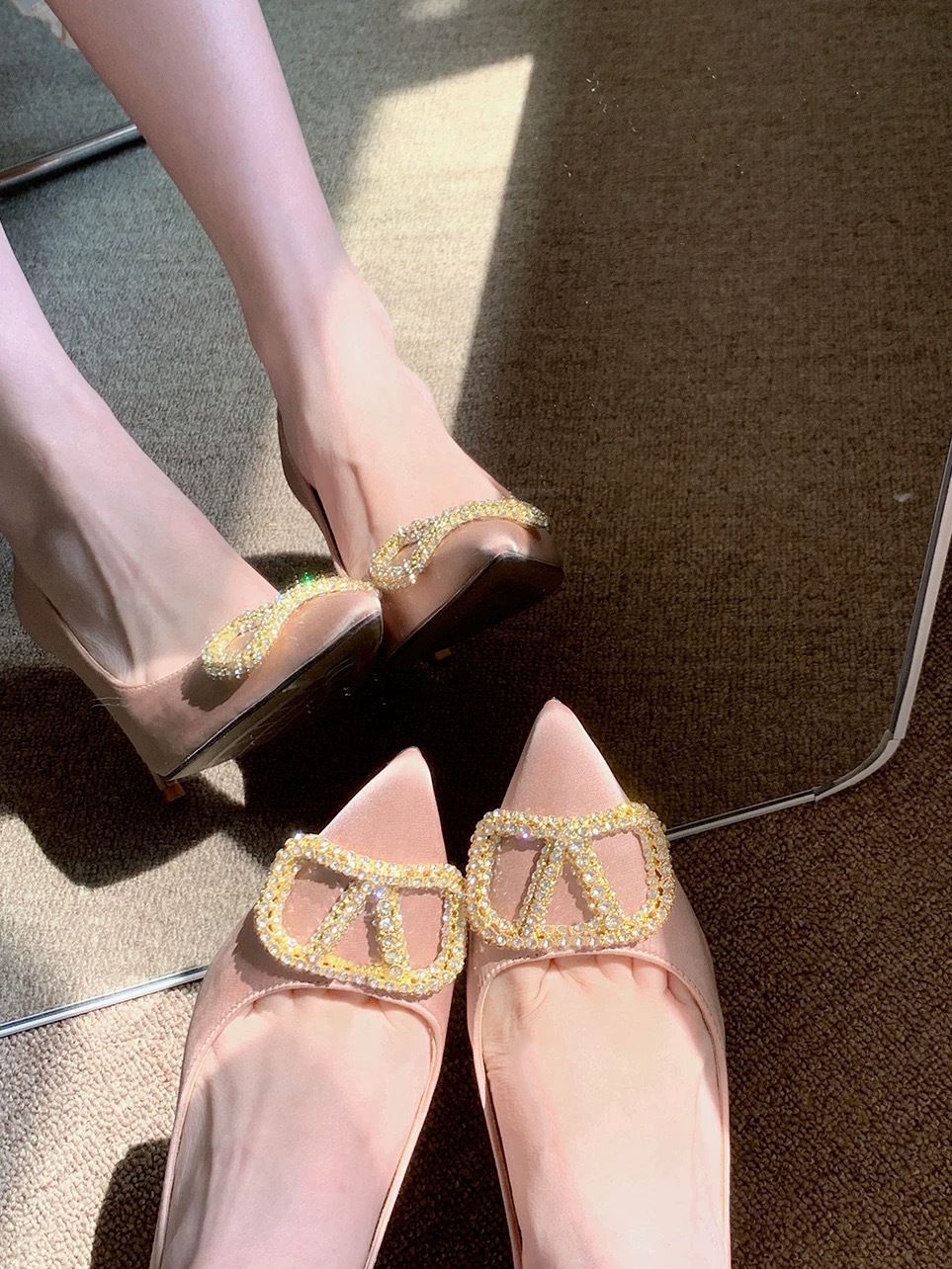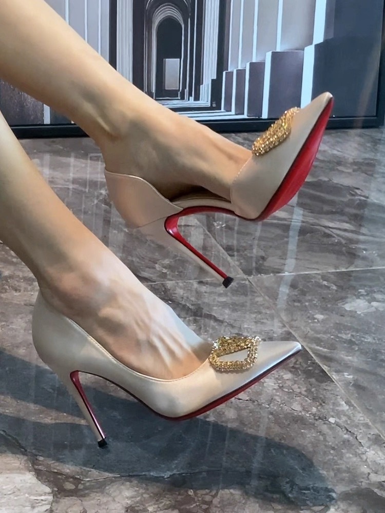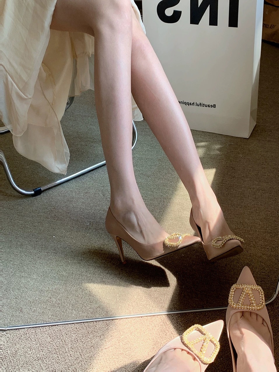 2025년 신상 프렌치 샴페인 컬러 하이힐, 뾰족한 발가락, 얇은 굽, 아름답고 피곤하지 않은, 라인스톤 싱글 슈즈, 웨딩 슈즈스토어 가기