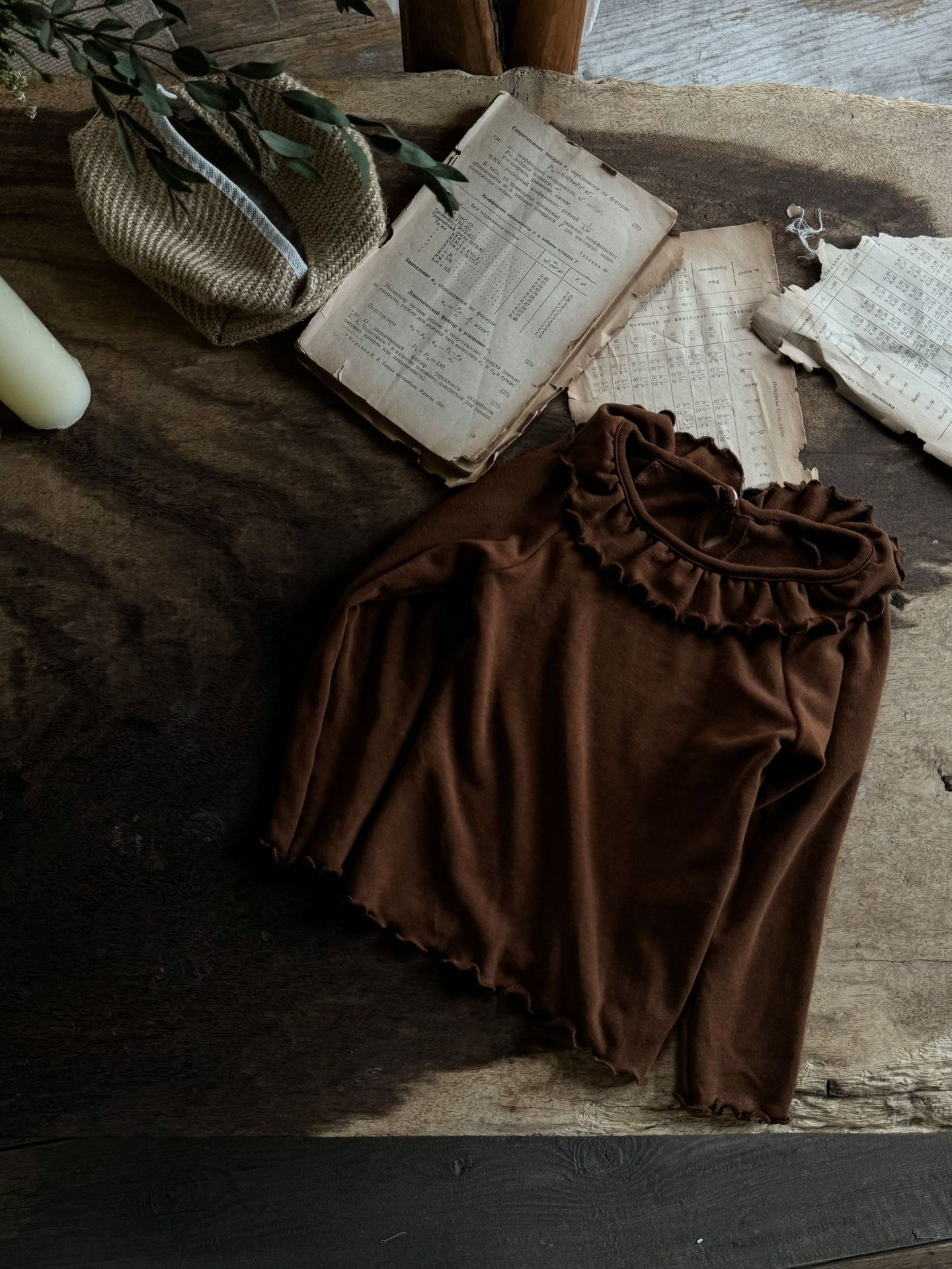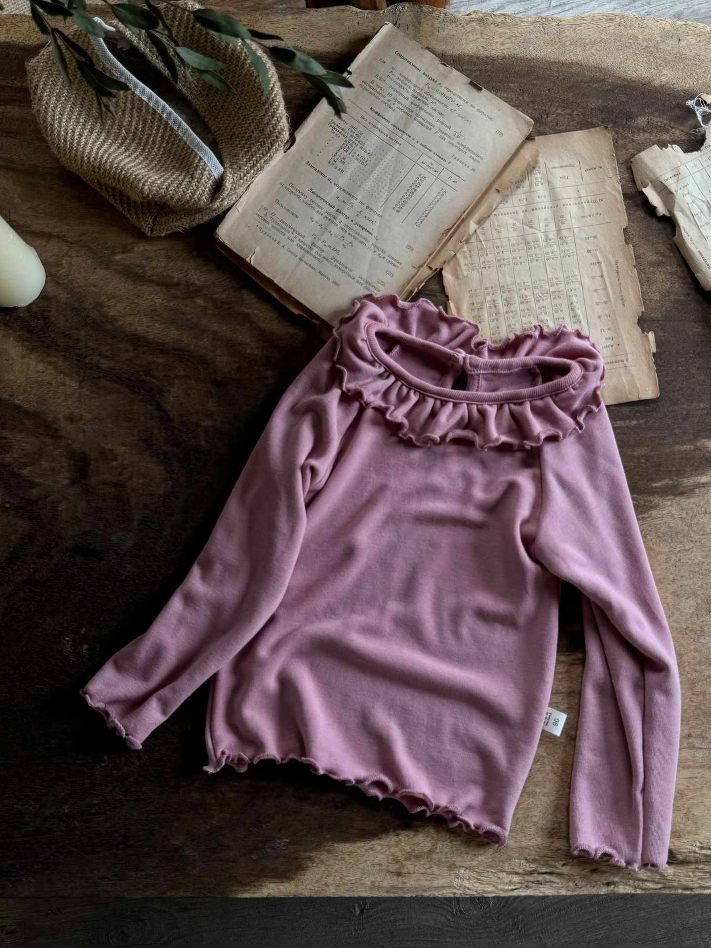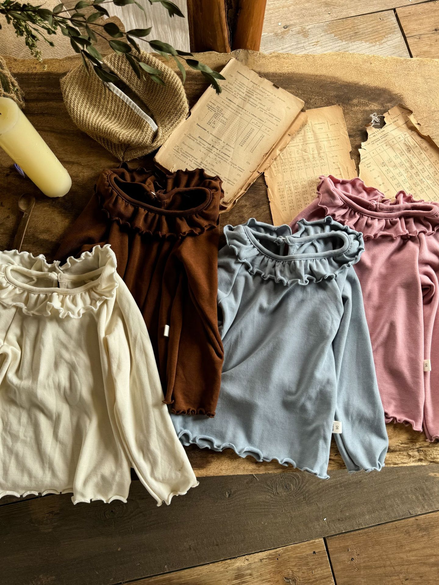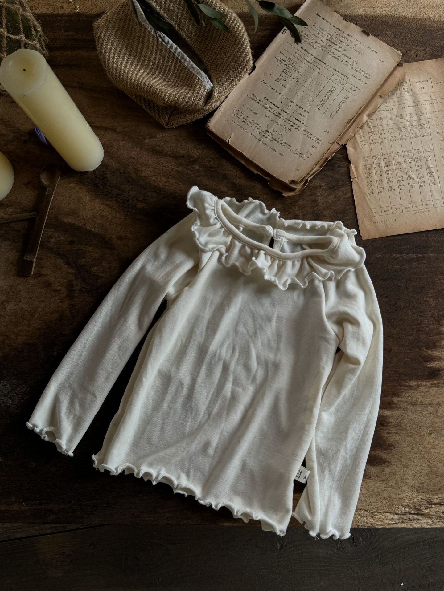 2024 새로운 가을, 겨울 아동 의류 한국 스타일 아동 의류 소녀의 프릴 바닥 셔츠 아동용 탄성 귀 티셔츠