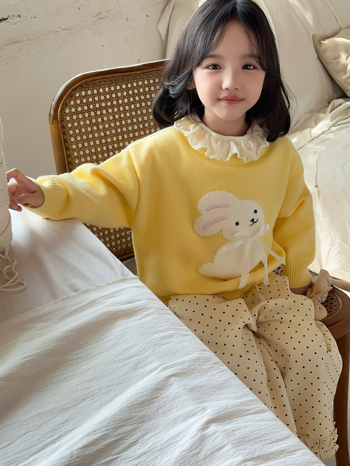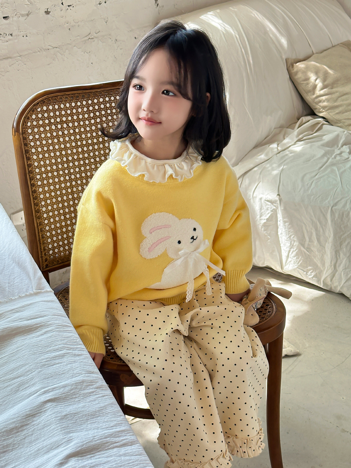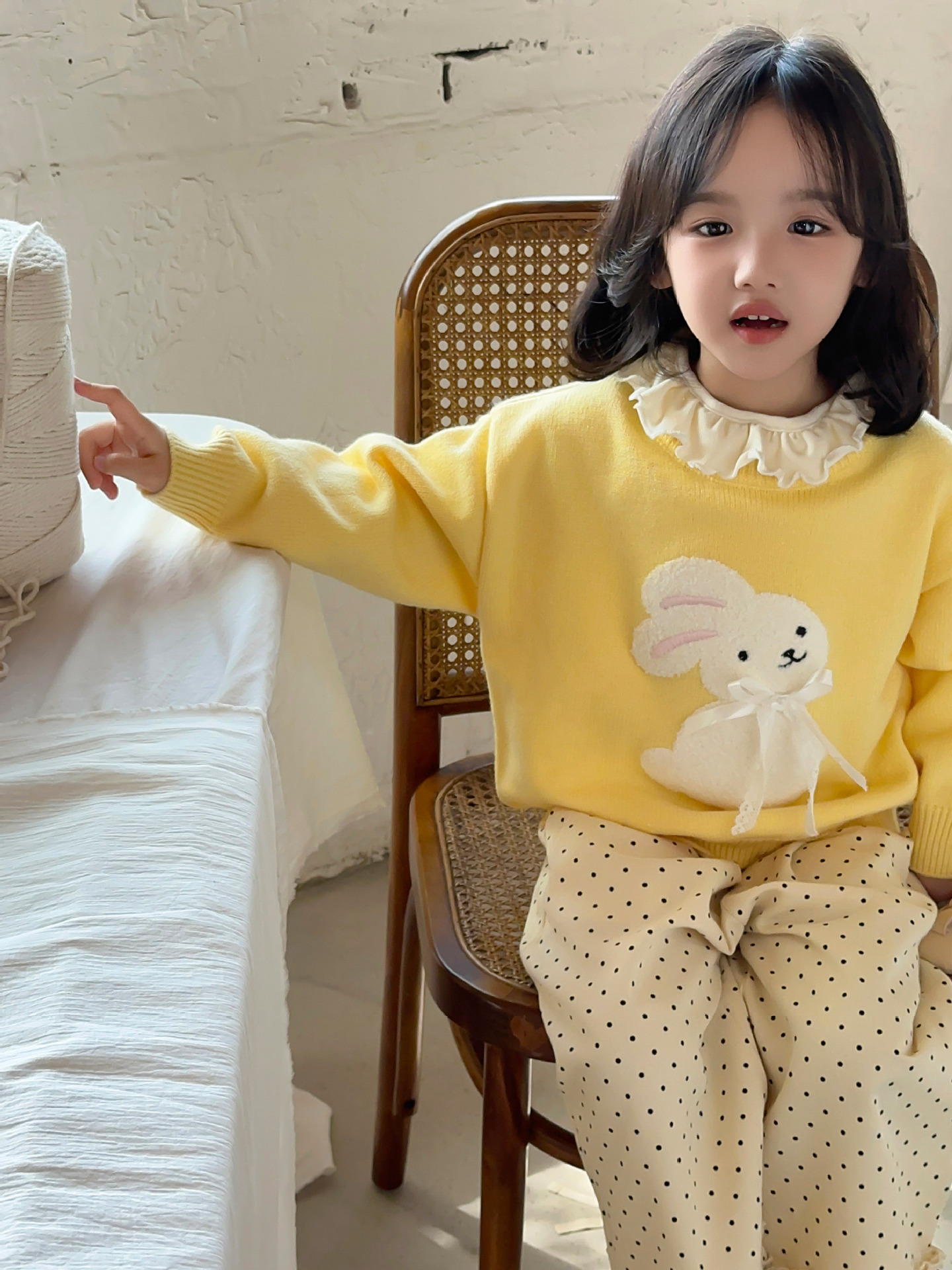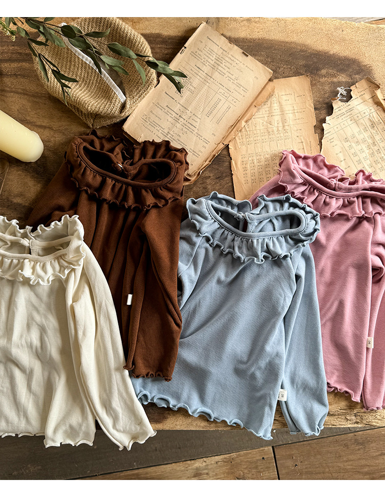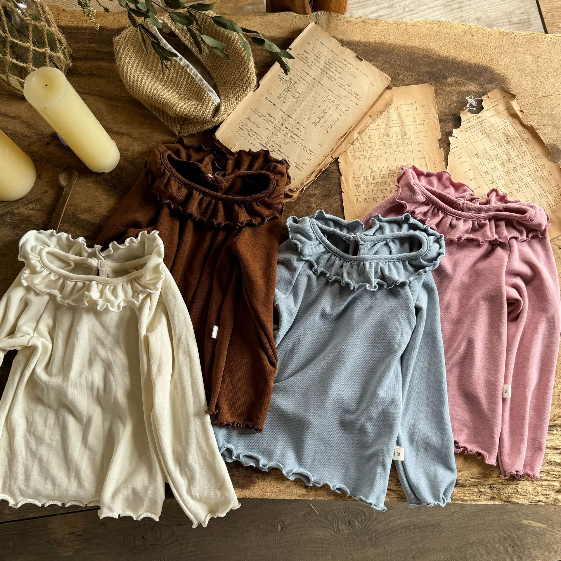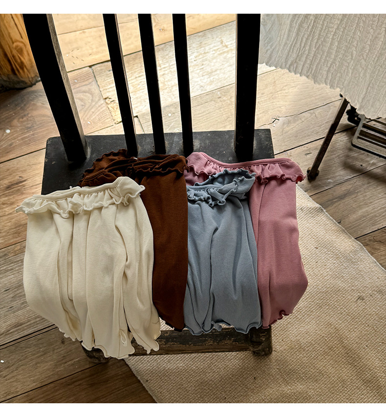 2024 새로운 가을, 겨울 아동 의류 한국 스타일 아동 의류 소녀의 프릴 바닥 셔츠 아동용 탄성 귀 티셔츠스토어 가기