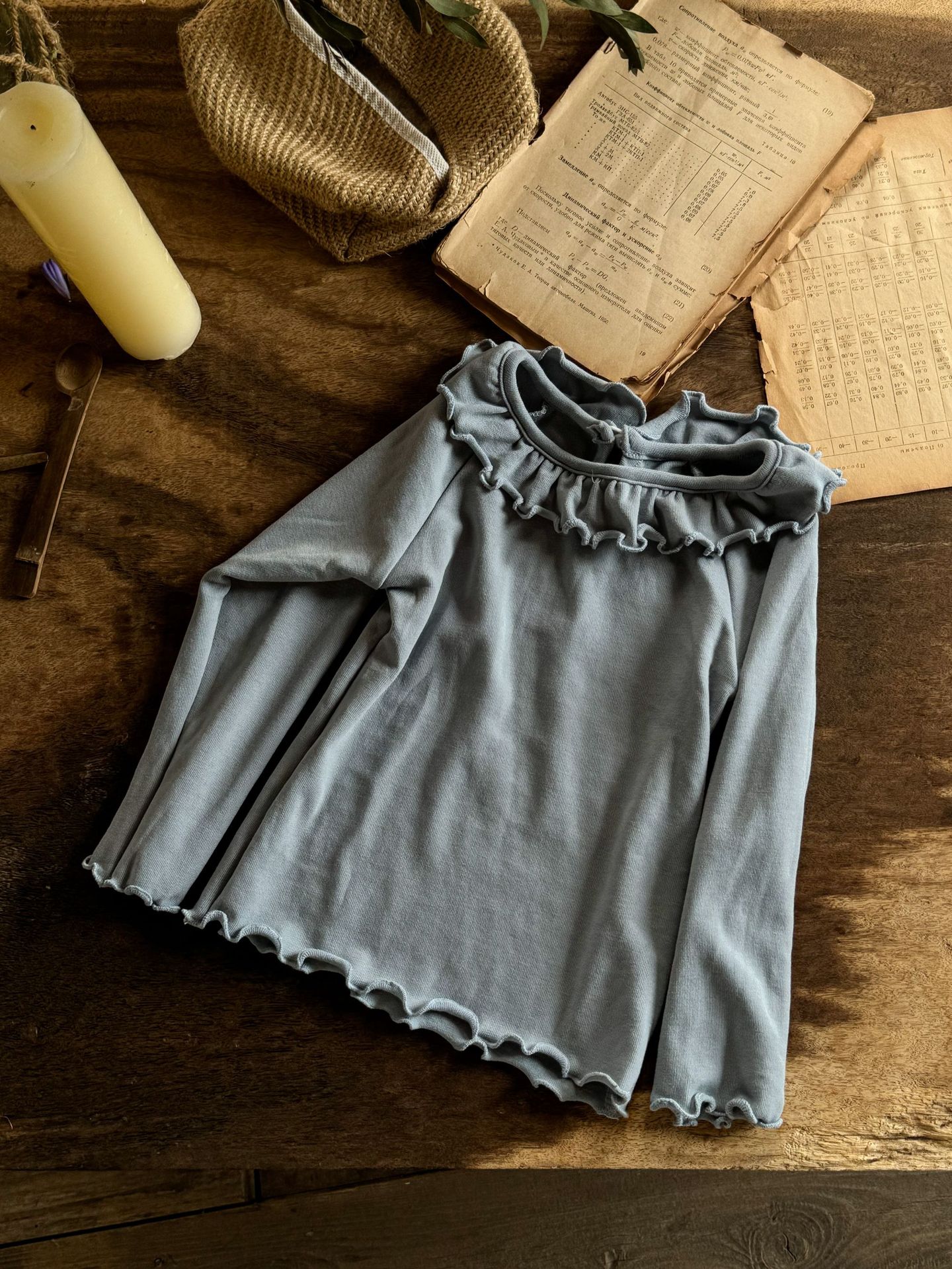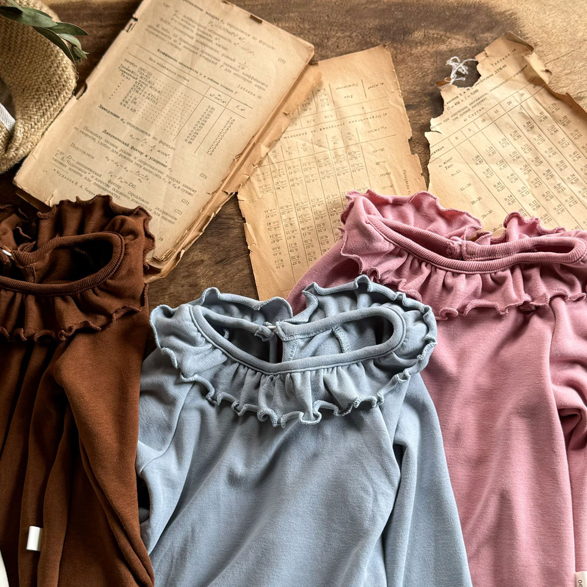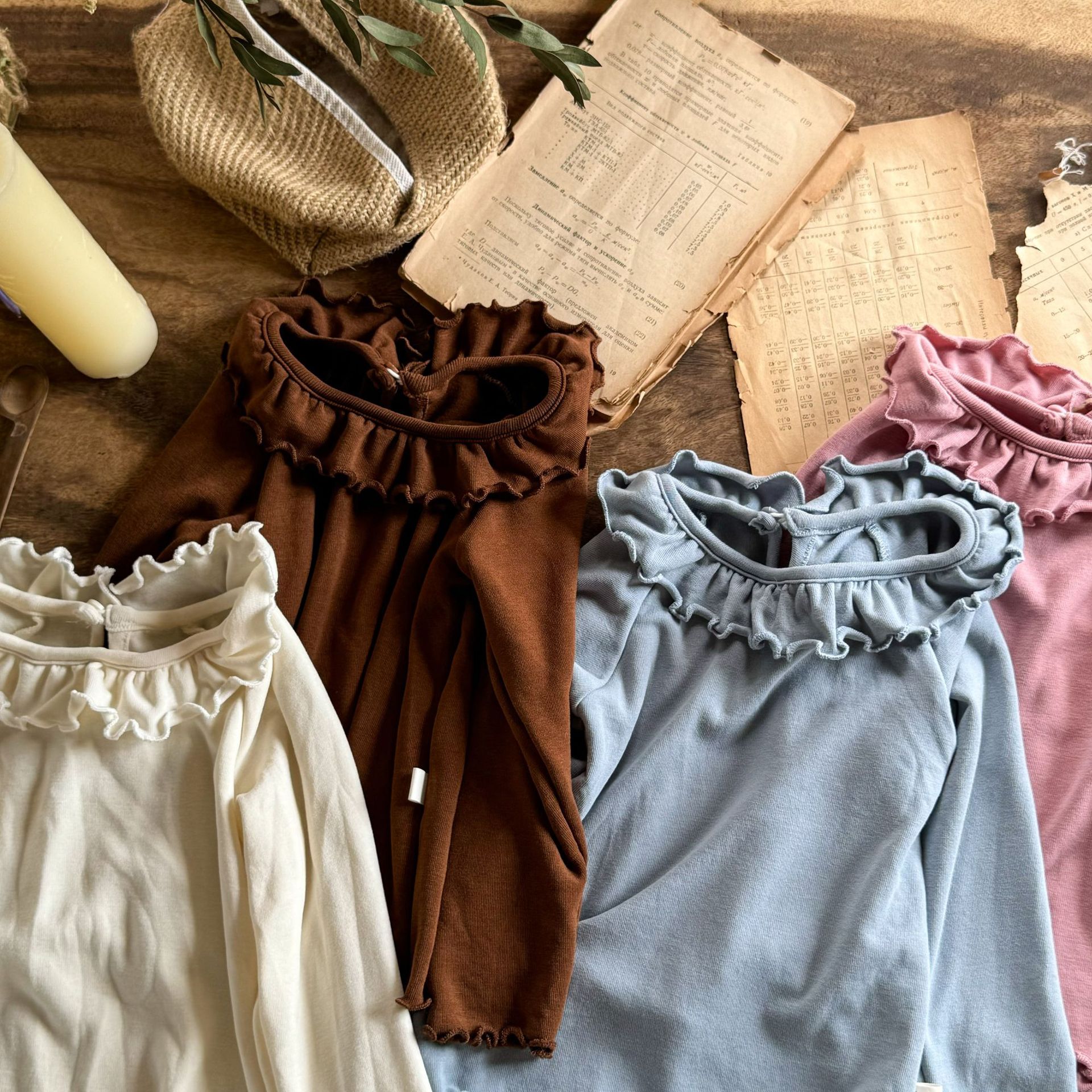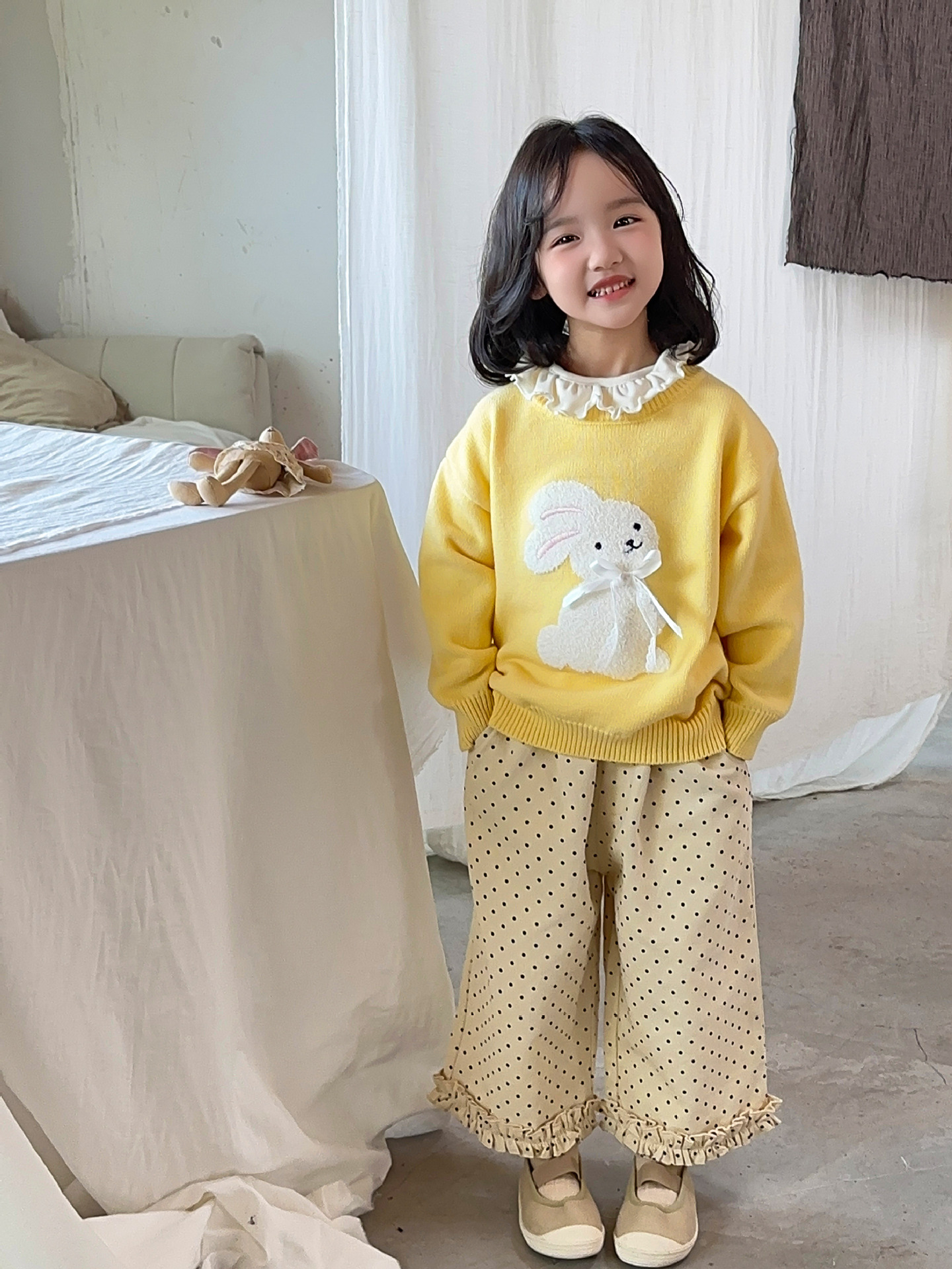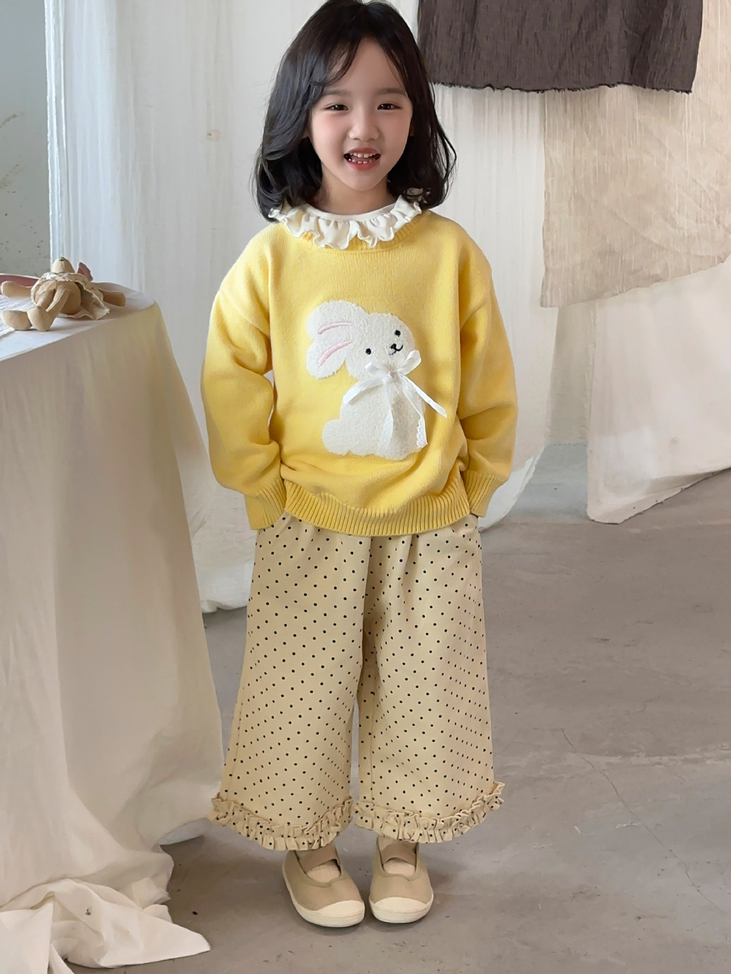 2024 새로운 가을, 겨울 아동 의류 한국 스타일 아동 의류 소녀의 프릴 바닥 셔츠 아동용 탄성 귀 티셔츠스토어 가기