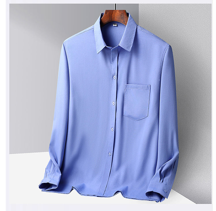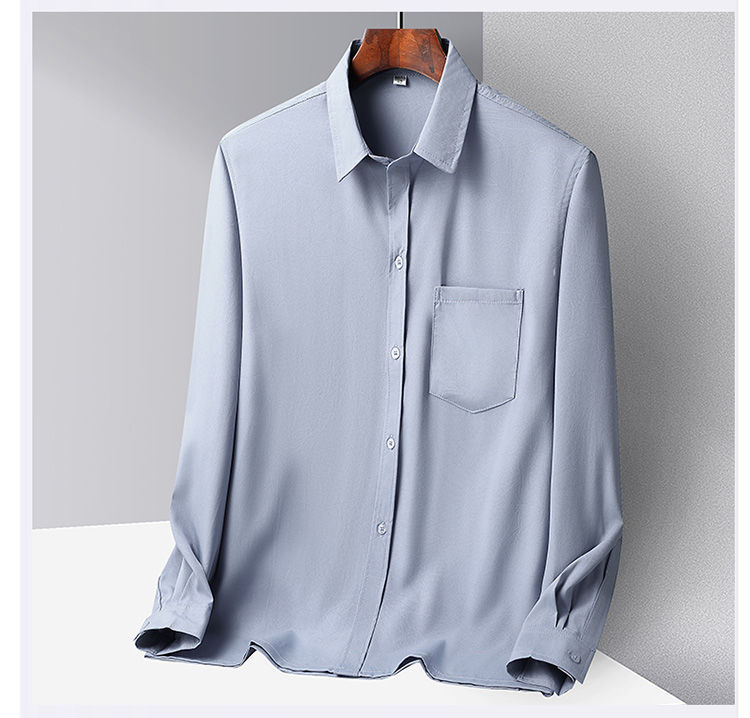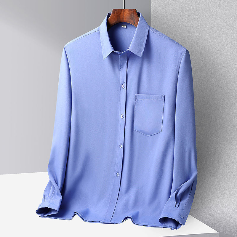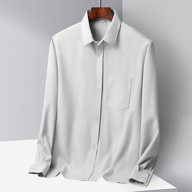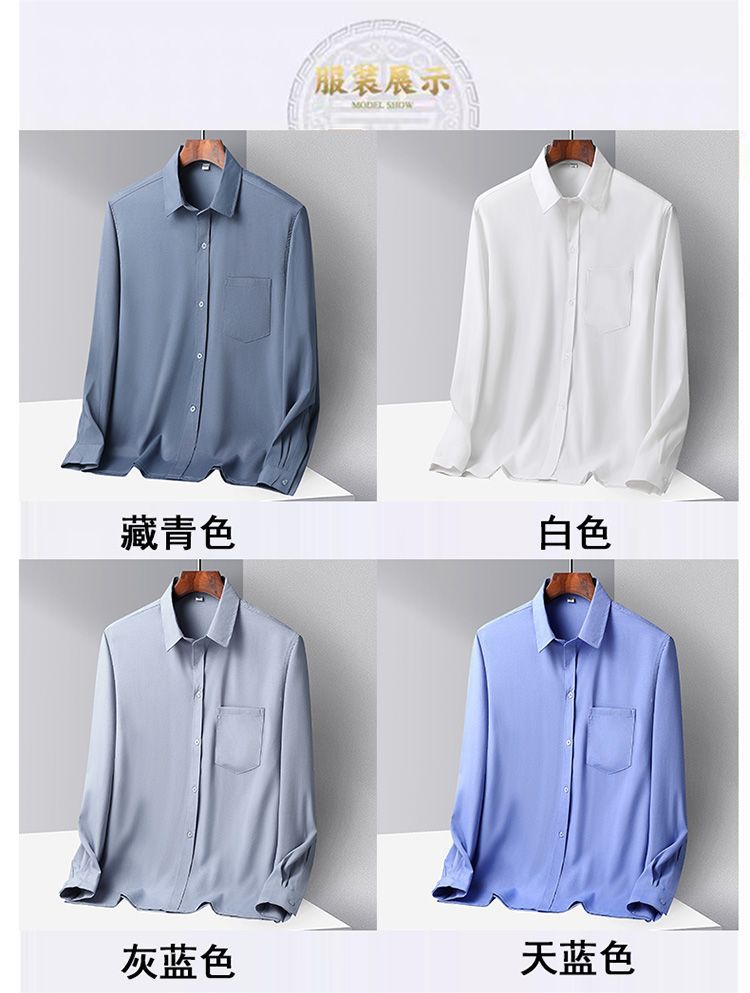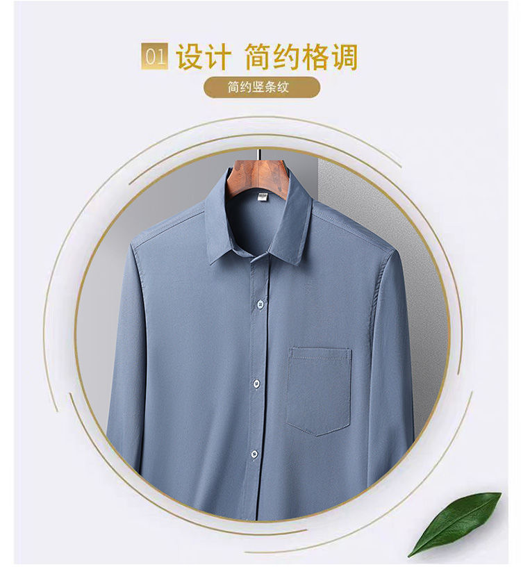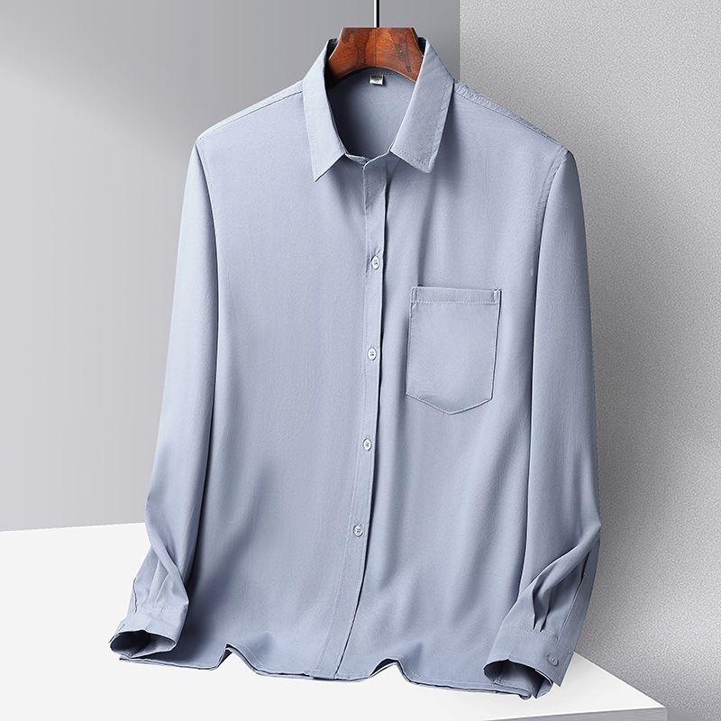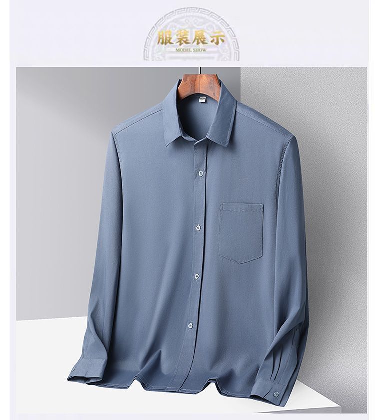 중년 및 노인 남성 셔츠 아이스 실크 캐주얼 긴팔 셔츠 얇은 아빠 여름 옷 느슨한 단색 할아버지 옷스토어 가기