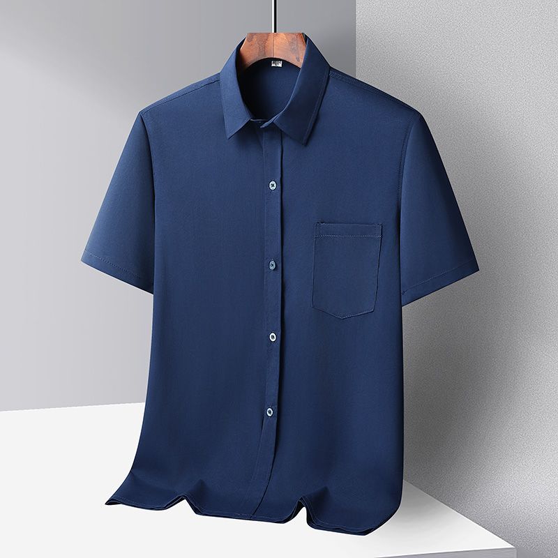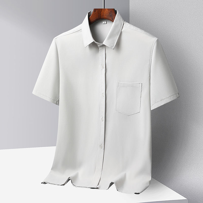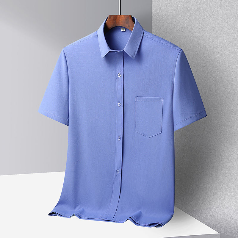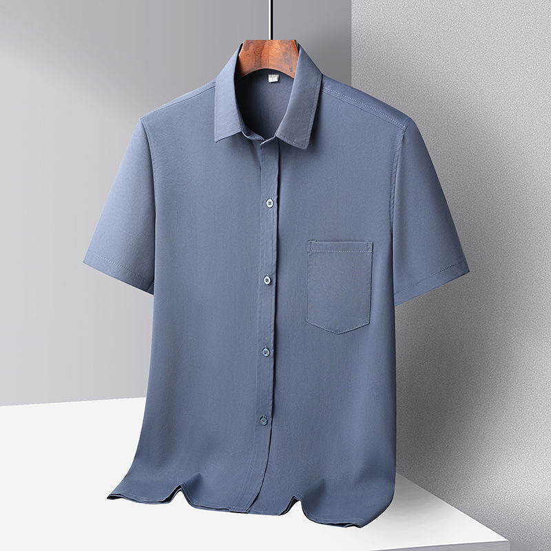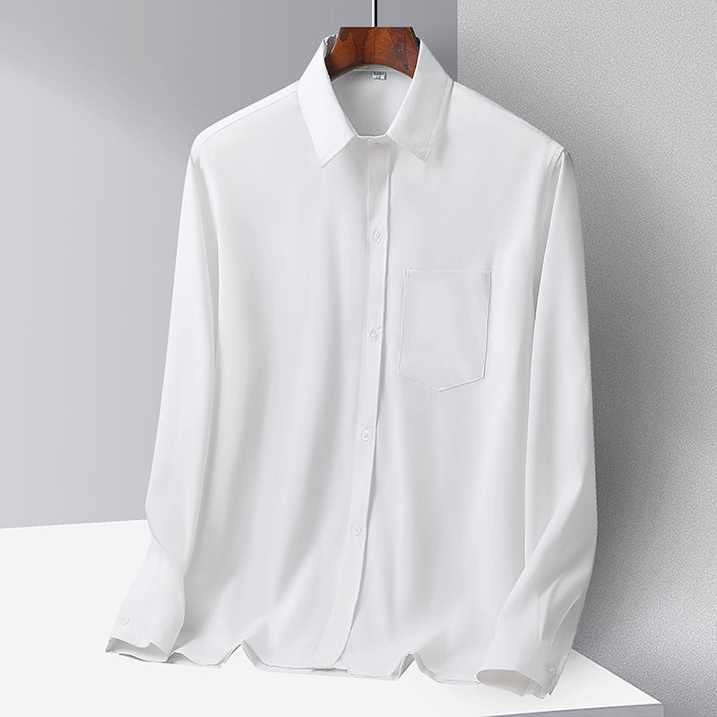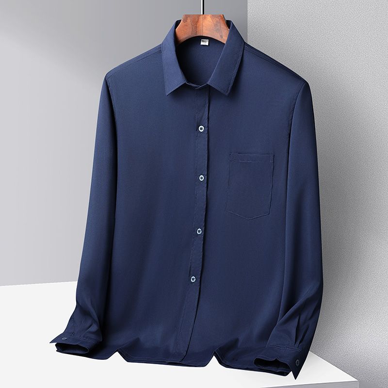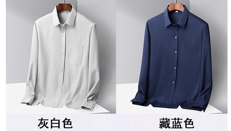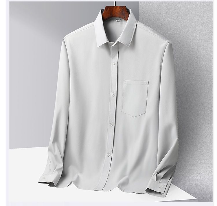 중년 및 노인 남성 셔츠 아이스 실크 캐주얼 긴팔 셔츠 얇은 아빠 여름 옷 느슨한 단색 할아버지 옷스토어 가기
