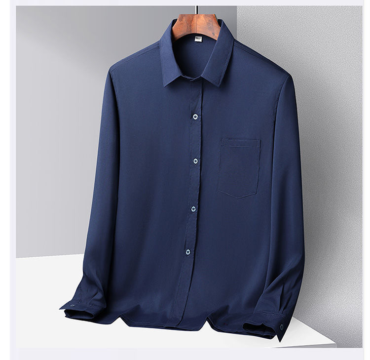 중년 및 노인 남성 셔츠 아이스 실크 캐주얼 긴팔 셔츠 얇은 아빠 여름 옷 느슨한 단색 할아버지 옷