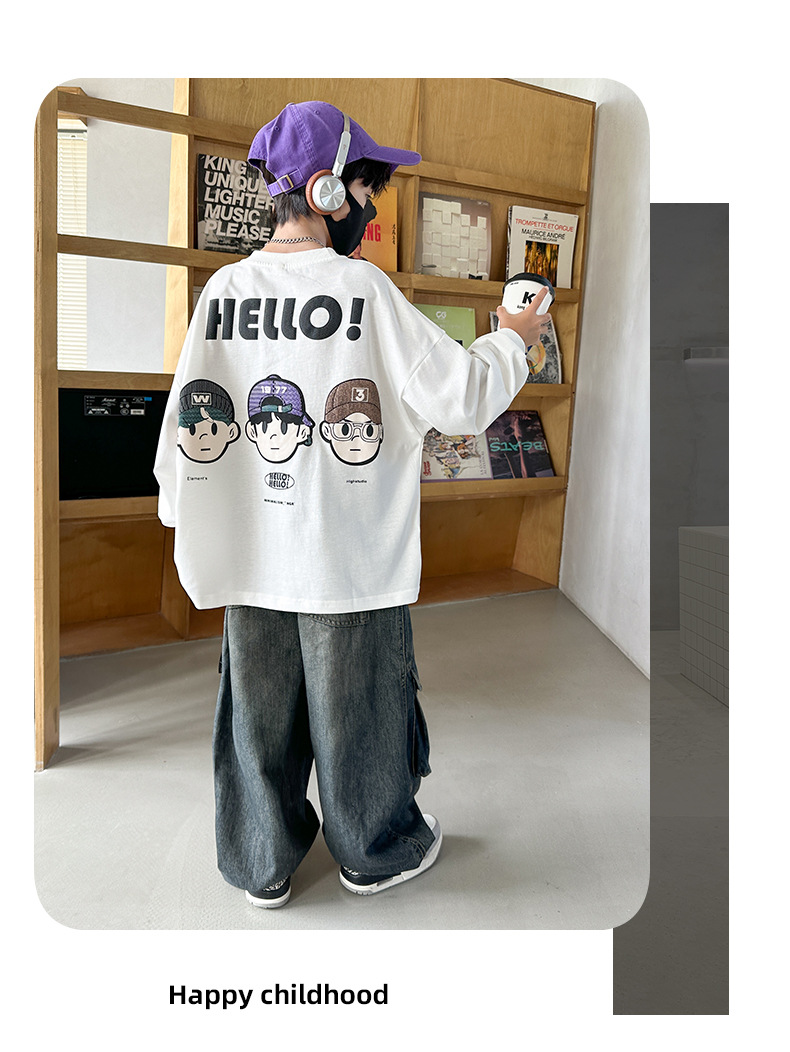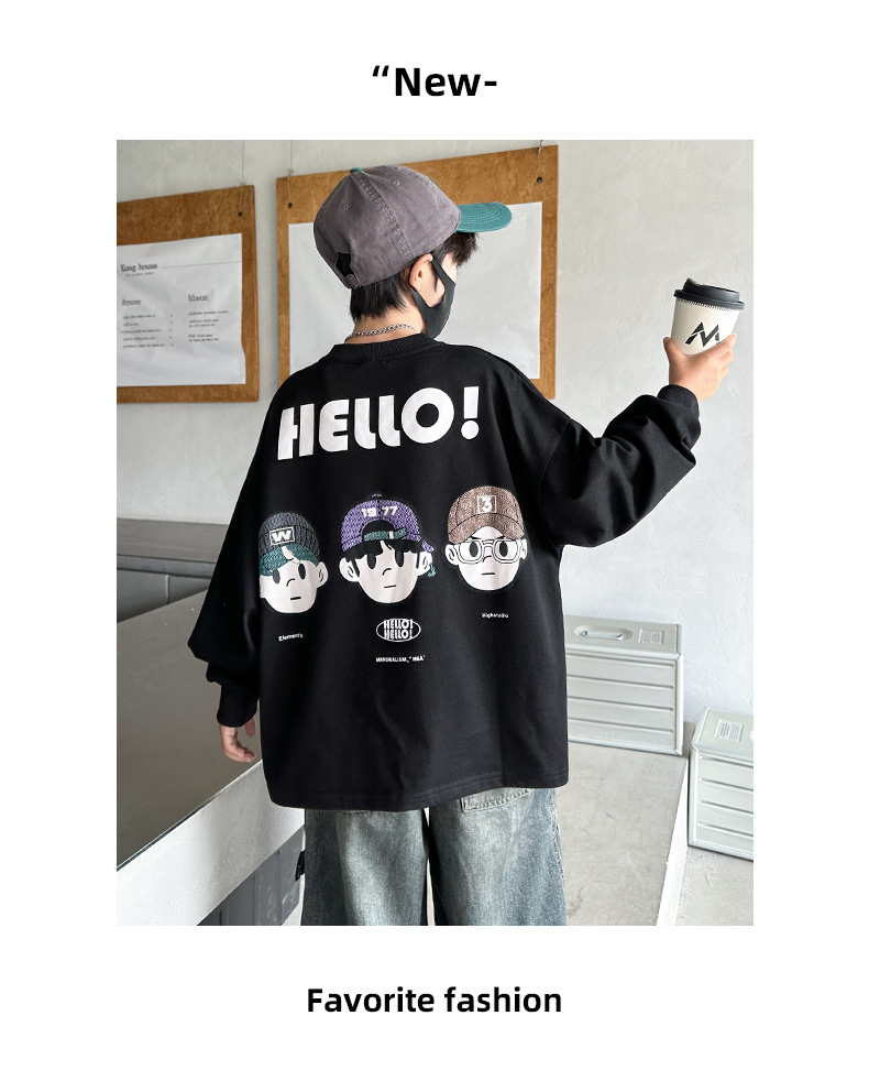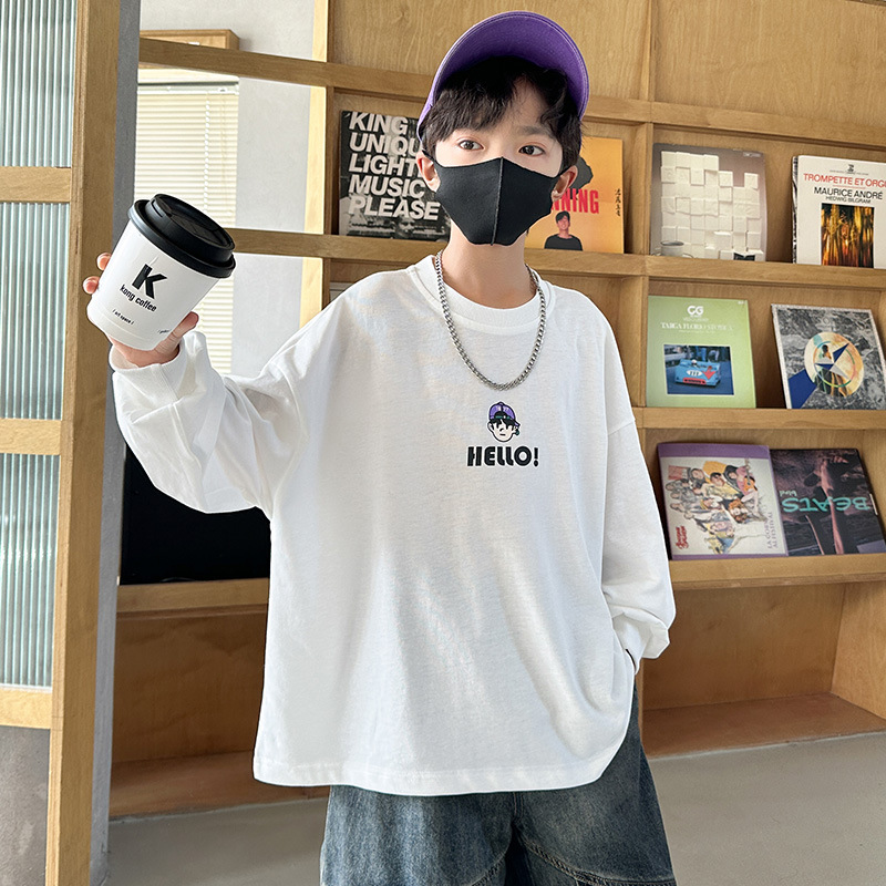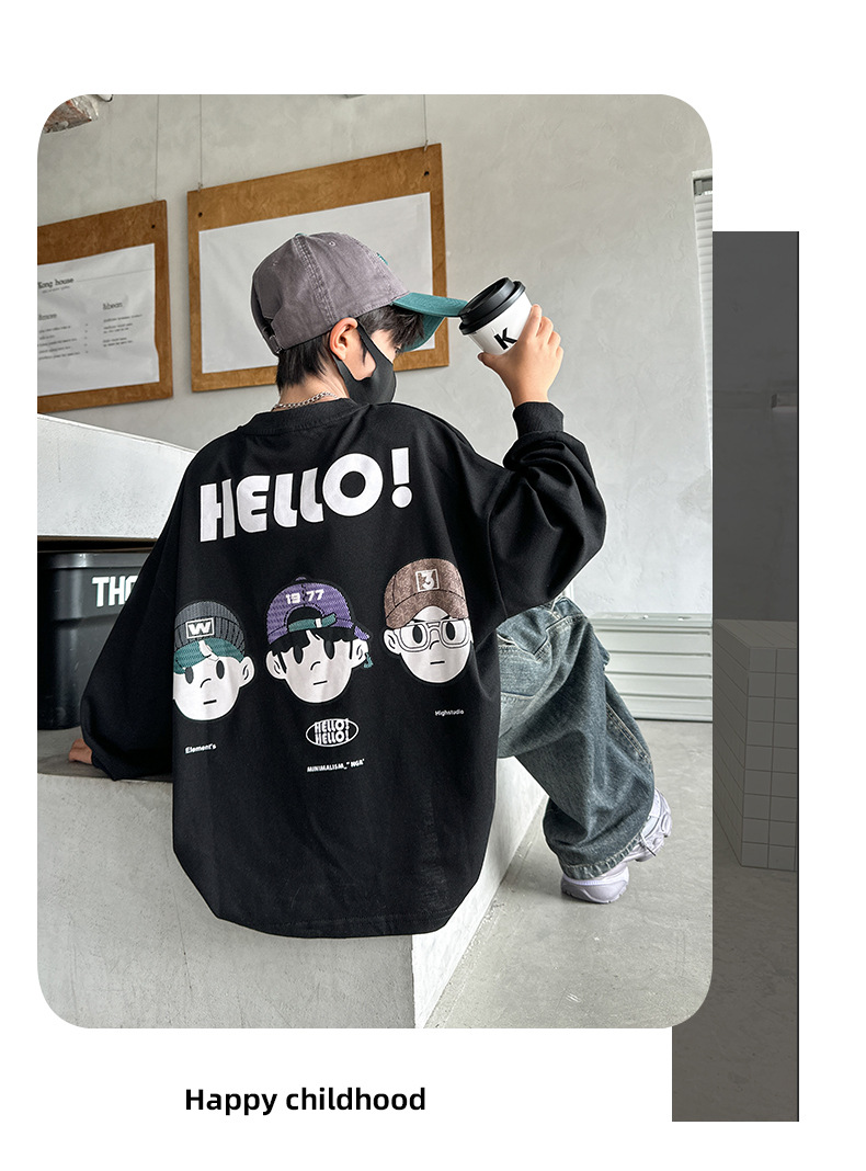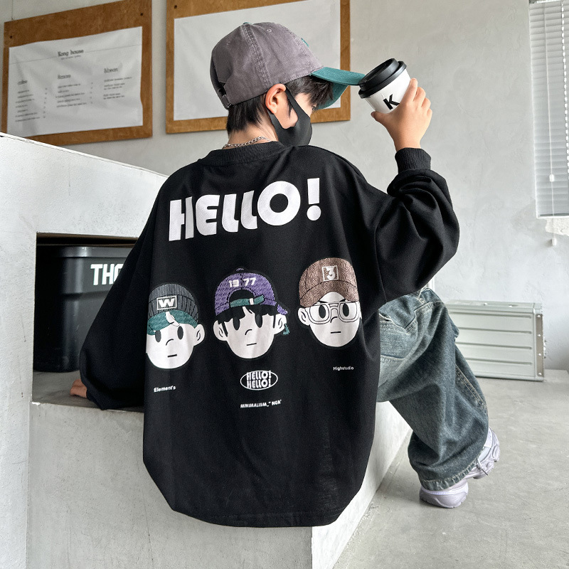 봄 중다 소년 긴팔 티셔츠 새로운 아동복 어린이 소년 만화 탑 느슨한 맞춤형 트렌디 티셔츠스토어 가기