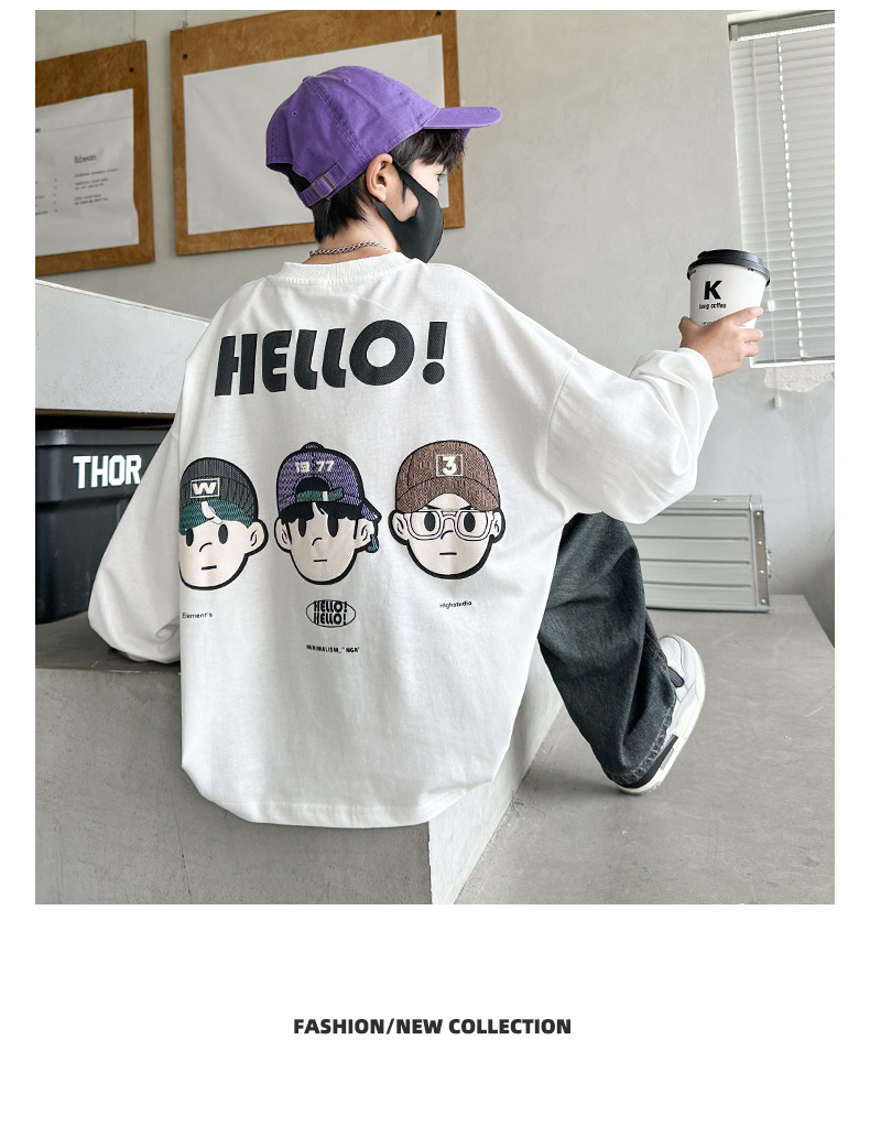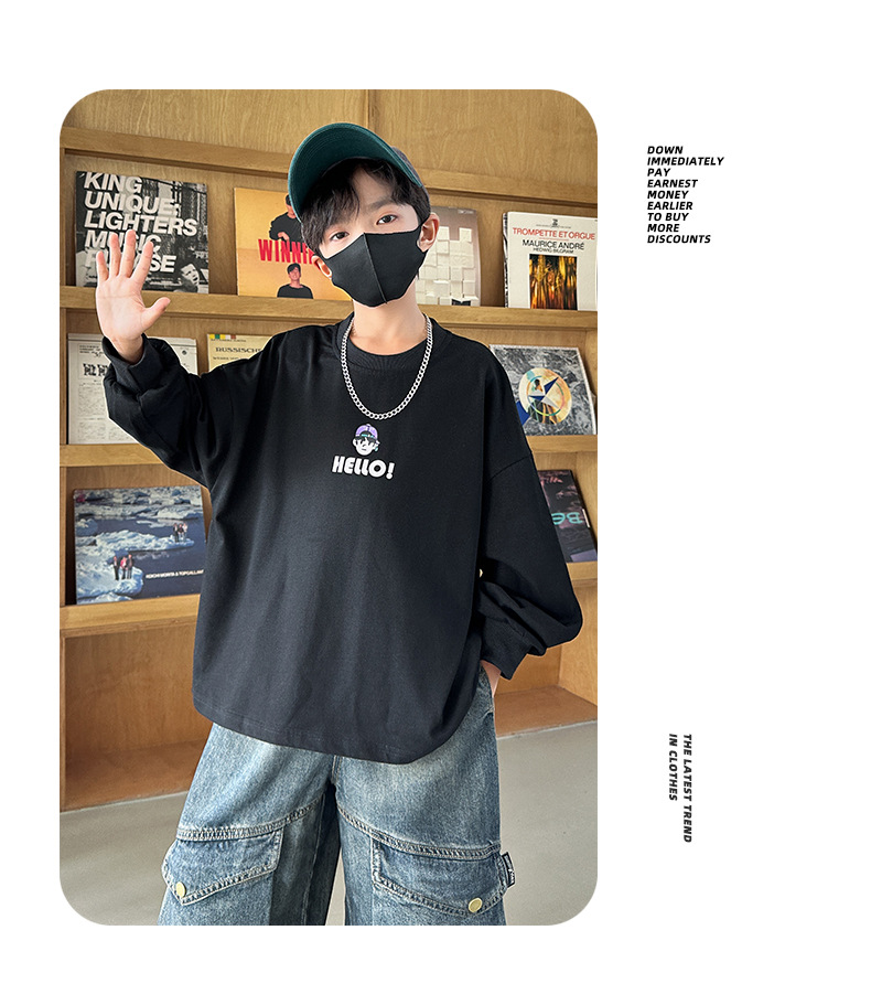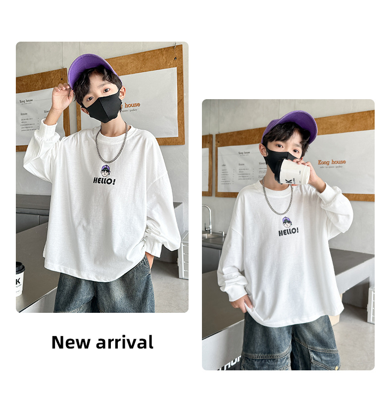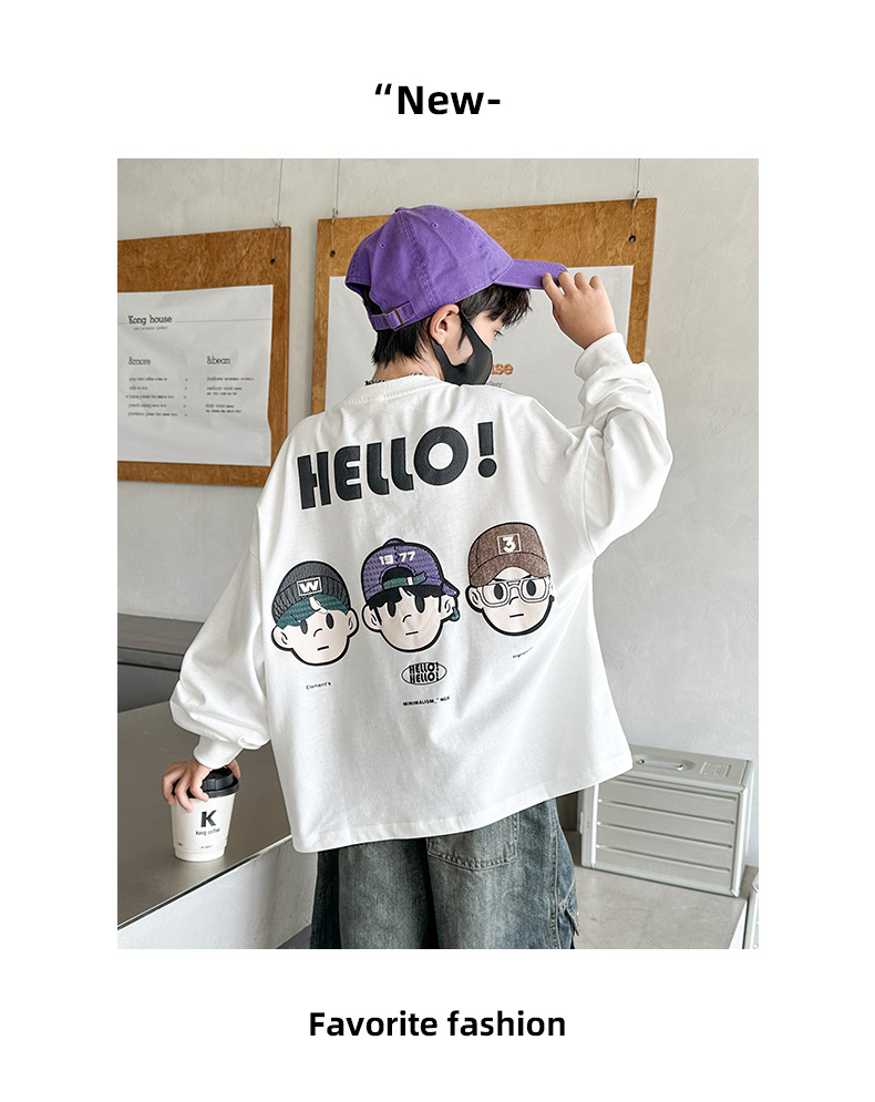봄 중다 소년 긴팔 티셔츠 새로운 아동복 어린이 소년 만화 탑 느슨한 맞춤형 트렌디 티셔츠스토어 가기