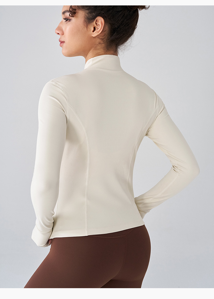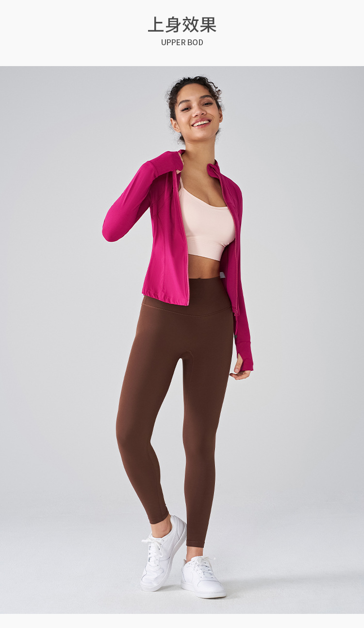 벌거 벗은 선 스크린 요가 최고 긴팔 슬림 핏 수직 칼라 스포츠 재킷 여성의 고급 피트니스 착용 통기성 요가 착용스토어 가기
