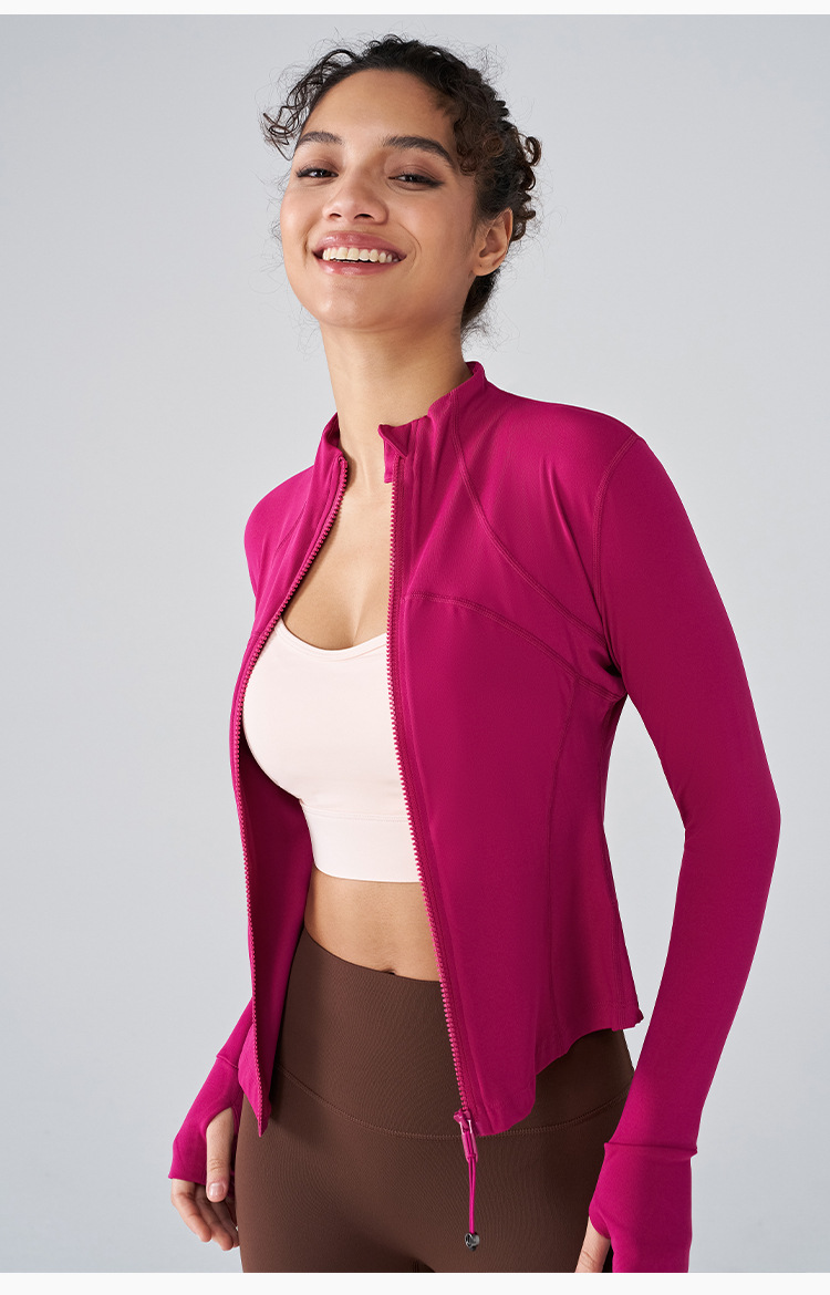 벌거 벗은 선 스크린 요가 최고 긴팔 슬림 핏 수직 칼라 스포츠 재킷 여성의 고급 피트니스 착용 통기성 요가 착용