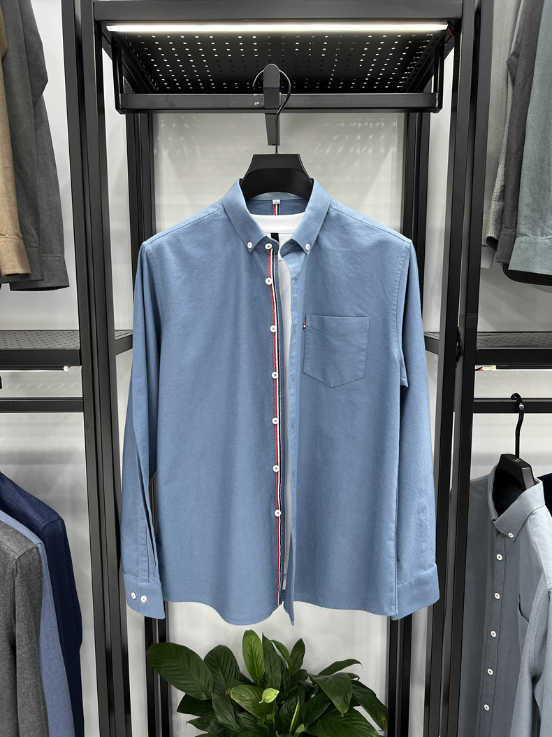 대외 무역 수출 100 면 옥스포드 긴팔 셔츠 남성 가을 패션 캐주얼 자수 꼬리 싱글 남성 셔츠