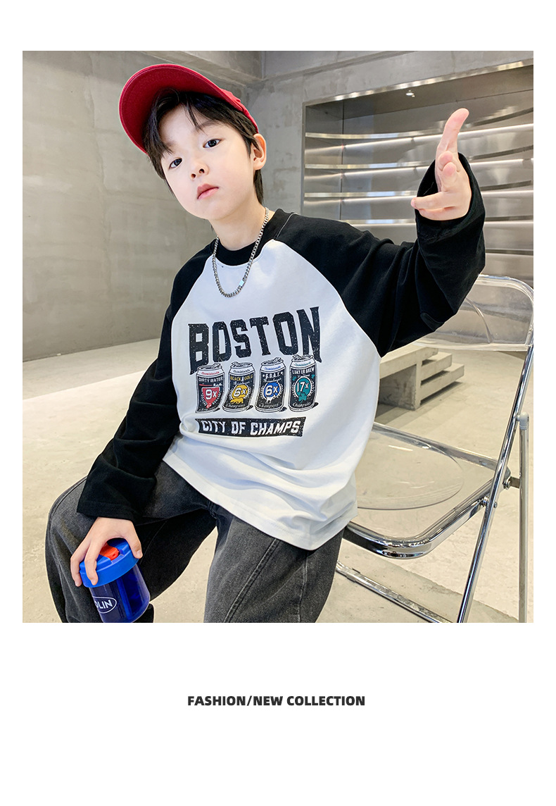 봄 중형 및 대형 소년 긴팔 티셔츠 새로운 아동 의류 아동 소년 만화 탑 컬러 매칭 성격 트렌드 t 세대스토어 가기