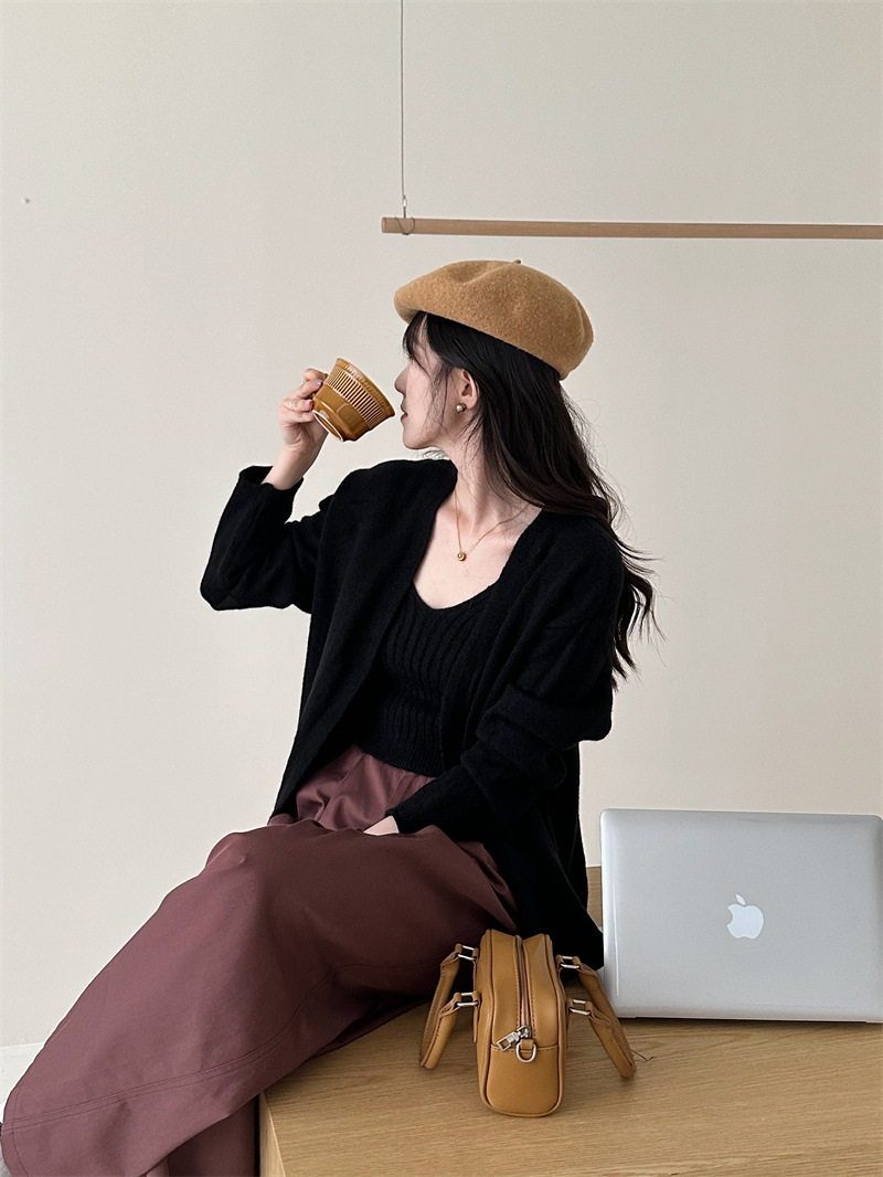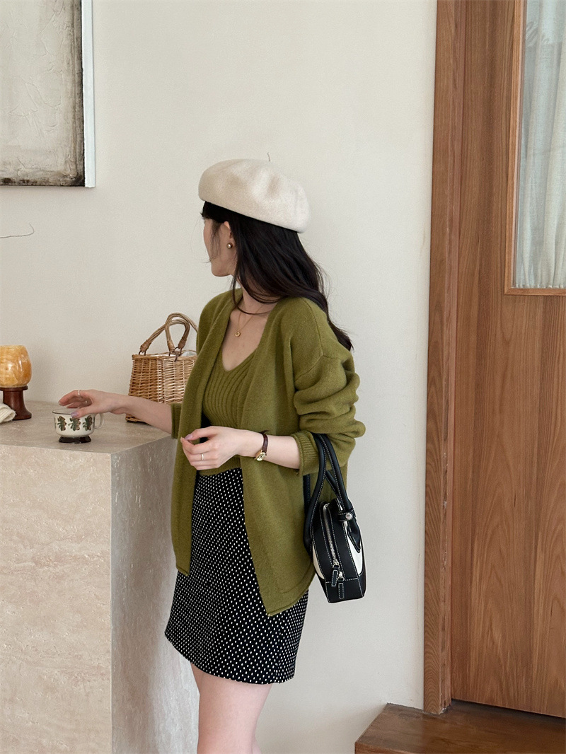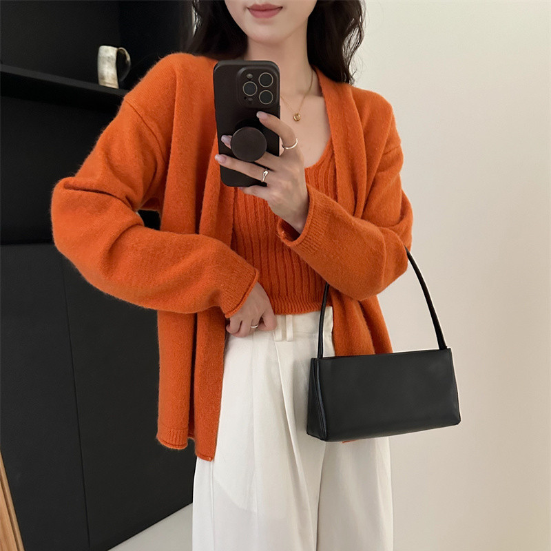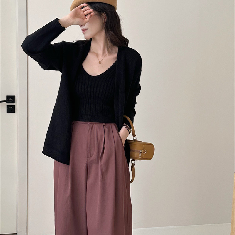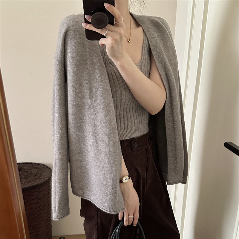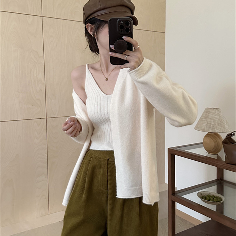 소프트 왁스 패션 게으른 스타일 니트웨어 재킷 여성의 가을과 겨울 2024 새로운 패션 레트로 스웨터 조끼 투피스 세트스토어 가기