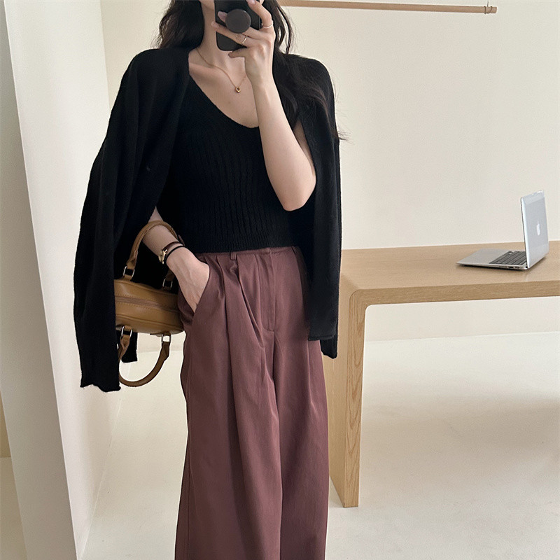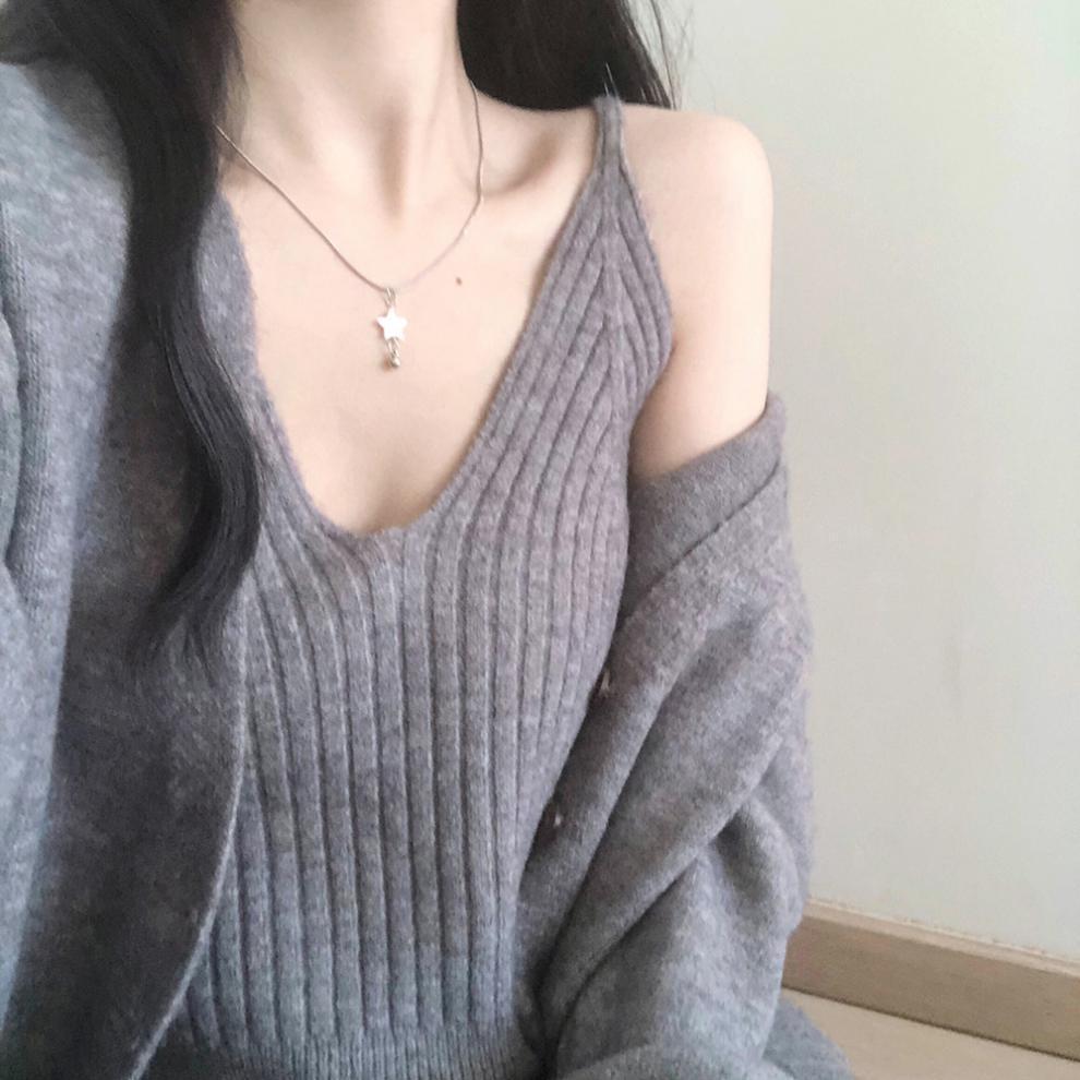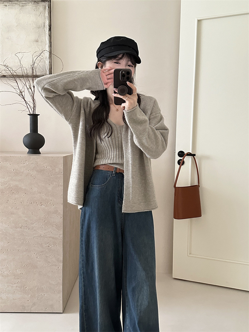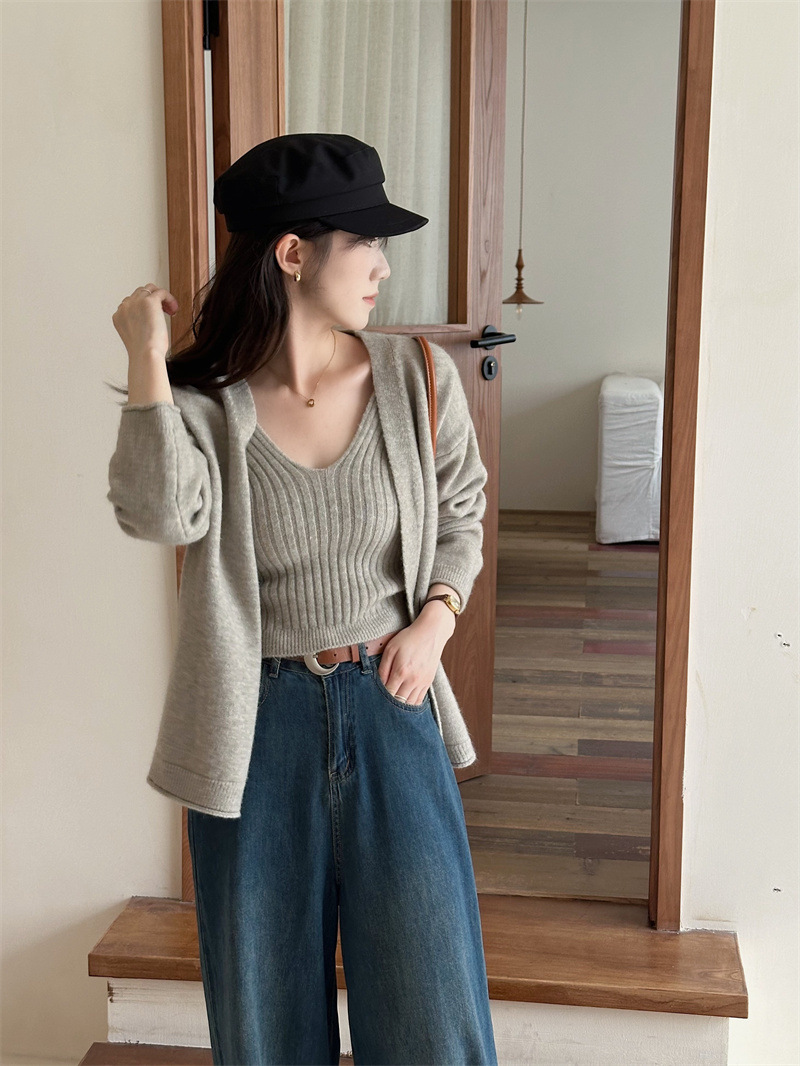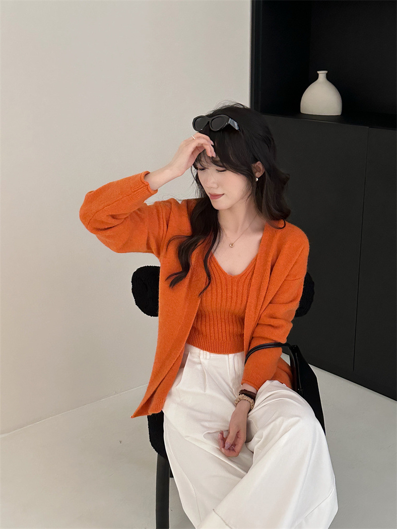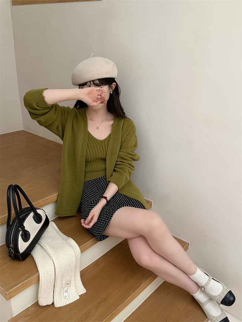 소프트 왁스 패션 게으른 스타일 니트웨어 재킷 여성의 가을과 겨울 2024 새로운 패션 레트로 스웨터 조끼 투피스 세트스토어 가기