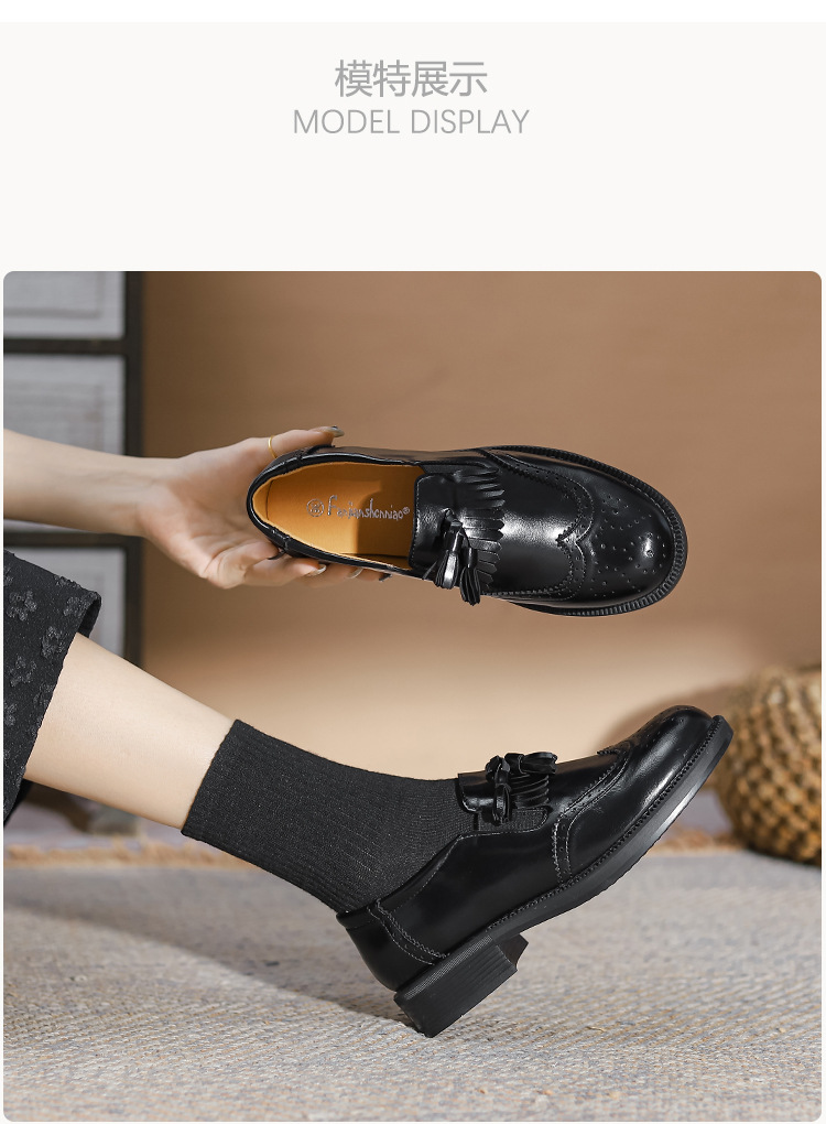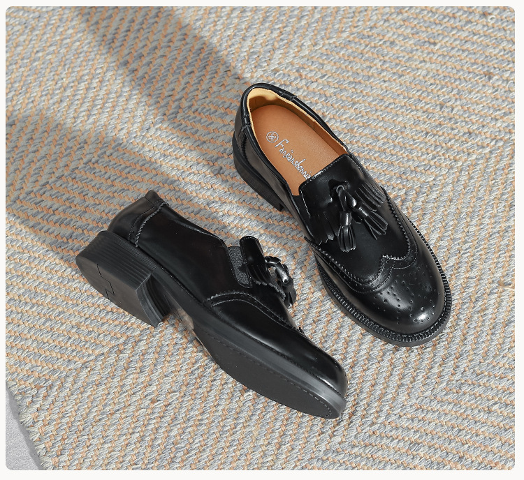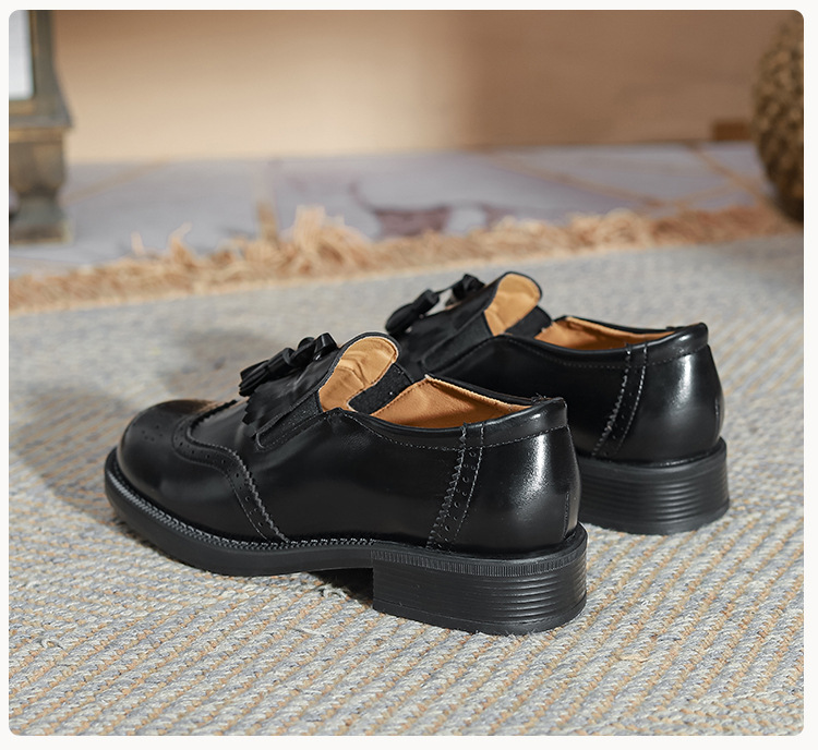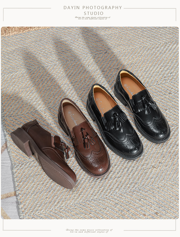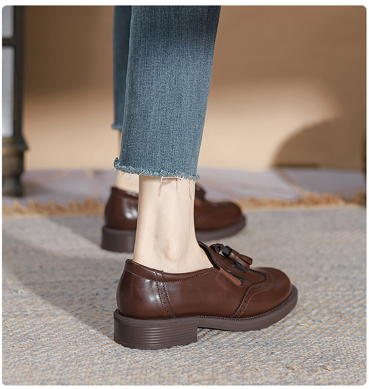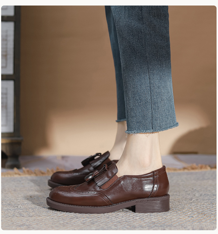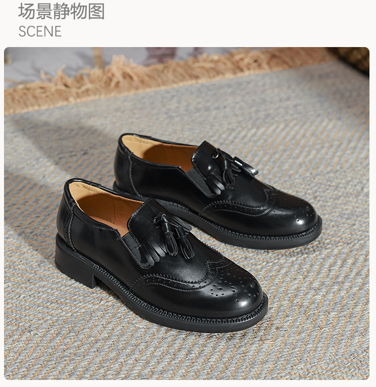 영국 스타일 조각 태슬 슈즈 가을 겨울 정품 가죽 복고풍 작은 가죽 신발 브로그 플랫 로퍼 크로스보더 여성 신발스토어 가기