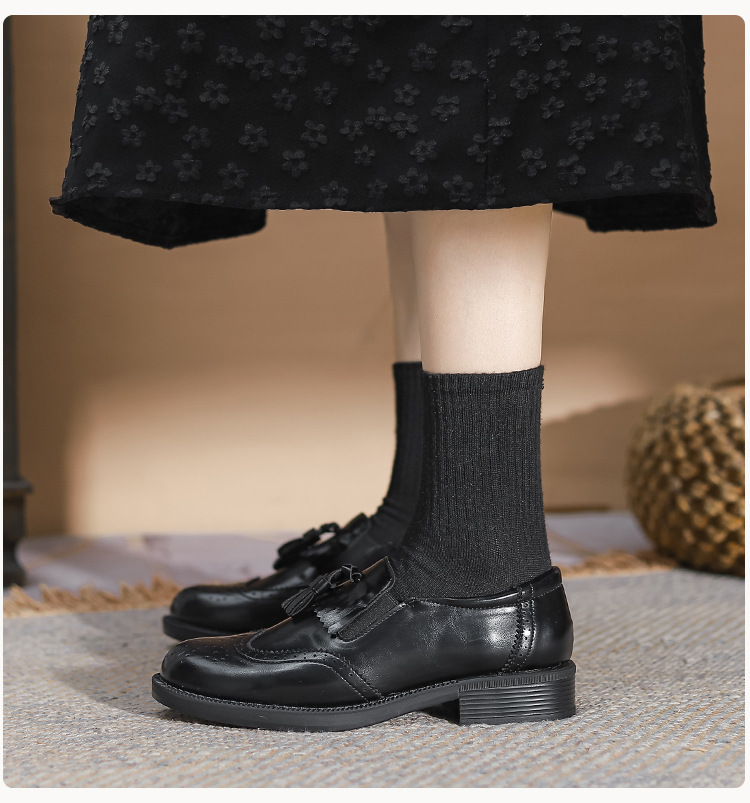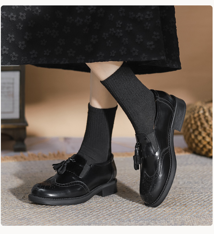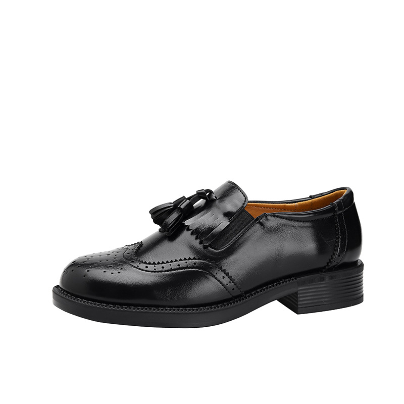 영국 스타일 조각 태슬 슈즈 가을 겨울 정품 가죽 복고풍 작은 가죽 신발 브로그 플랫 로퍼 크로스보더 여성 신발