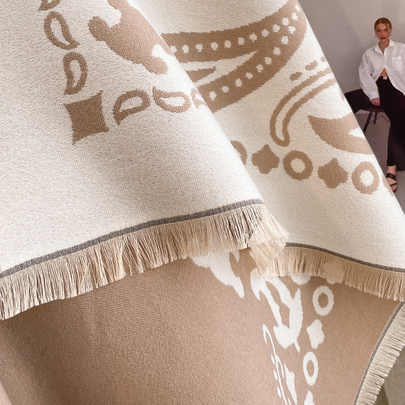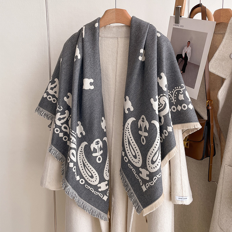 유럽 스타일의 가을과 겨울 클래식 컬러 레터 인쇄 큰 광장 간단한 패션 양면 캐시미어 여성용 따뜻한 스카프