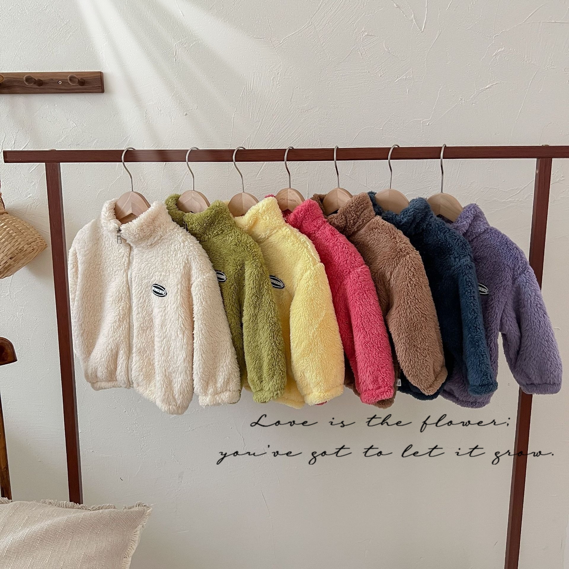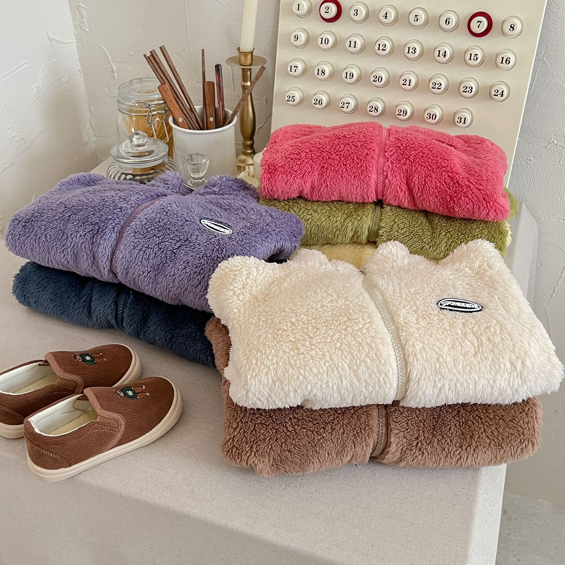 어린이 의류 가을 겨울 재킷 코트 어린이 산호 양털 따뜻한 비니 옷 소년 소녀 플란넬 지퍼 셔츠 재킷스토어 가기