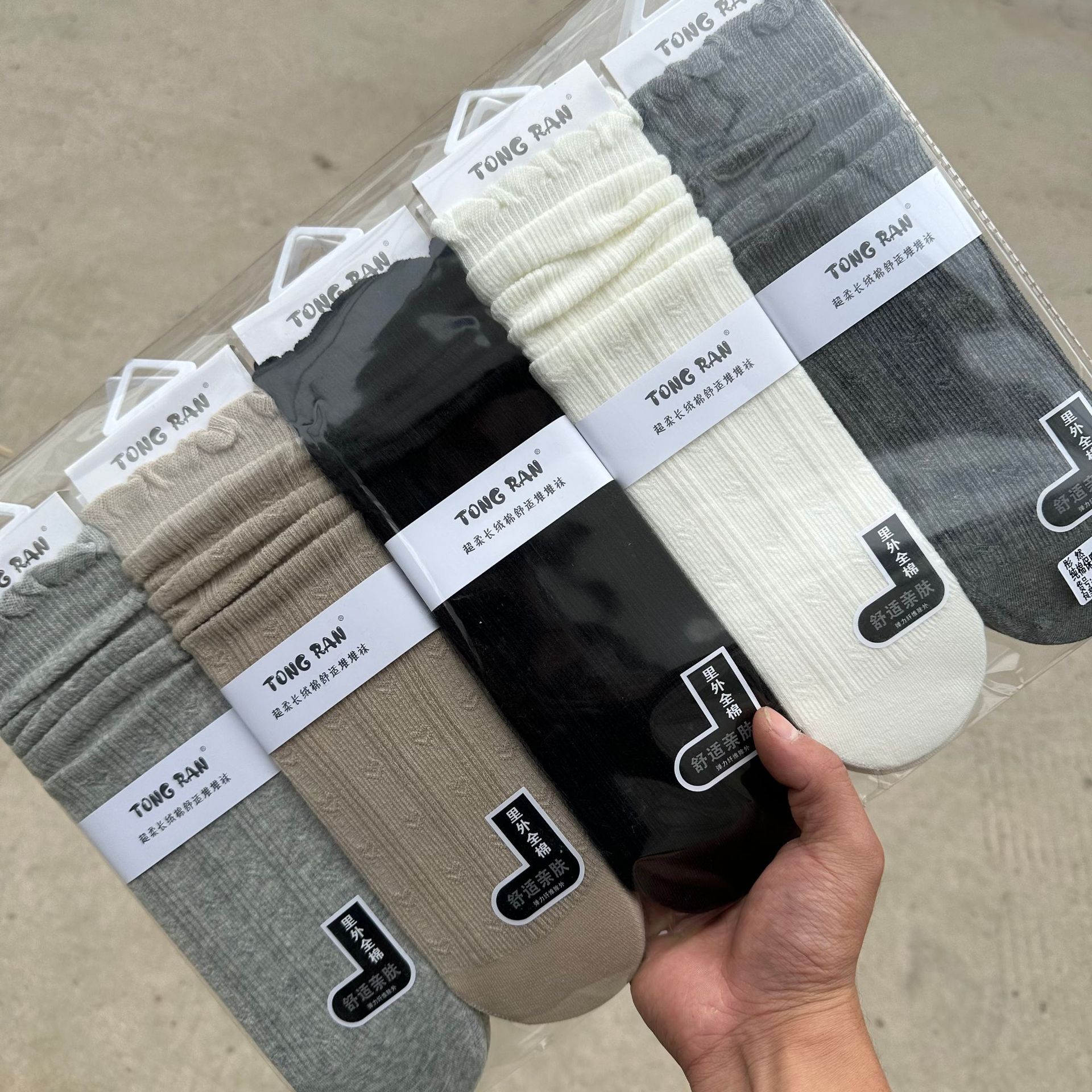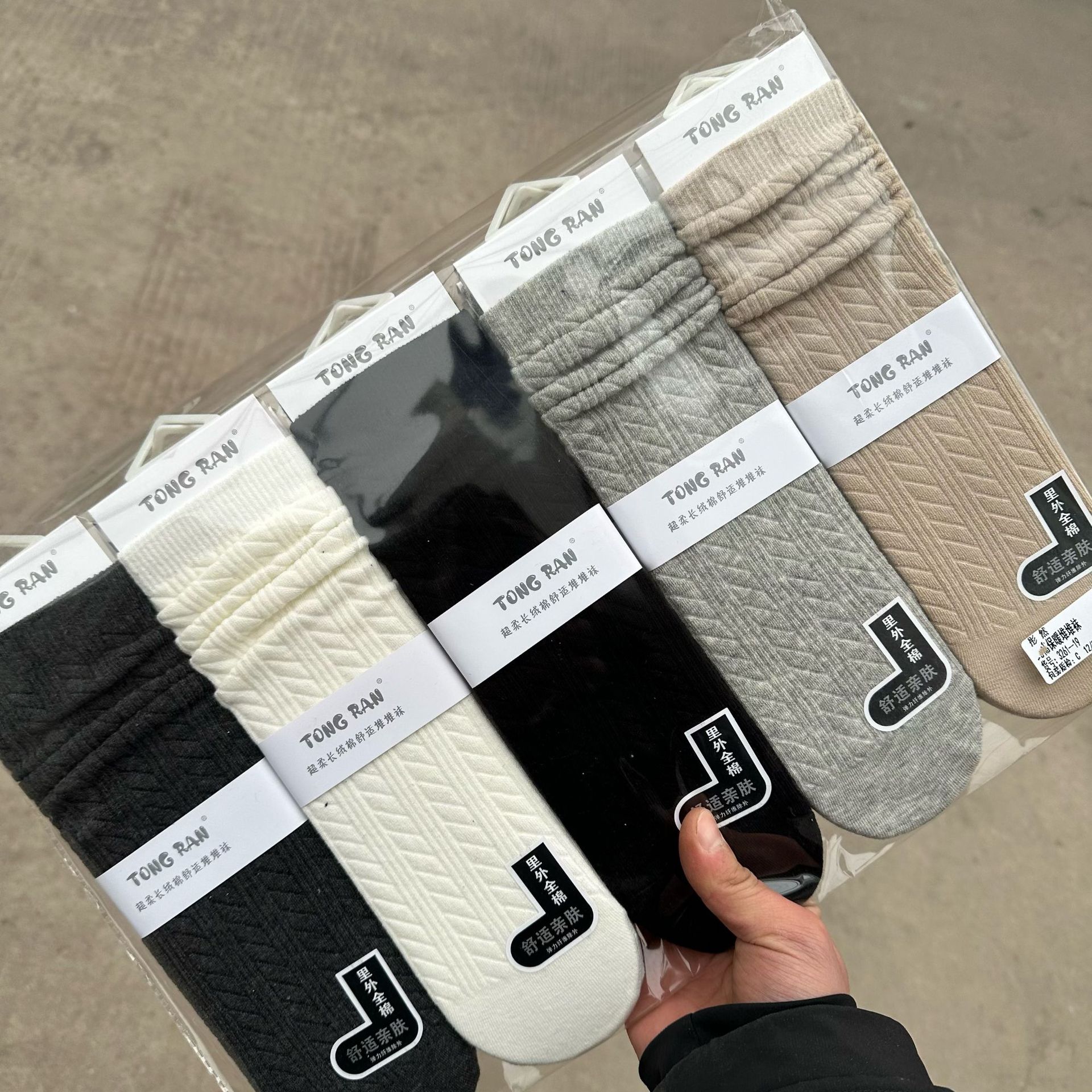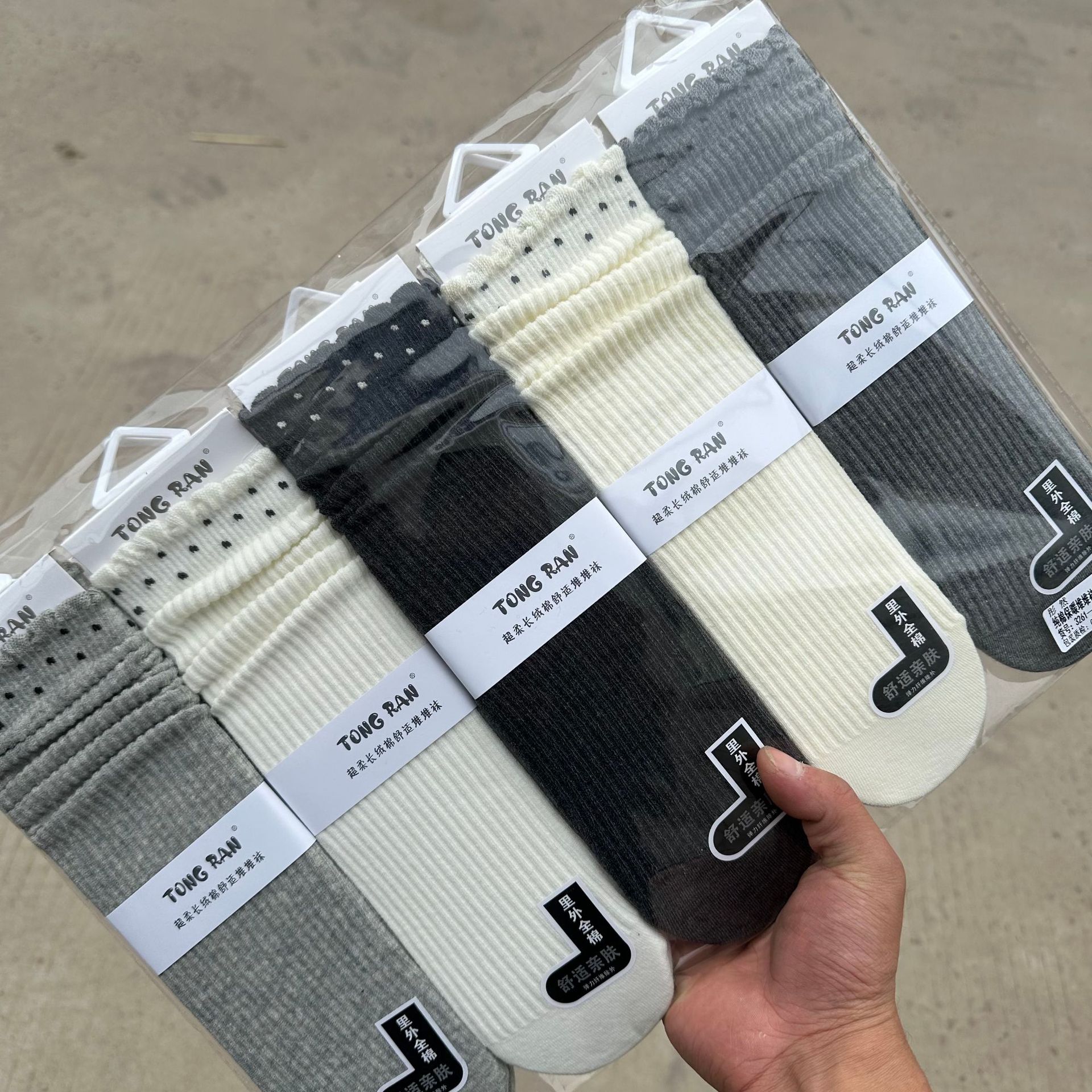 통 란 더미 양말 가을과 겨울 빗 코튼 긴 배럴 한국 스타일 단색 인스타그램 스타일 유행 양말 스키니와 유행 작은 다리 양말스토어 가기