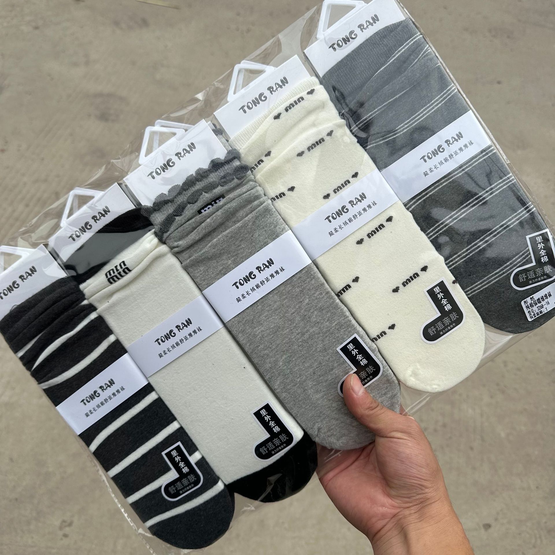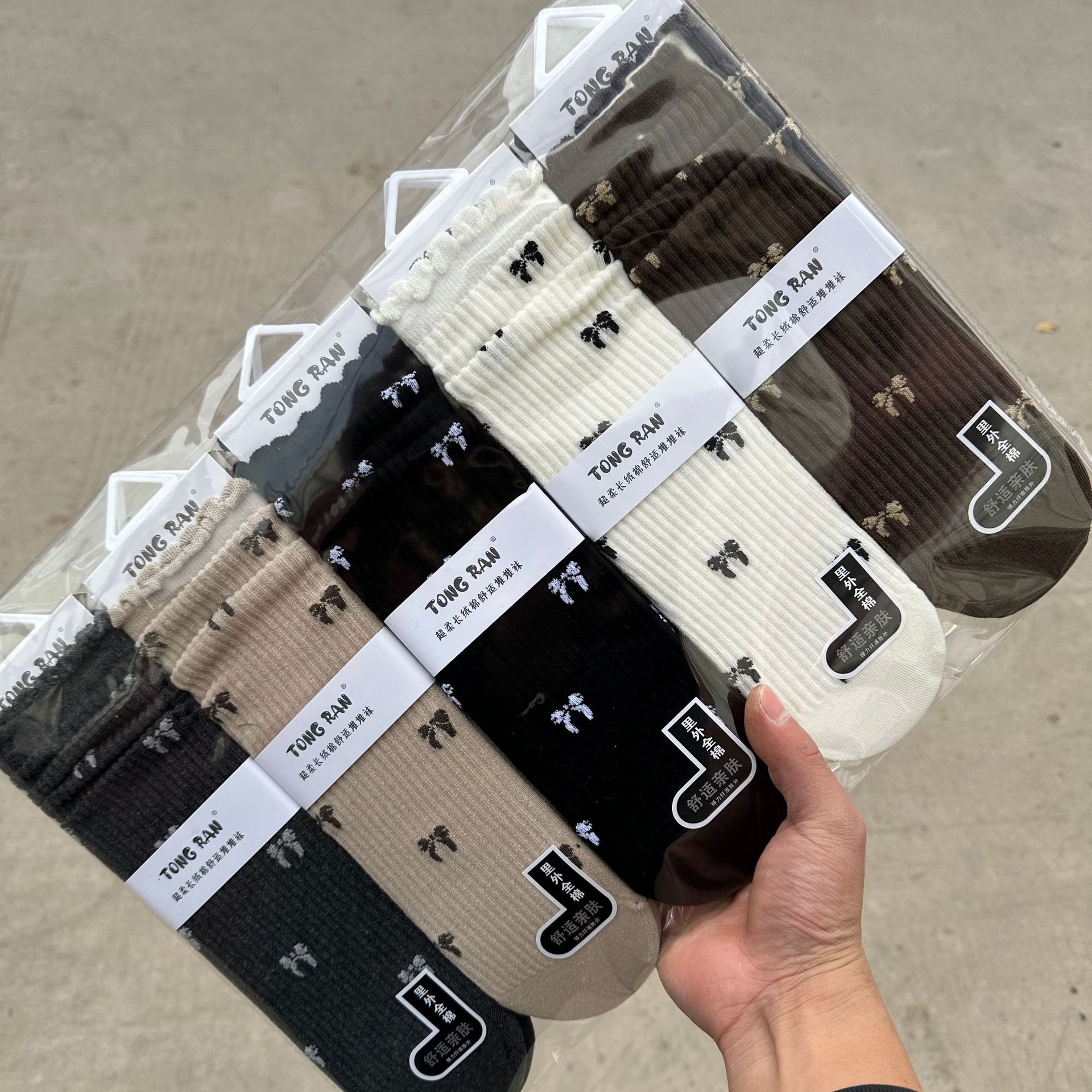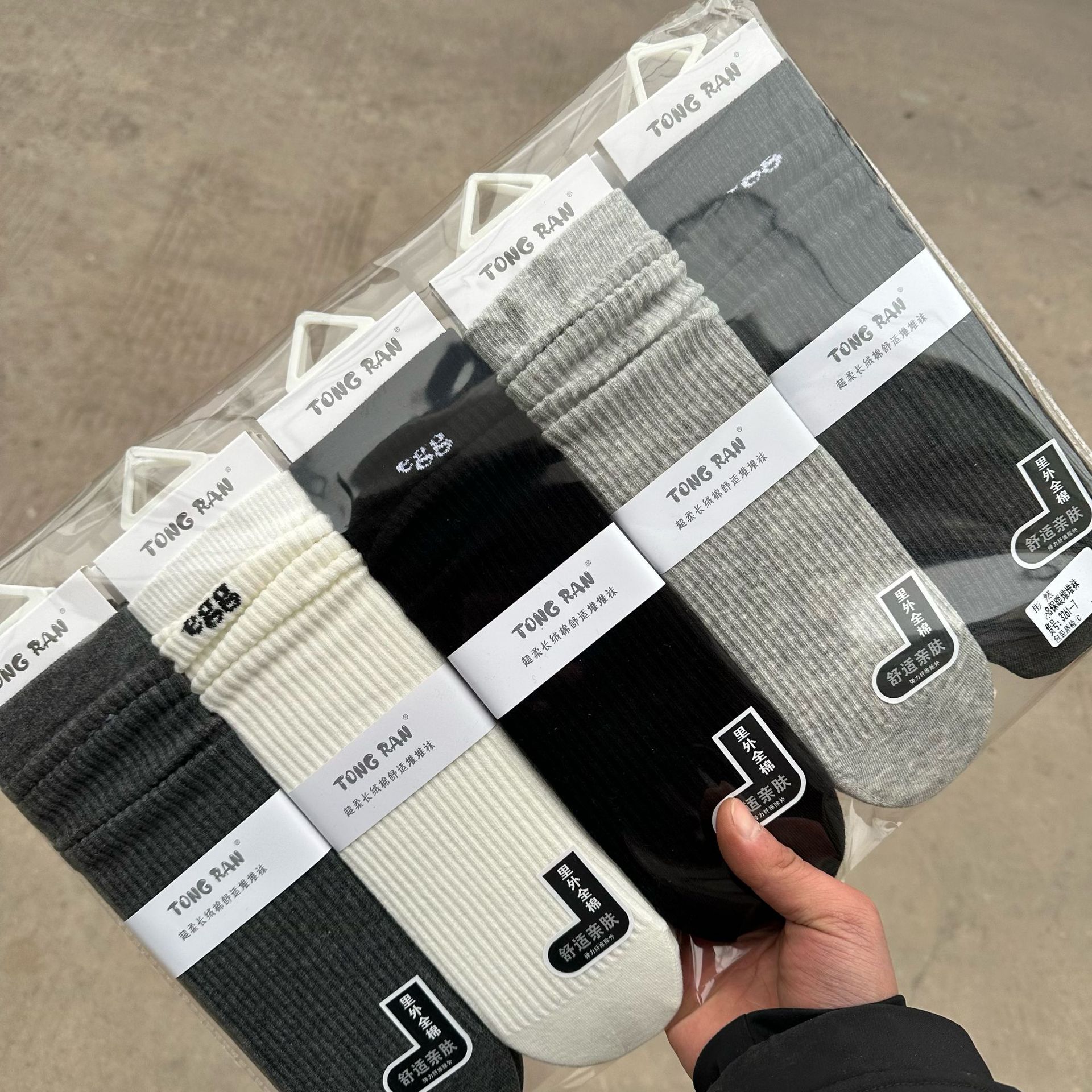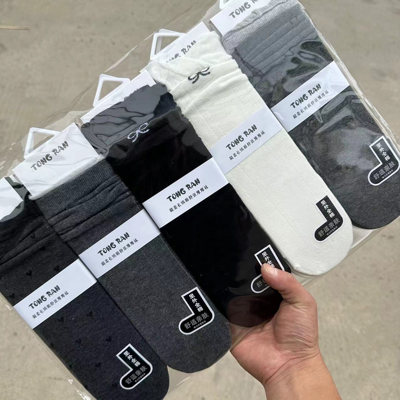통 란 더미 양말 가을과 겨울 빗 코튼 긴 배럴 한국 스타일 단색 인스타그램 스타일 유행 양말 스키니와 유행 작은 다리 양말스토어 가기