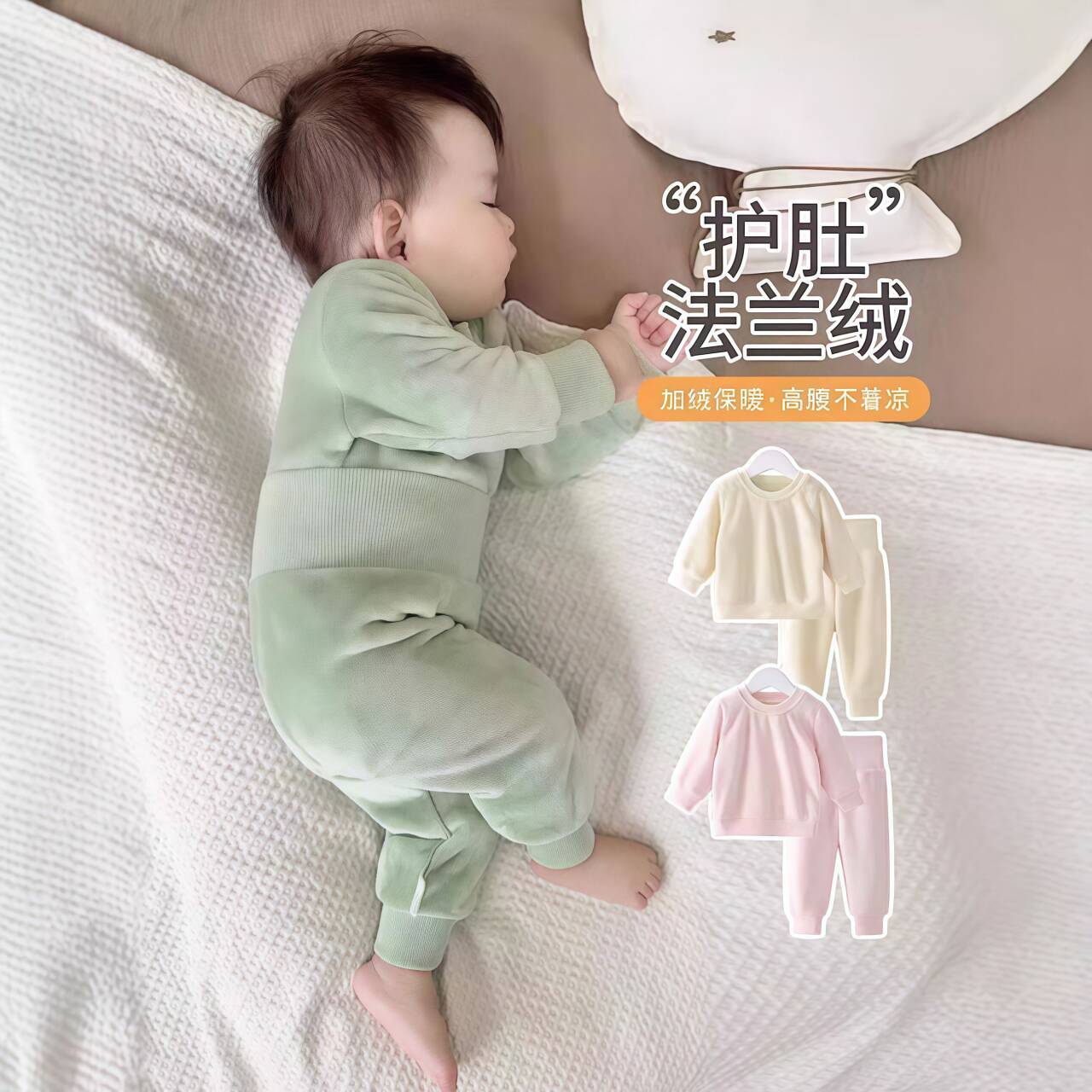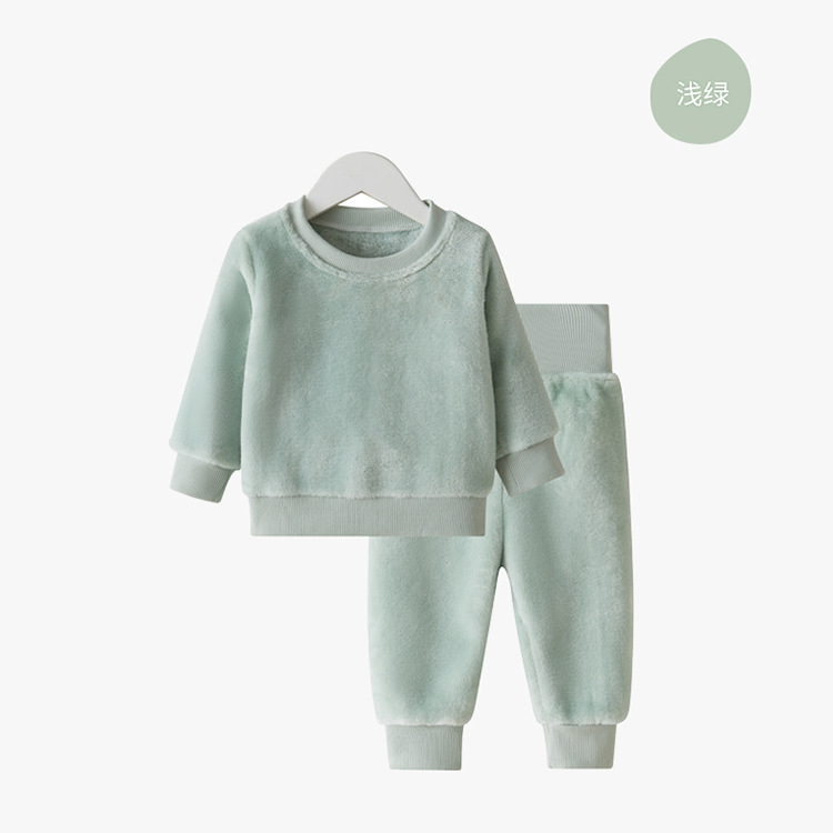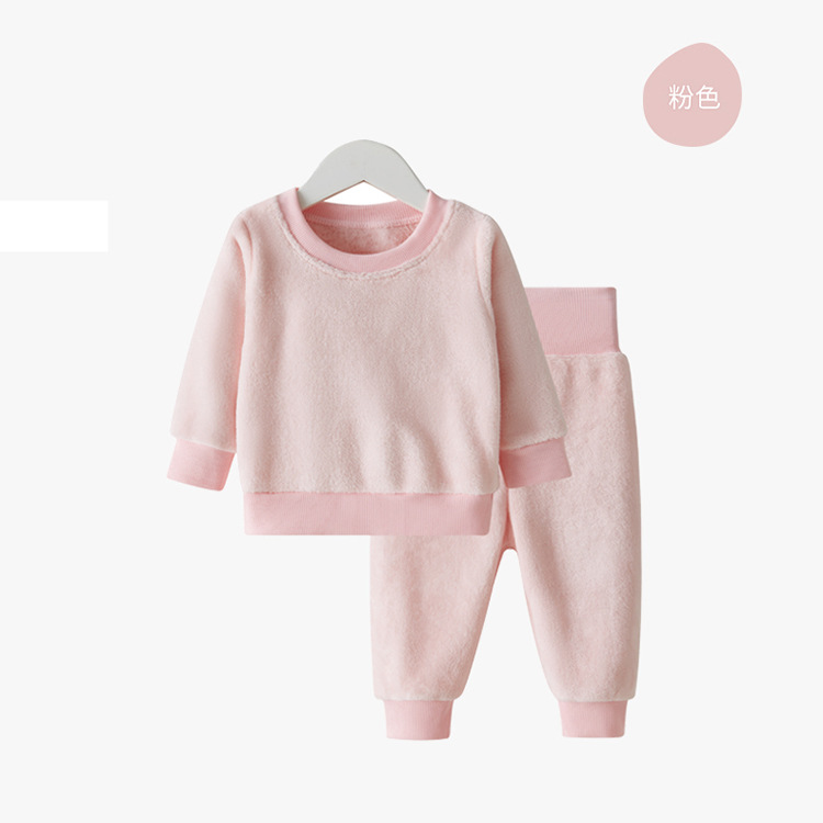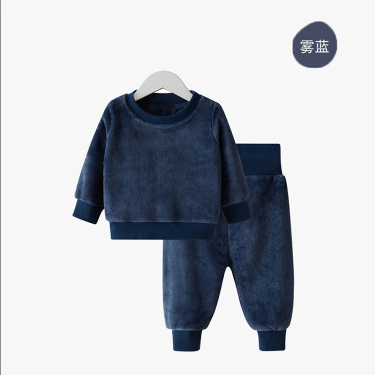 가을 겨울 여성 어린이 기모 따뜻한 겨울 아기 산호 양털 홈 의류 세트 보호 소년 플란넬 배꼽