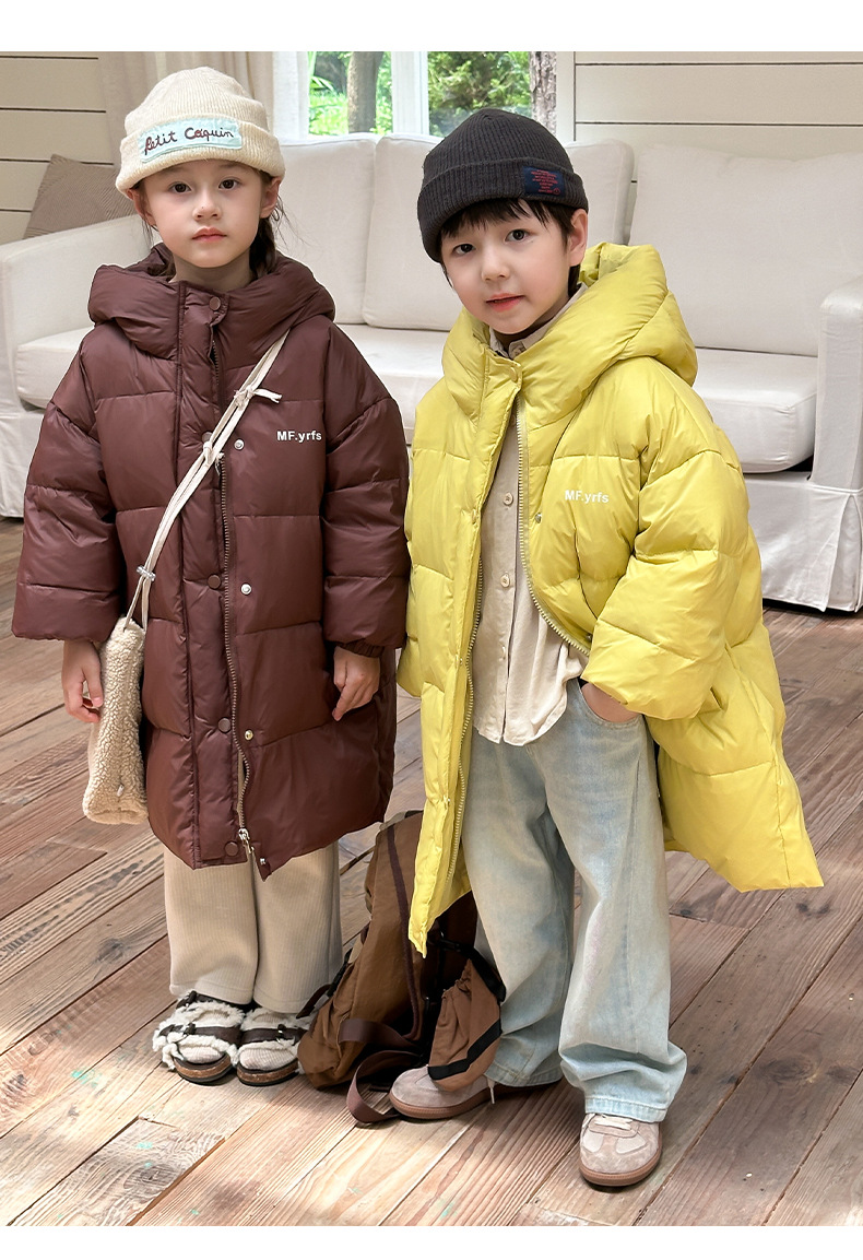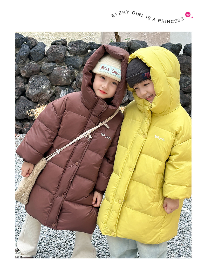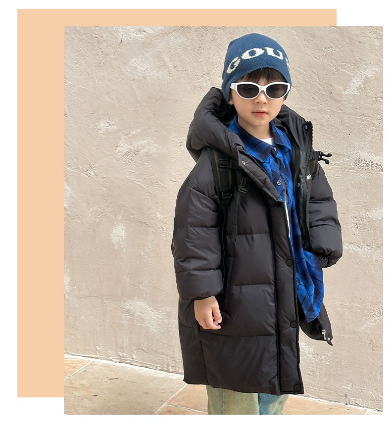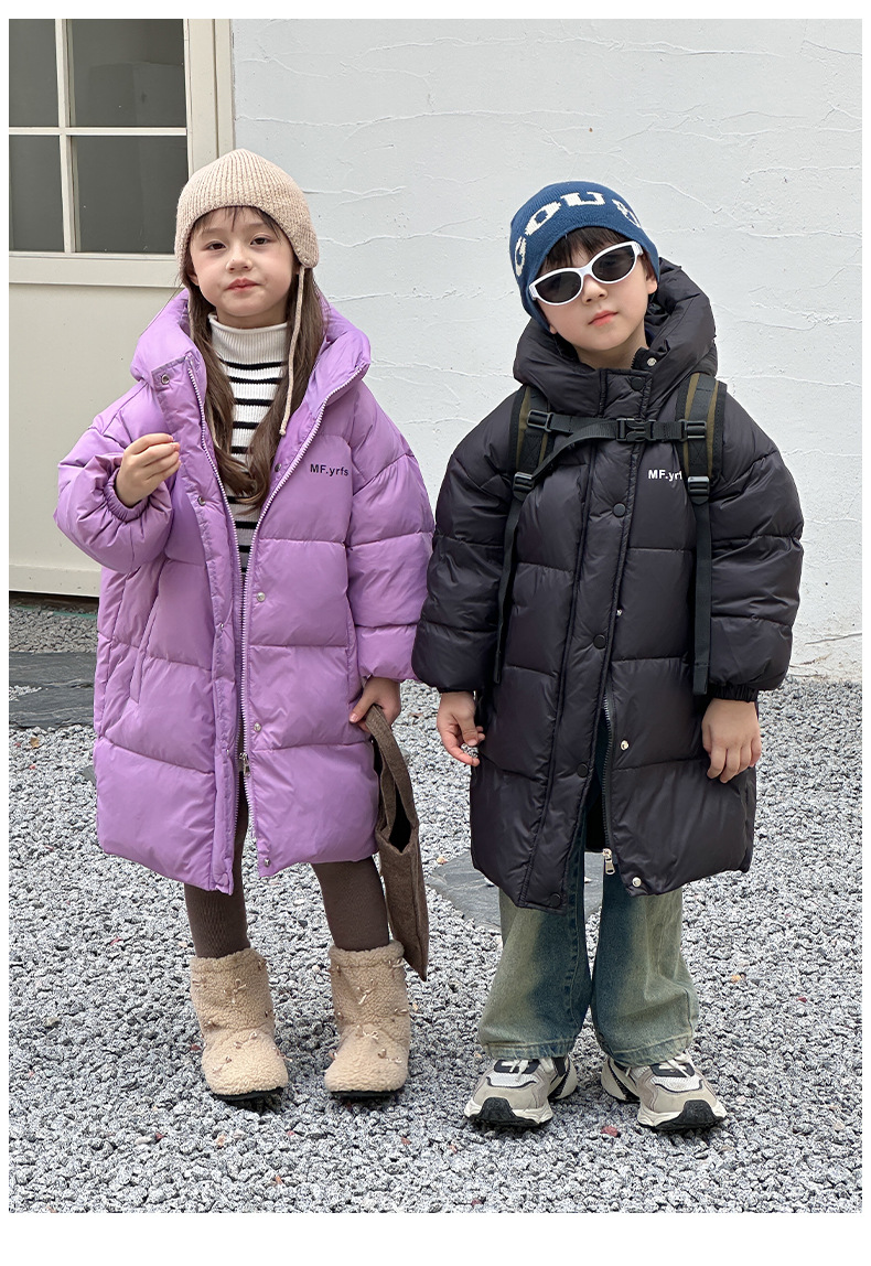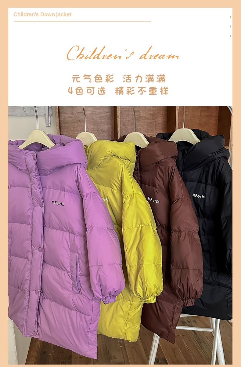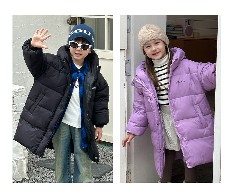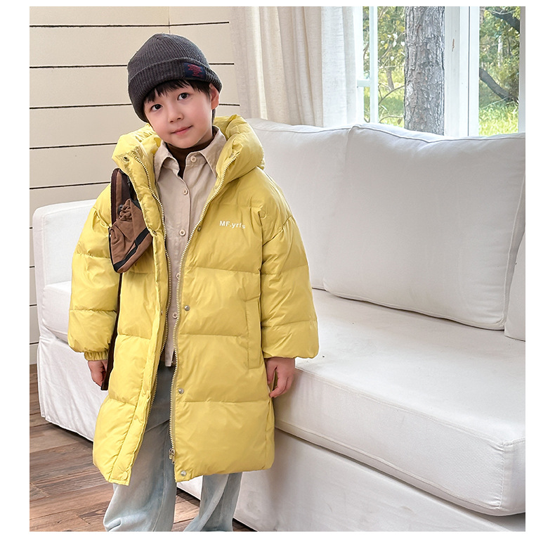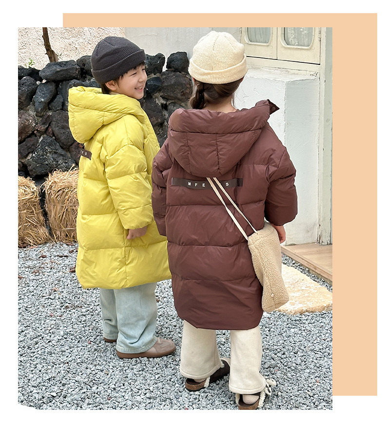 어린이 겨울 중간 길이 다운 재킷 소년 소녀 두꺼운 무릎 위 화이트 덕 다운 재킷 느슨한 한국 스타일스토어 가기