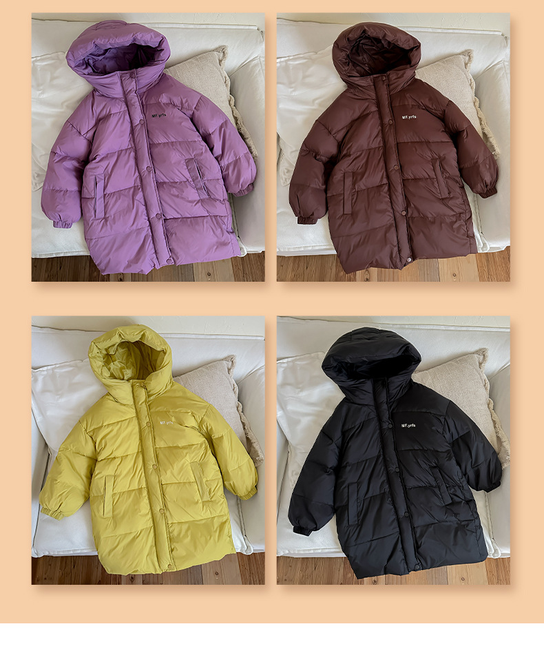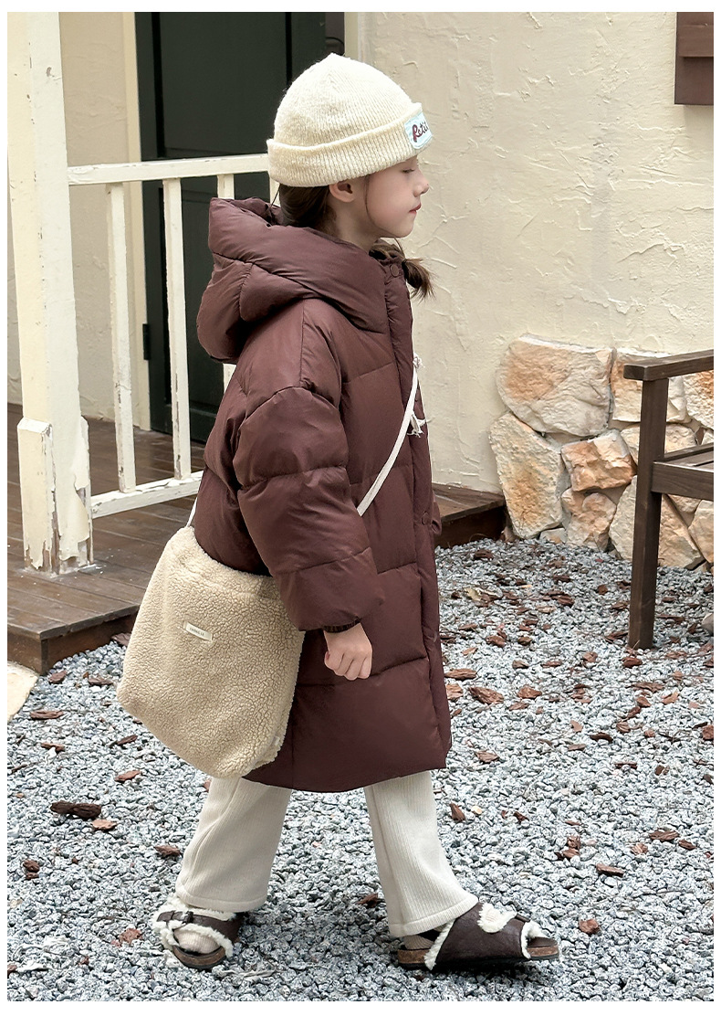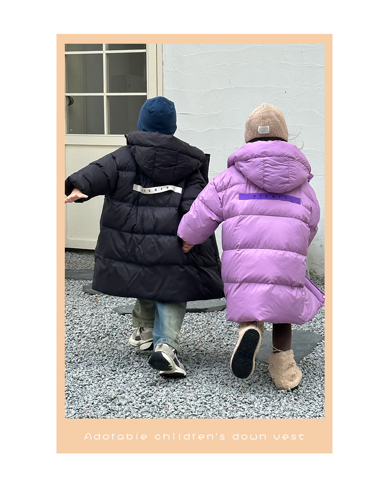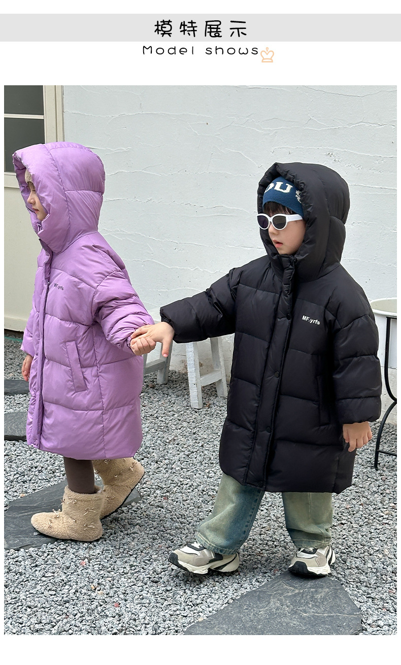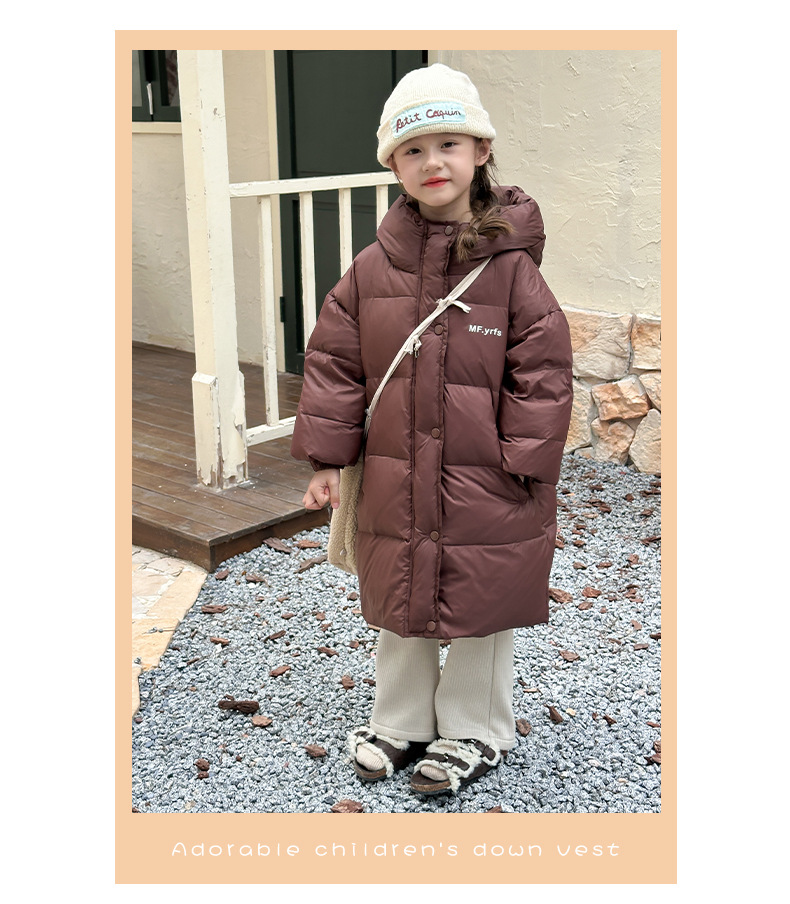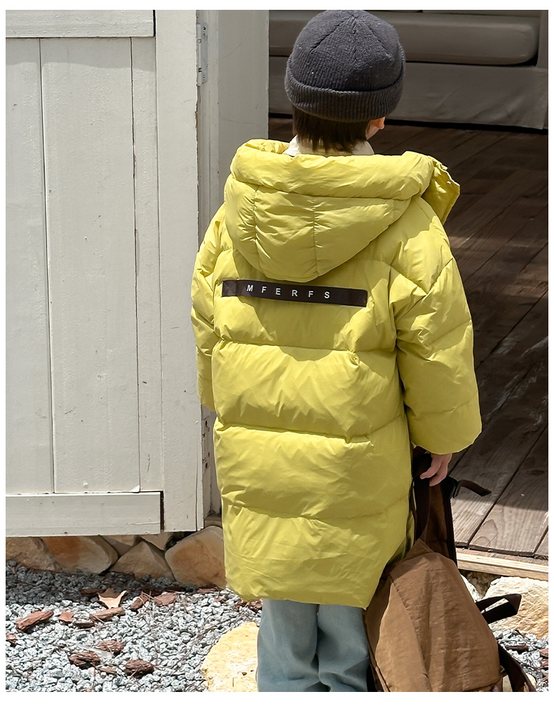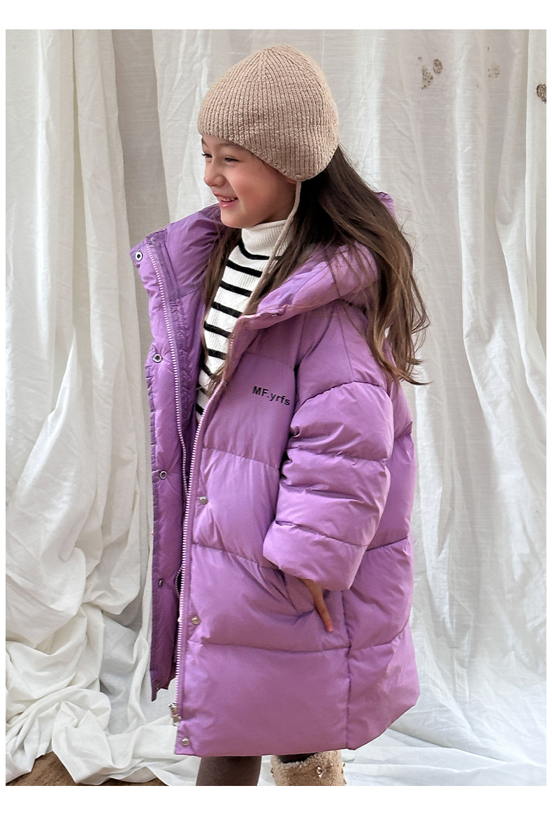 어린이 겨울 중간 길이 다운 재킷 소년 소녀 두꺼운 무릎 위 화이트 덕 다운 재킷 느슨한 한국 스타일스토어 가기