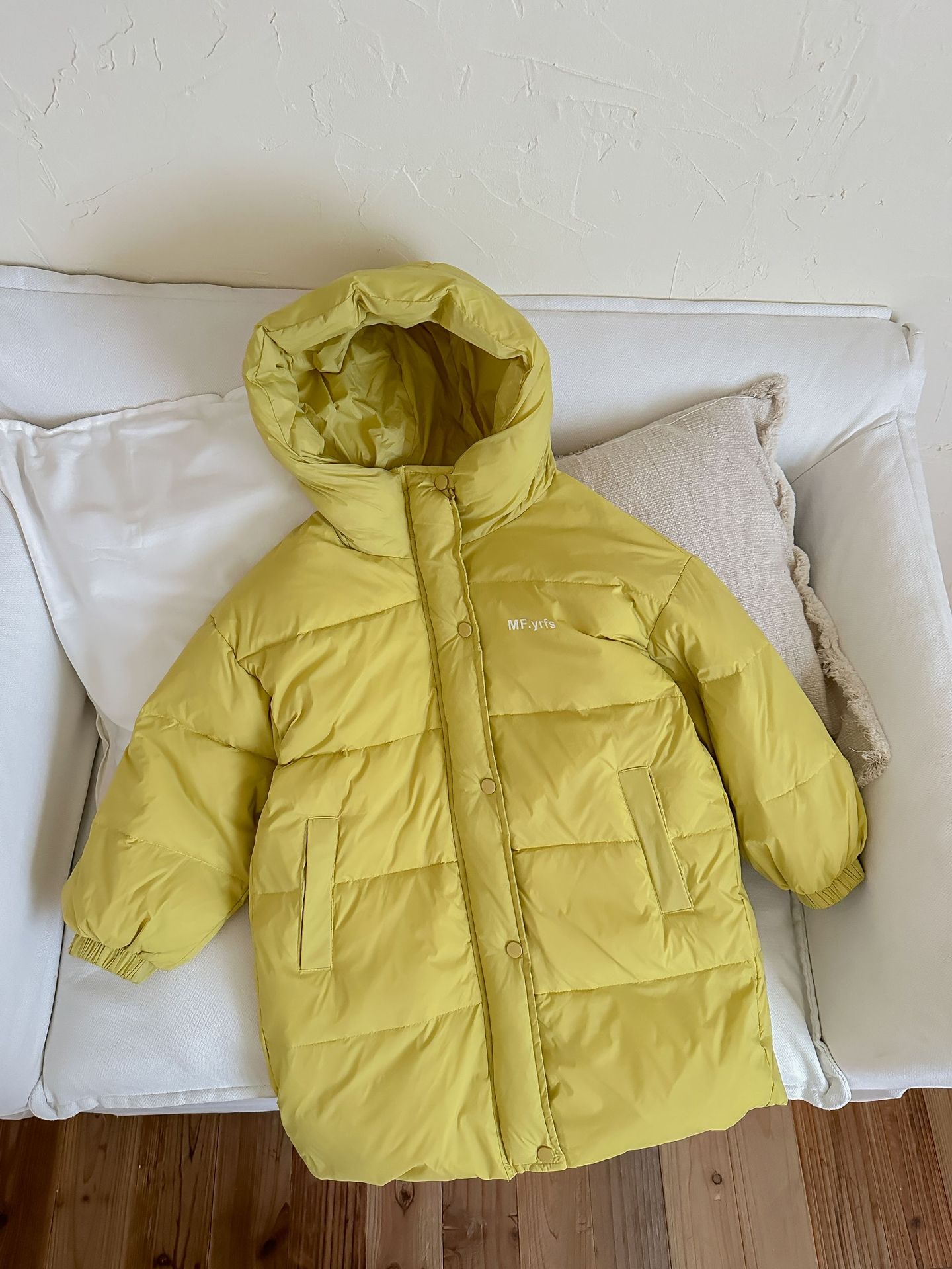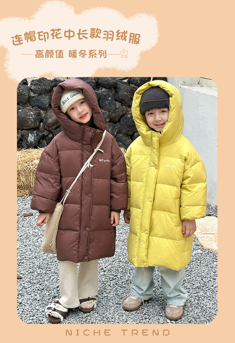 어린이 겨울 중간 길이 다운 재킷 소년 소녀 두꺼운 무릎 위 화이트 덕 다운 재킷 느슨한 한국 스타일