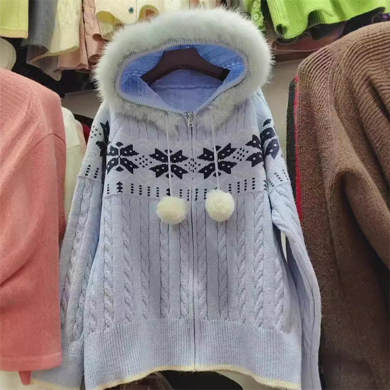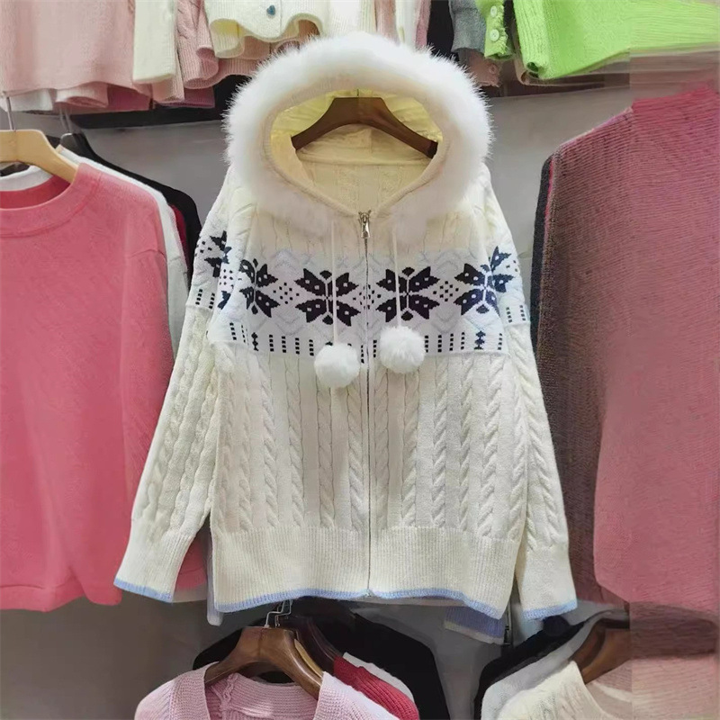프랑스 스타일 부드러운 스타일 후드 니트 코트 여성의 가을과 겨울 디자인 감각 느슨한 긴 소매 자카드 카디건 탑스토어 가기