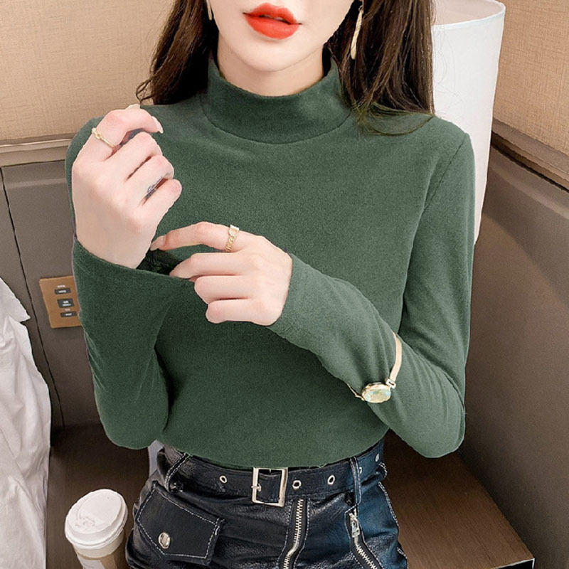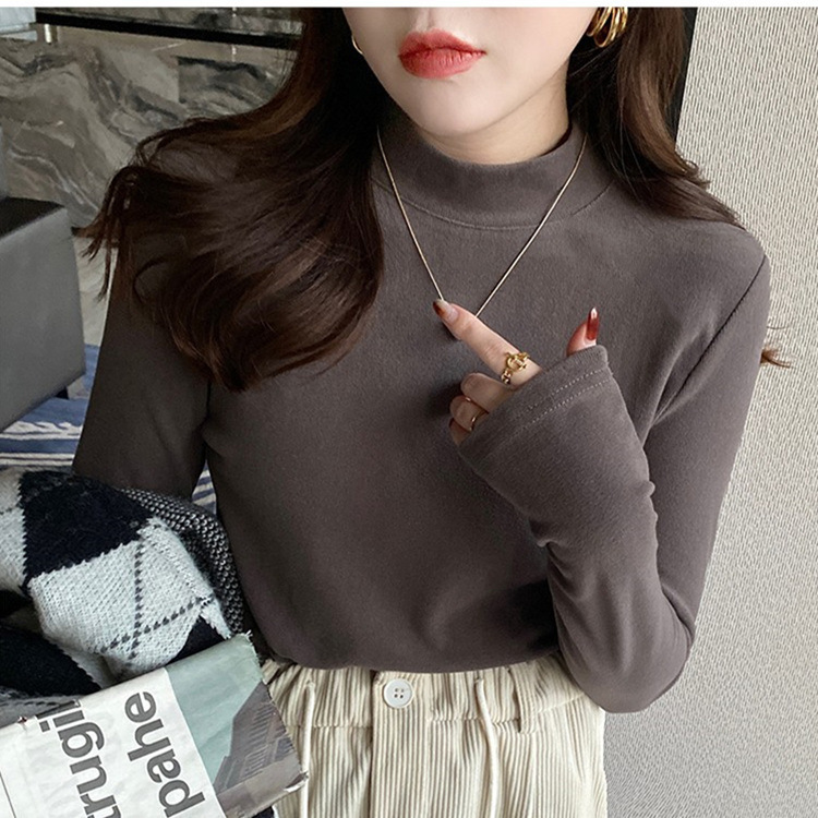 가을과 겨울 벨벳 블랙 내부 따뜻한 탑을위한 여성용 긴팔 기모 두꺼운 미드 하이 칼라 베이스 셔츠스토어 가기