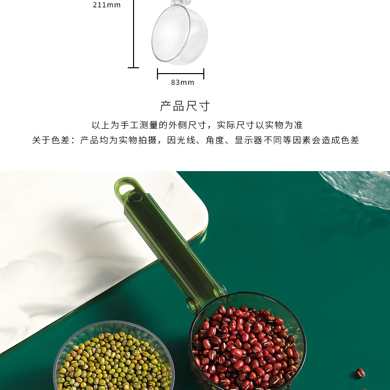 쌀 스푼 다기능 가정용 주방 곡물 숟가락 실링 클립 파기 숟가락 숟가락 숟가락 측정 숟가락